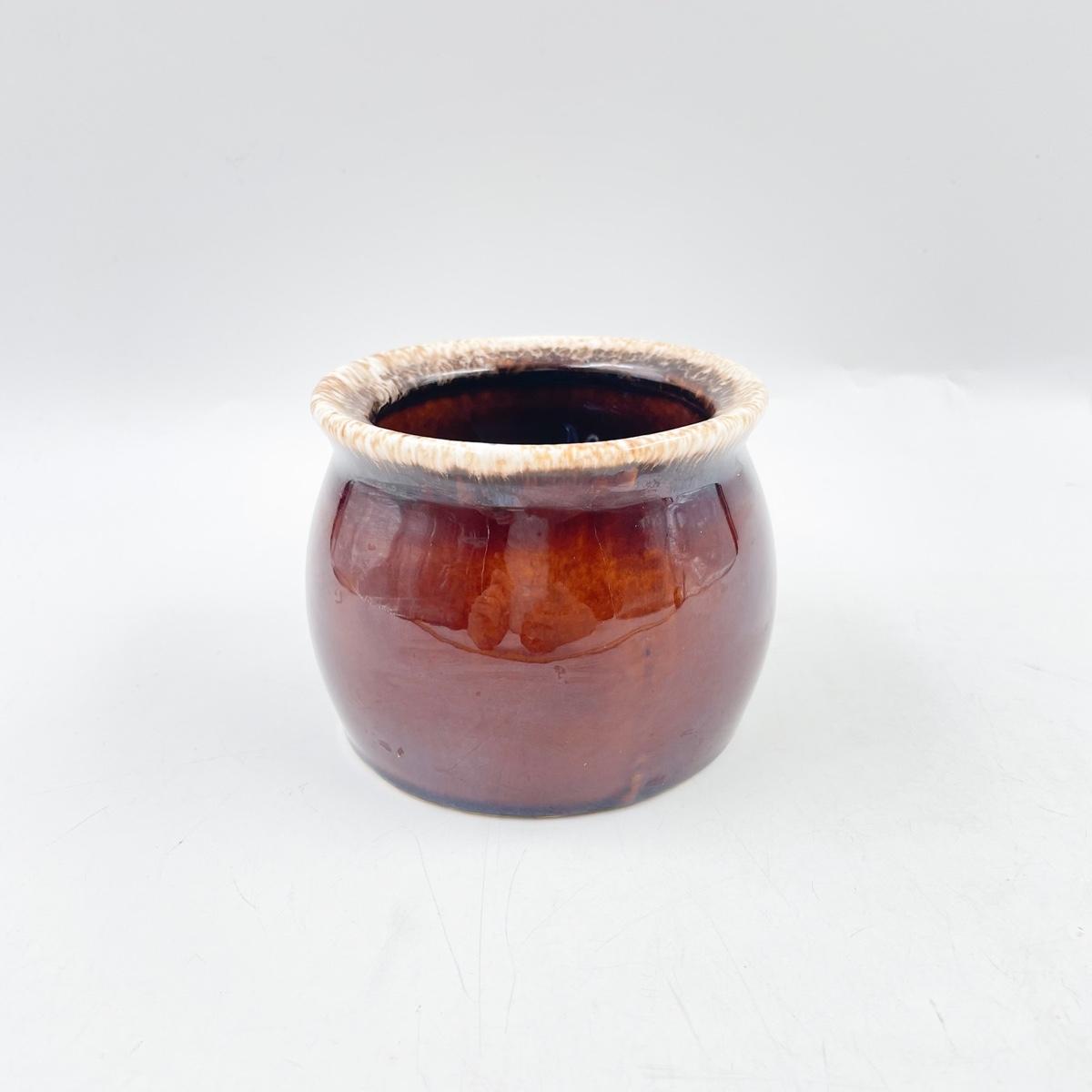 HULL POTTERY 3” BROWN DRIP POTTERY JAR