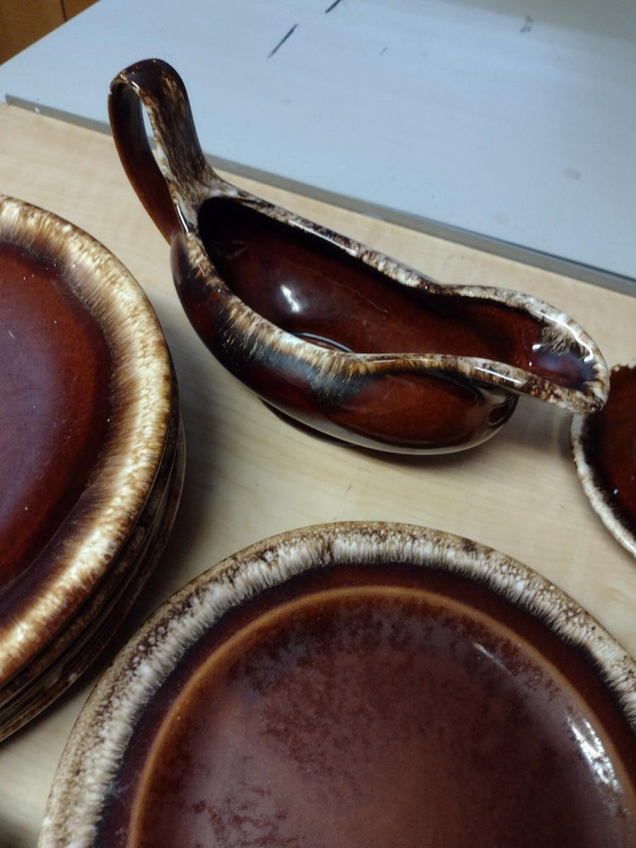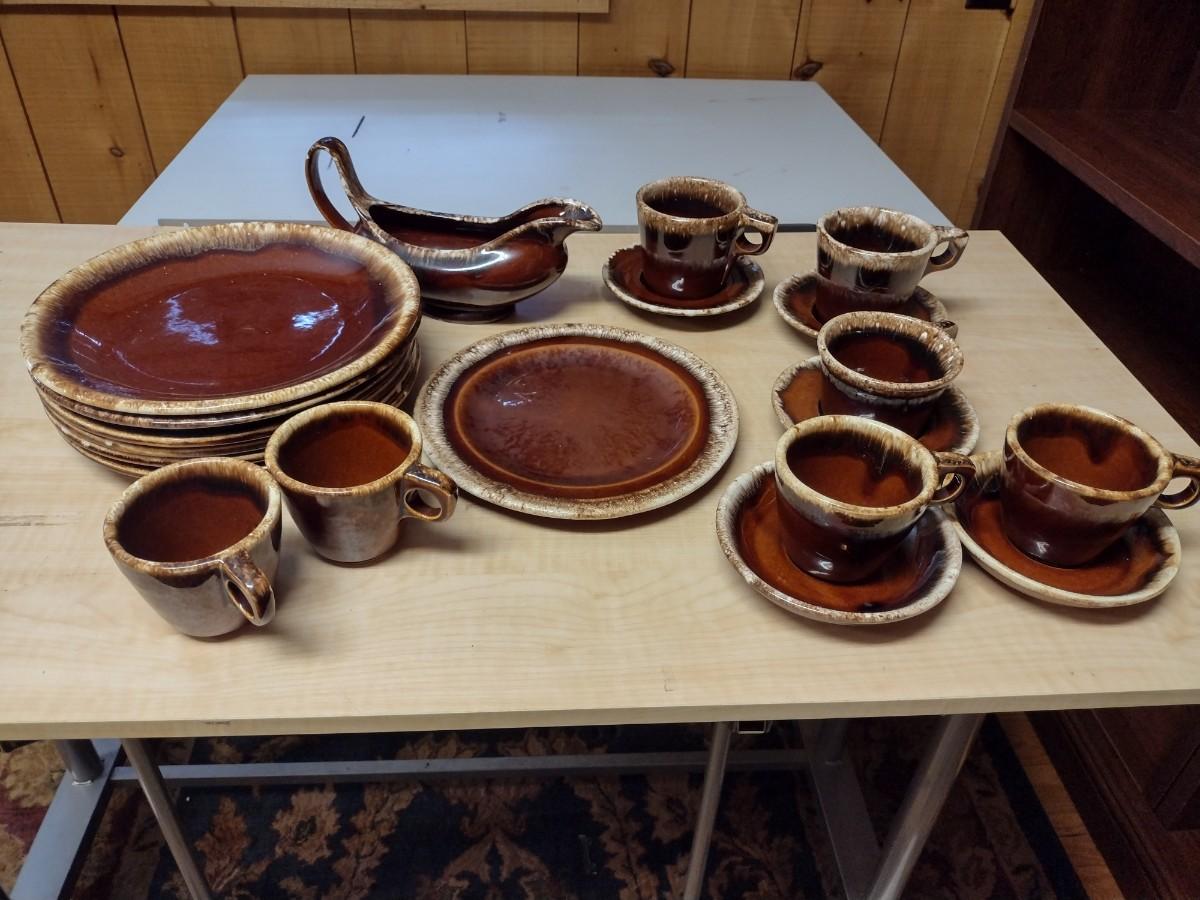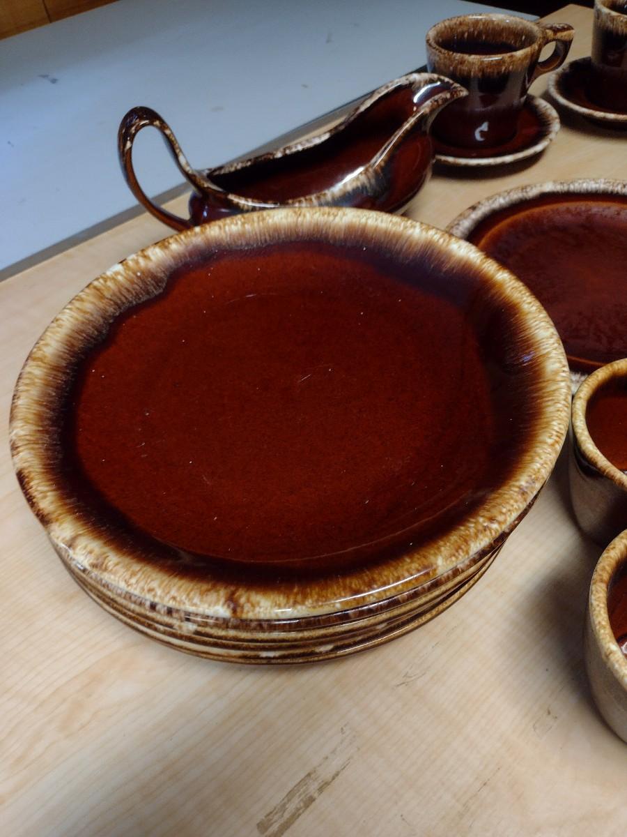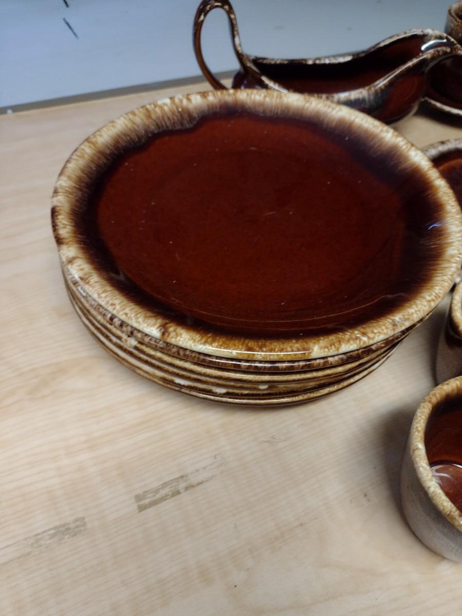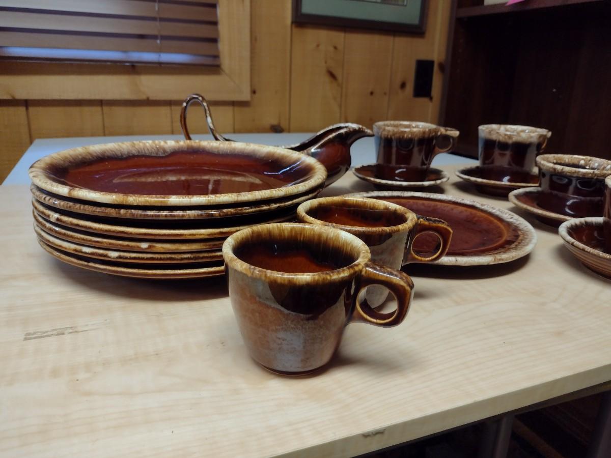 Hull USA Oven Proof Glazed Pottery Dinnerware. Approx 20 pieces. All and used condition- please expect occasional chip or crack. 10½" dinner plates - 6, PLEASE NOTE:. Due to no internet connection or wireless service, all invoices must be prepaid via PayPal, Stripe, or Zelle prior to arrival at pick up. Exact change cash onsite is acceptable but absolutely no debit or credit cards at time of pick up.