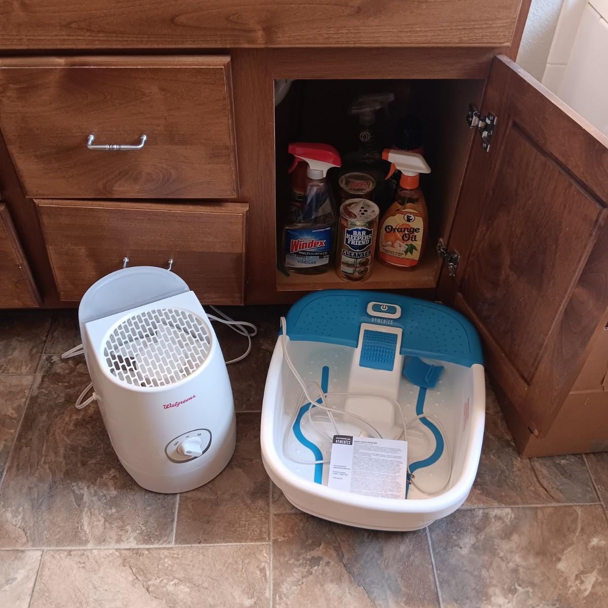 HUMIDIFIER, HOMEDIC FOOT SOAKER AND SOME CLEANING CHEMICALS