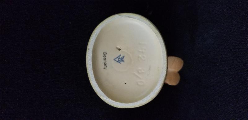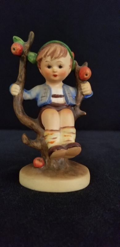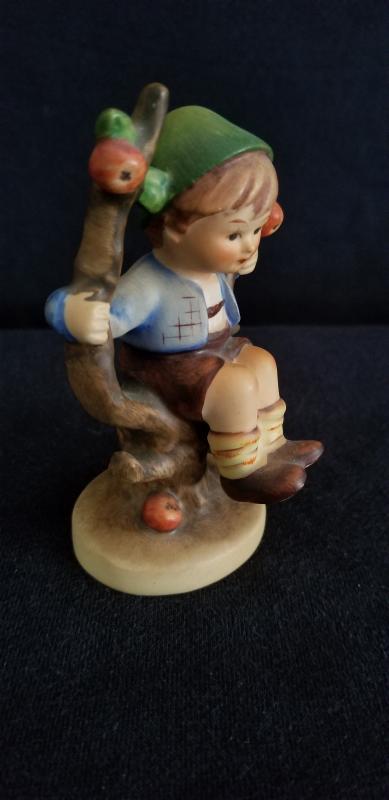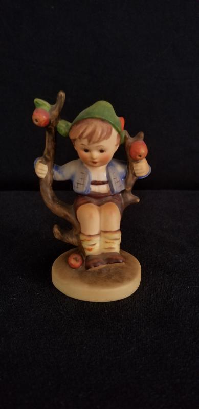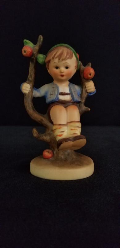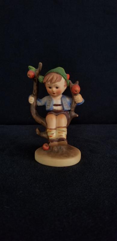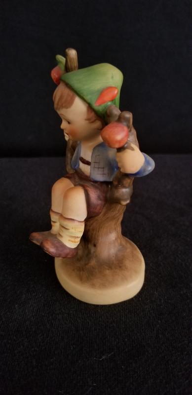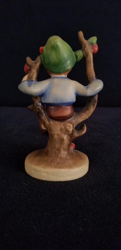 This Hummel stands 4" tall and weighs 2.6 oz. On the bottom it is incised with a number and stamped in blue with a V and bumblebee and the word Germany. Marking identifies this piece as produced between 1940-1959.