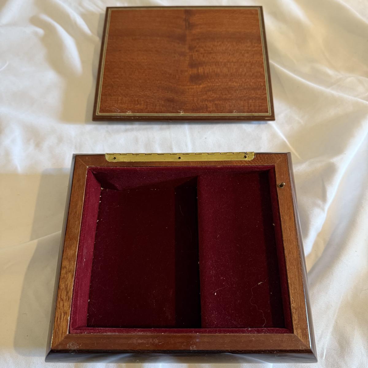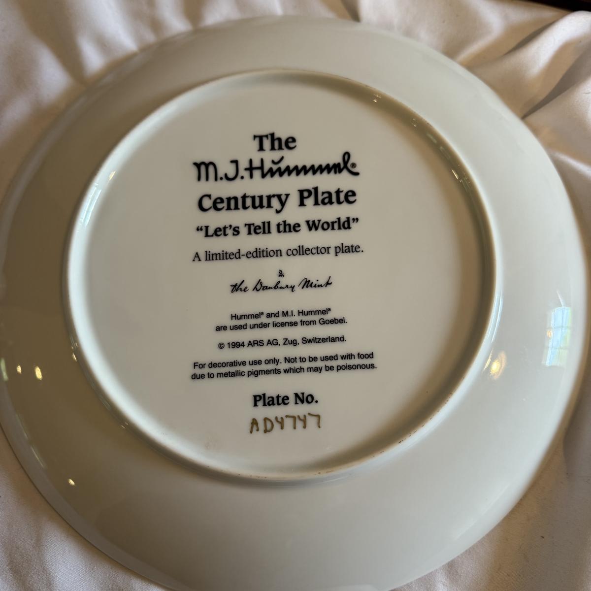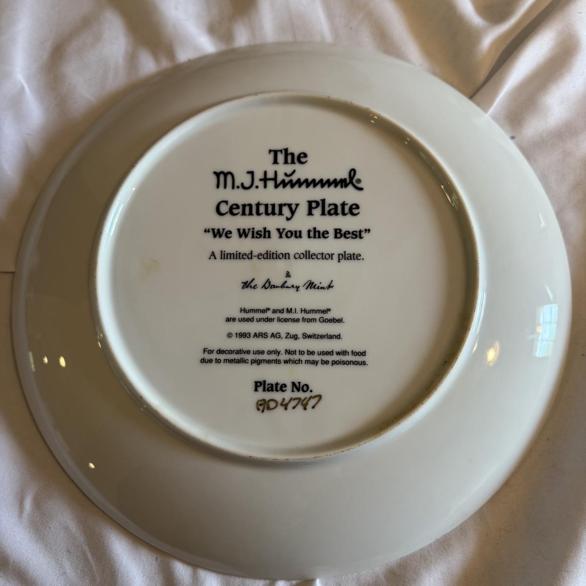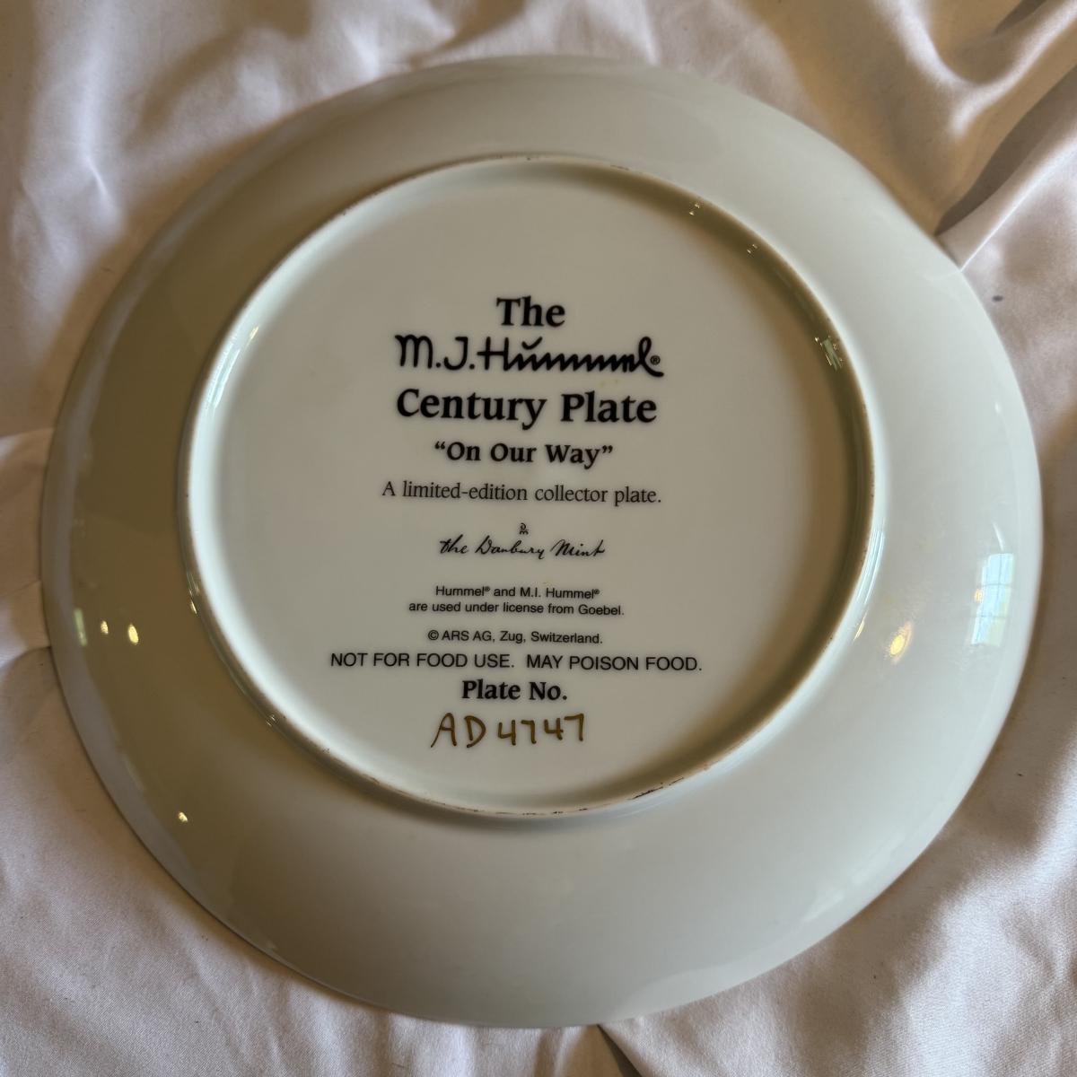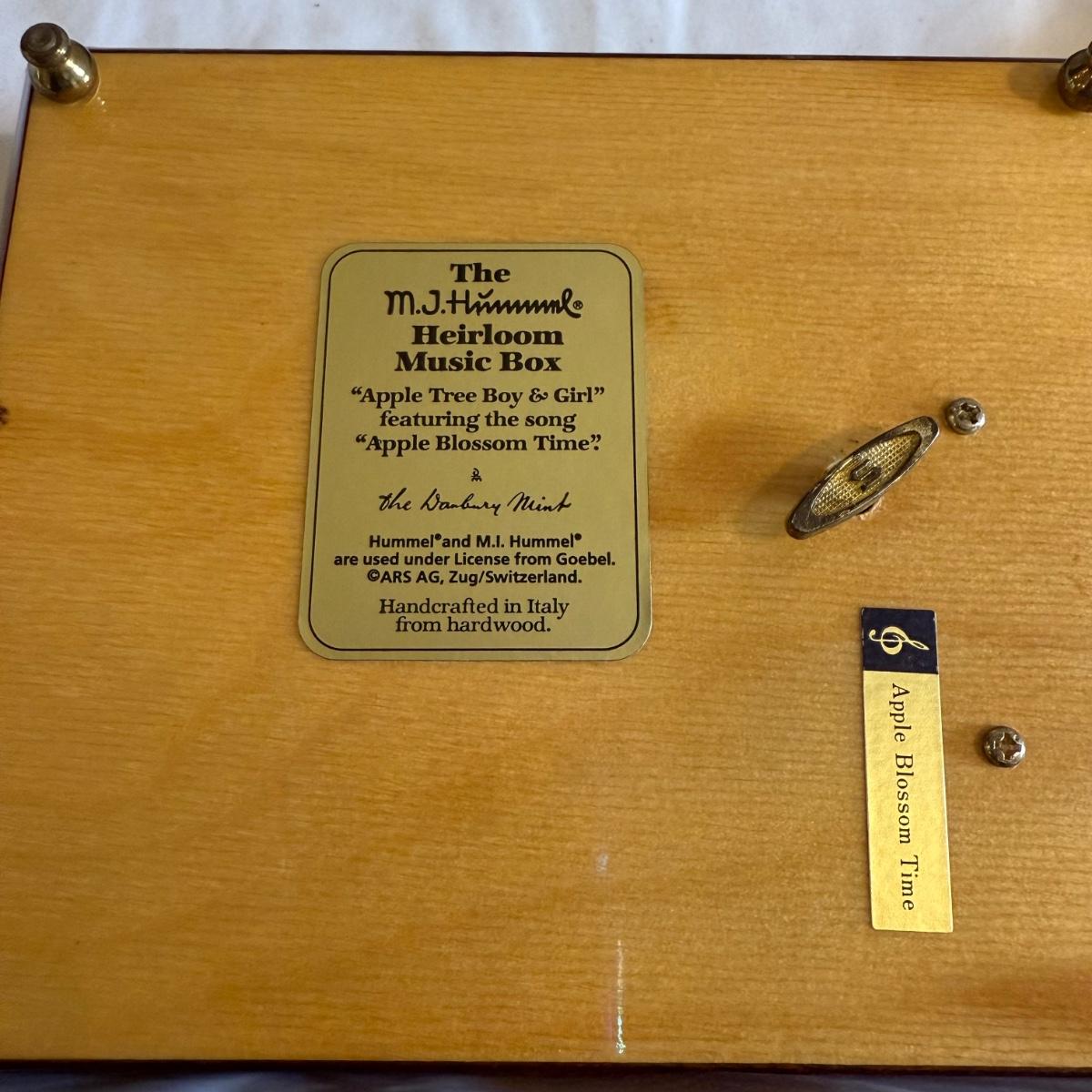 This lot contains seven Hummel collectibles. There are three plates including one with its own stand. Two spice containers, one for ginger and one for cinnamon. Also included is a tea cup with saucer and a jewelry box. Starting with the plates they all have a 10.5”D. Each plate has a name and included in this collection is “We Wish You the Best”, “On Our Way”, and “Let’s Tell the World” which comes with its own wooden stand which measures 8” x 4”. Next we have the spice containers, both of which have tops with a rubber stopper to hold them in place. Each one measures approximately 2.5” x 4.5”H. Next is a tea cup and saucer called “Little Fiddler”. The saucer has a 4.75”D and the cup has a 2.5”D mouth and stands 2.5”H. Last is the wood jewelry box, the lid's hinges have broken off and so it is detached and the music doesn’t work. The image is called “Apple Tree Boy & Girl” and it measures 7” x 6” x 2.75”H. Shipping available.
