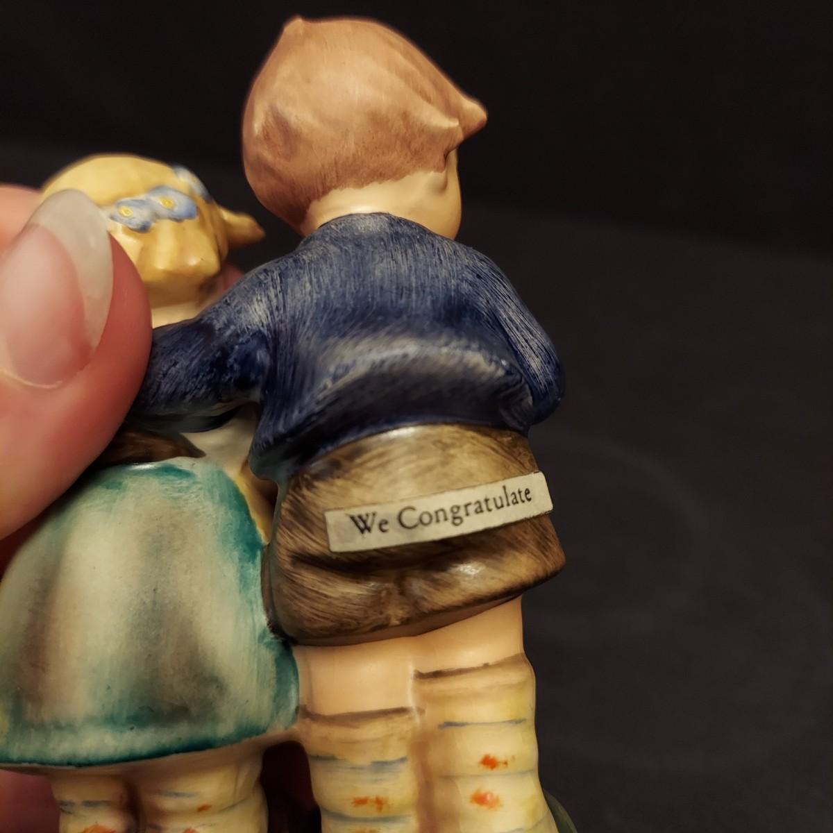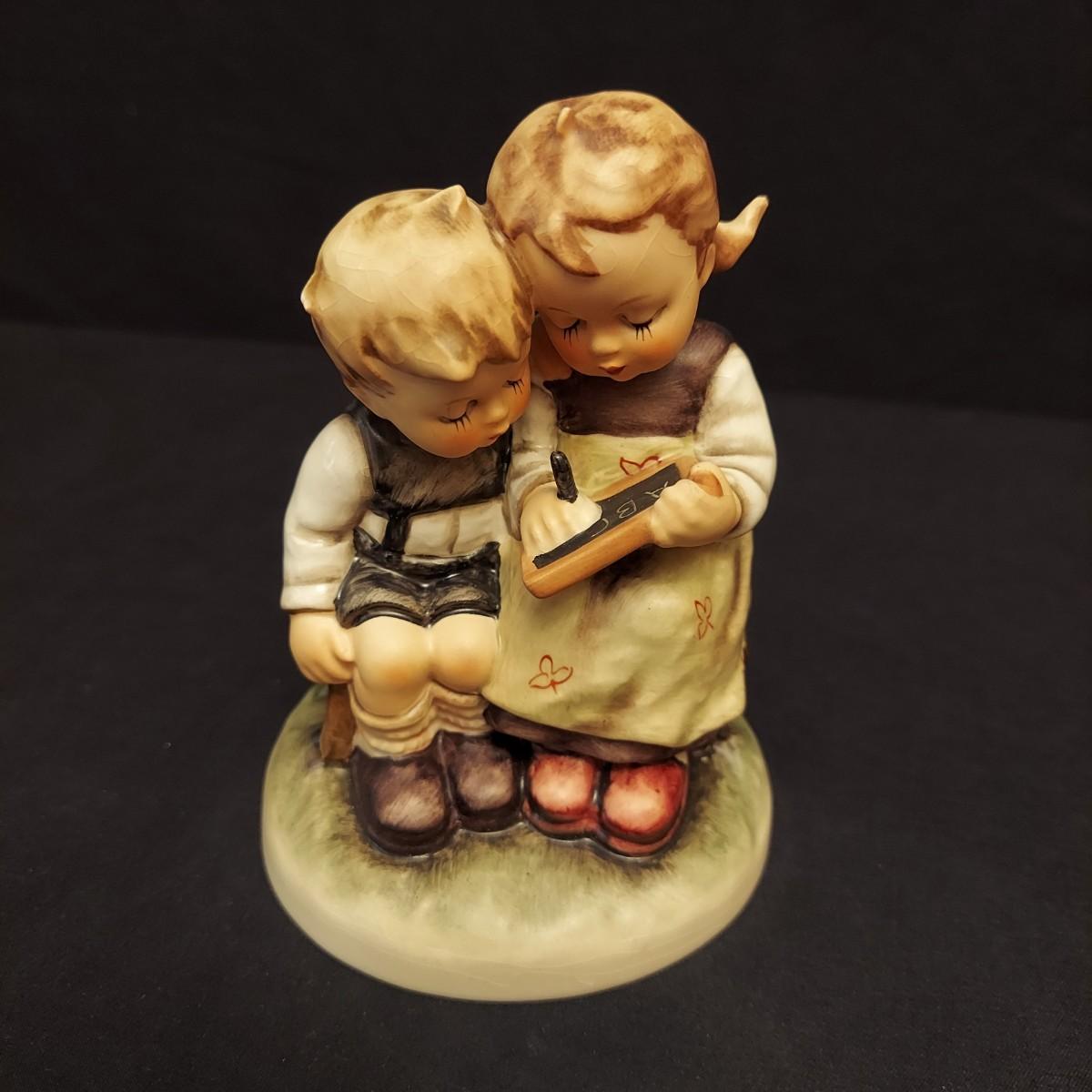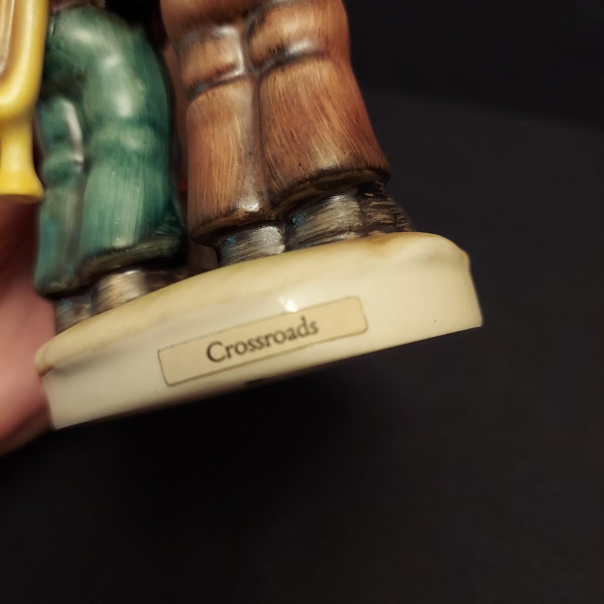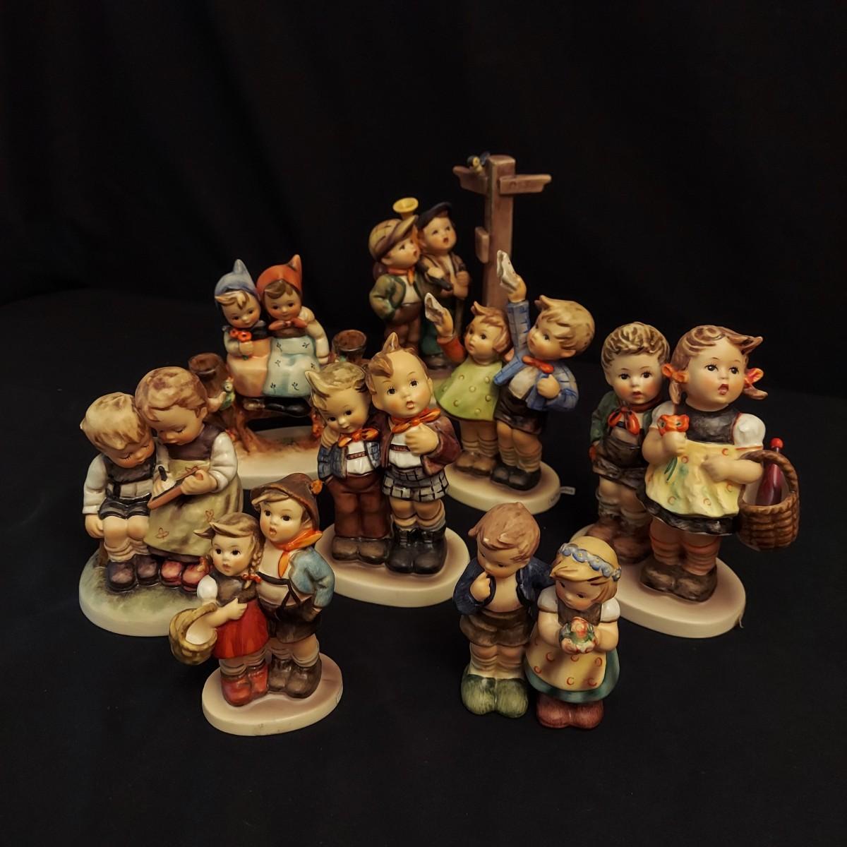 Lot includes eight Hummel figurines including Crossroads, To Market, Smart Little Sister and more. Crossroads is the largest piece at 4.5” x 3” x 6.5"H. Some pieces are stamped with the date the form was originally released. See trademark image for a more accurate approximation of age. Please see photos for further details. Shipping available