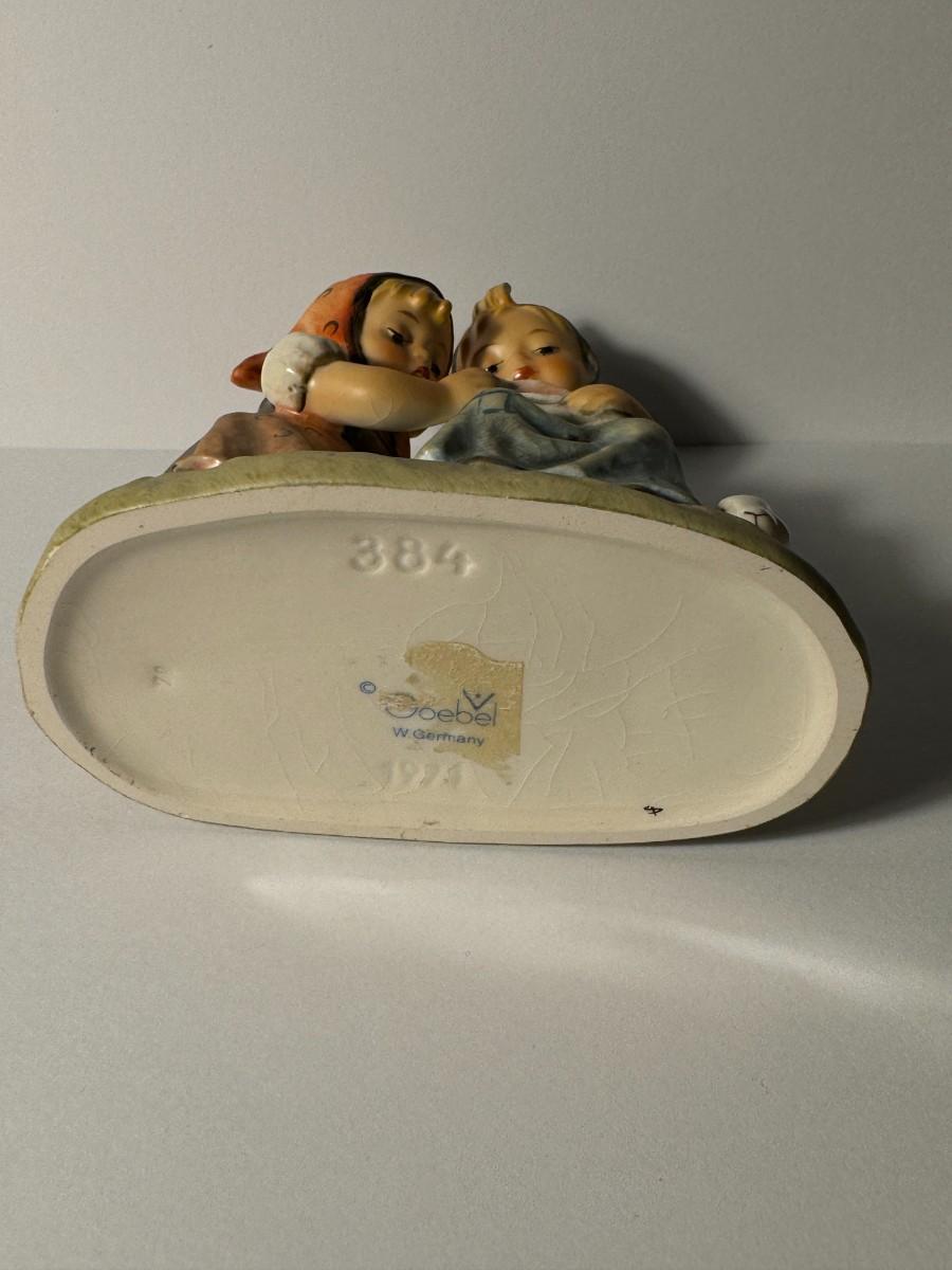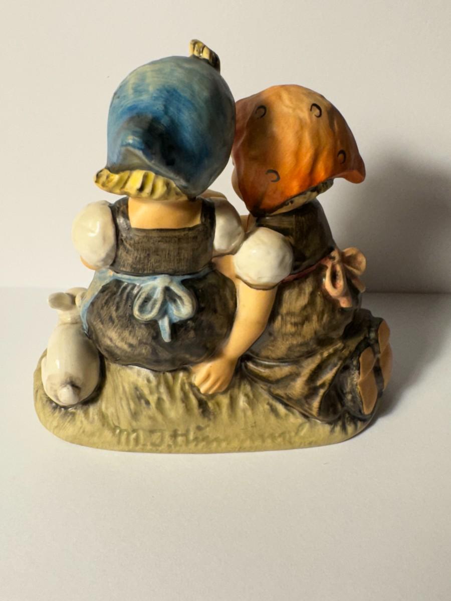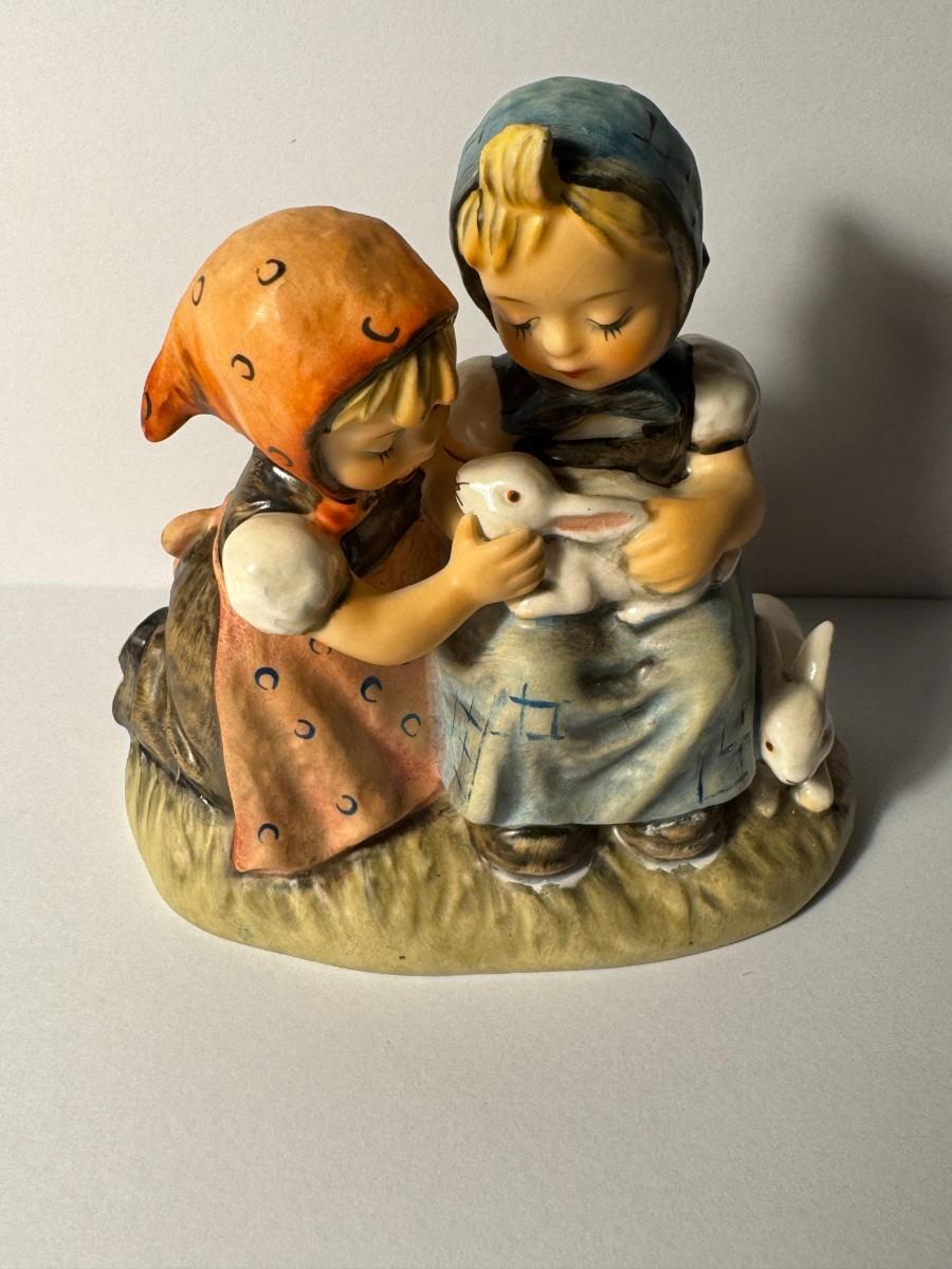Hummel figurine titled "Easter Time". It features two girls with two bunnies. The figurine is also known by the model number #384