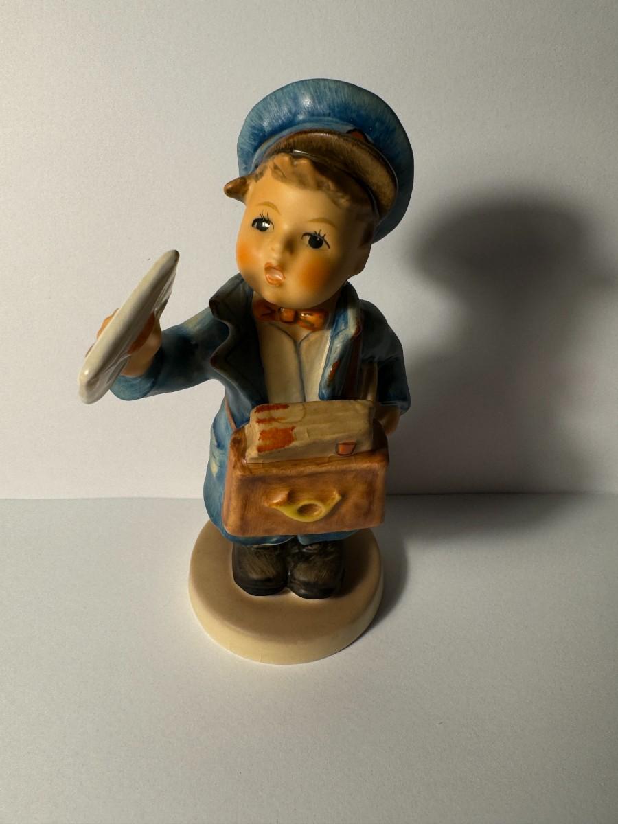 Hummel figurine of a boy dressed as a postman or mailman. This particular figurine is known as the "Postman" or "Mail Carrier" and is identified by the model number #119.
