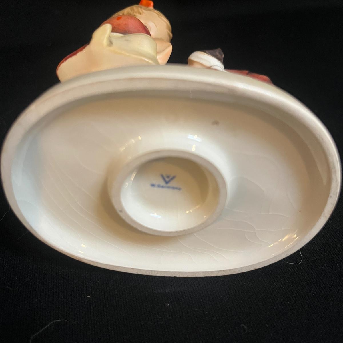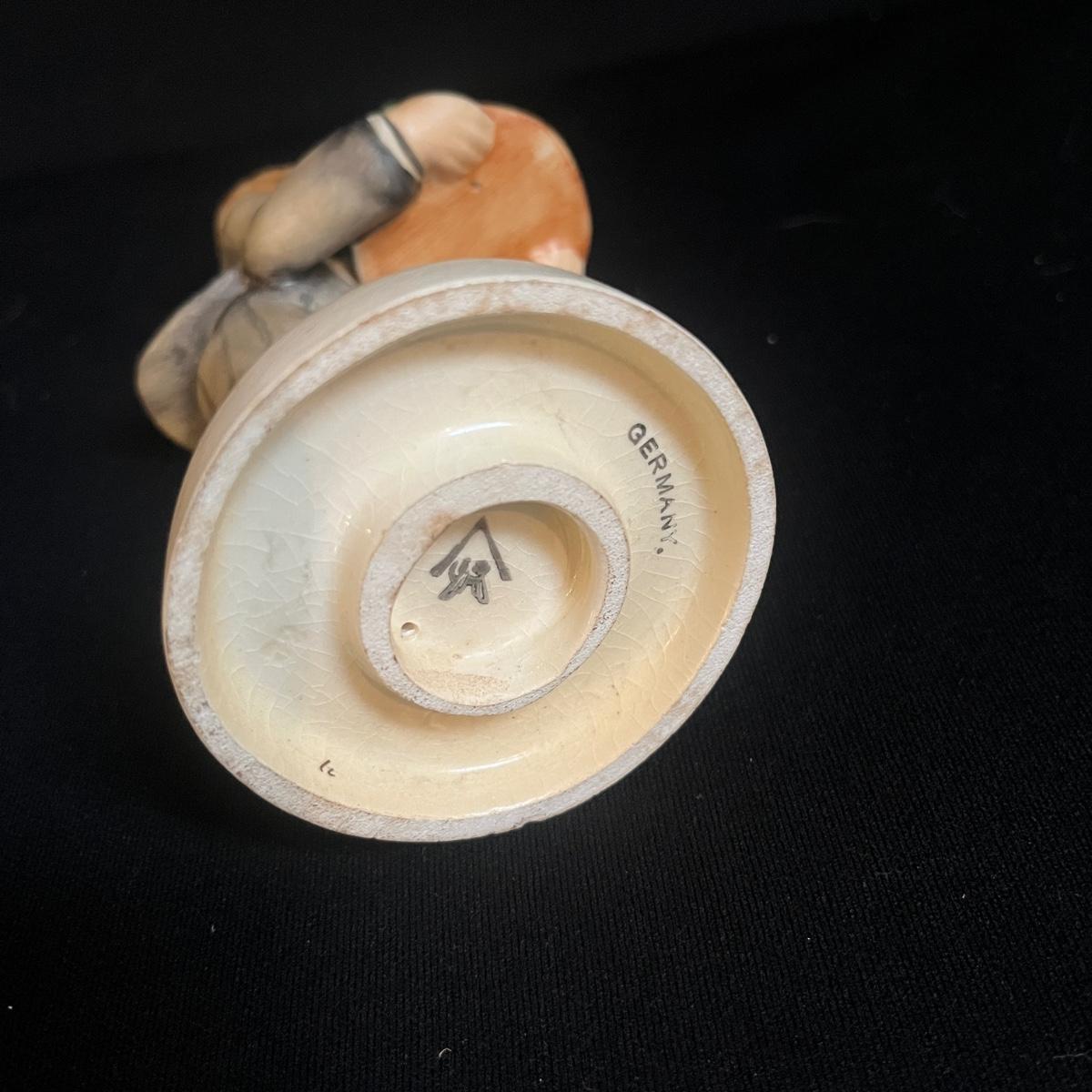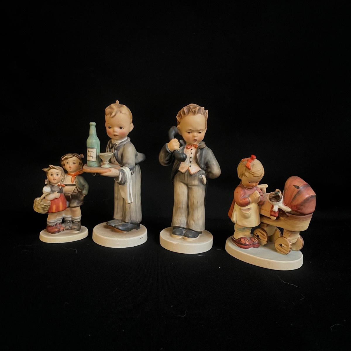 Lot includes four Hummel figurines. Two are signed on base and all have the Hummel markings on bottom. Tallest piece measures 3” x 2.5” x 7”H.
