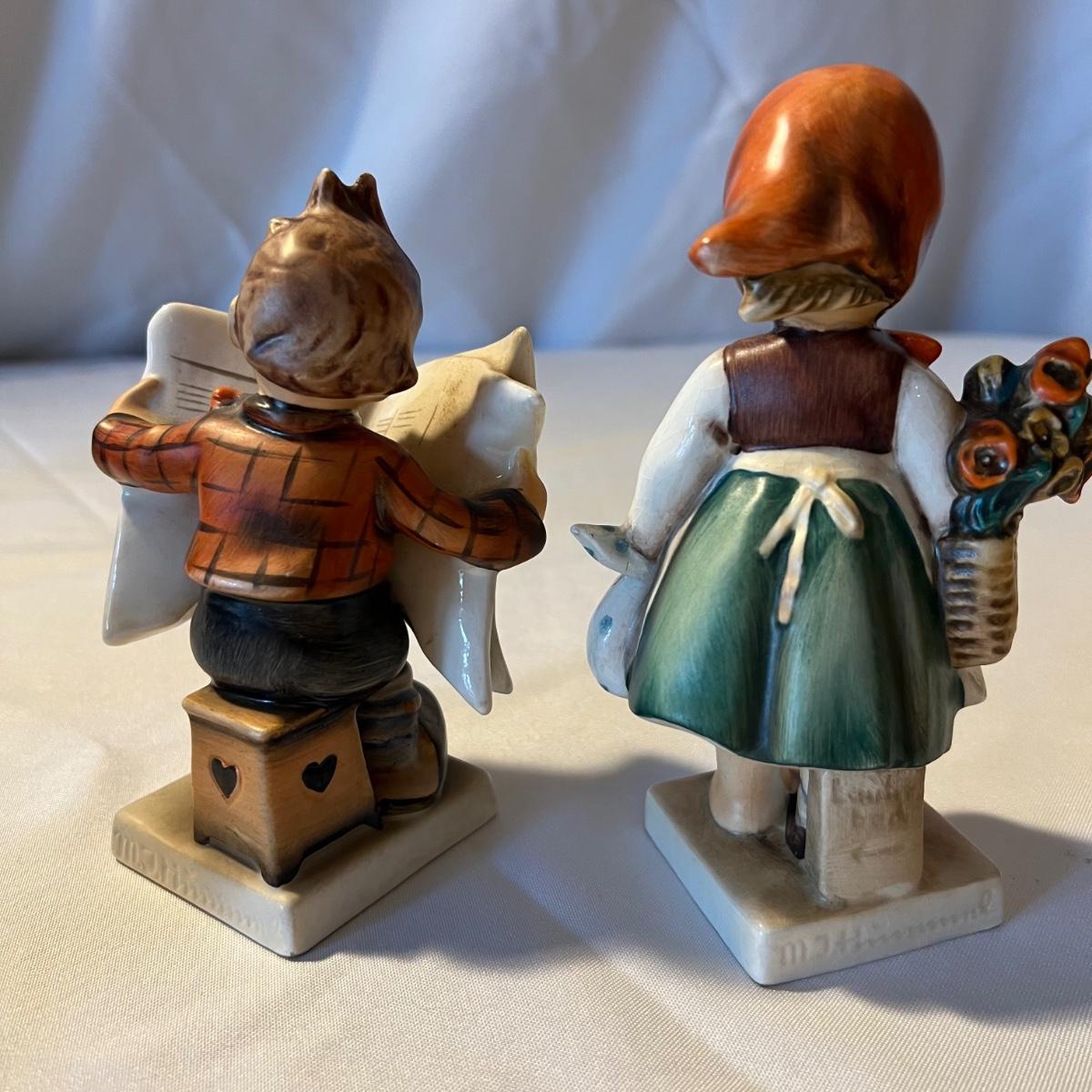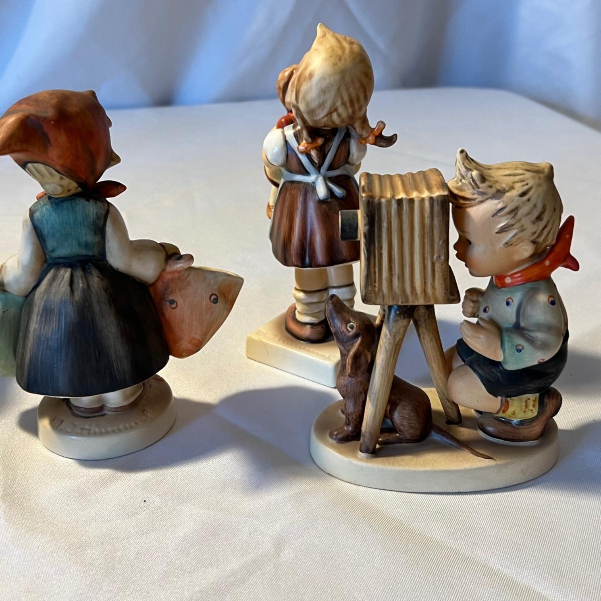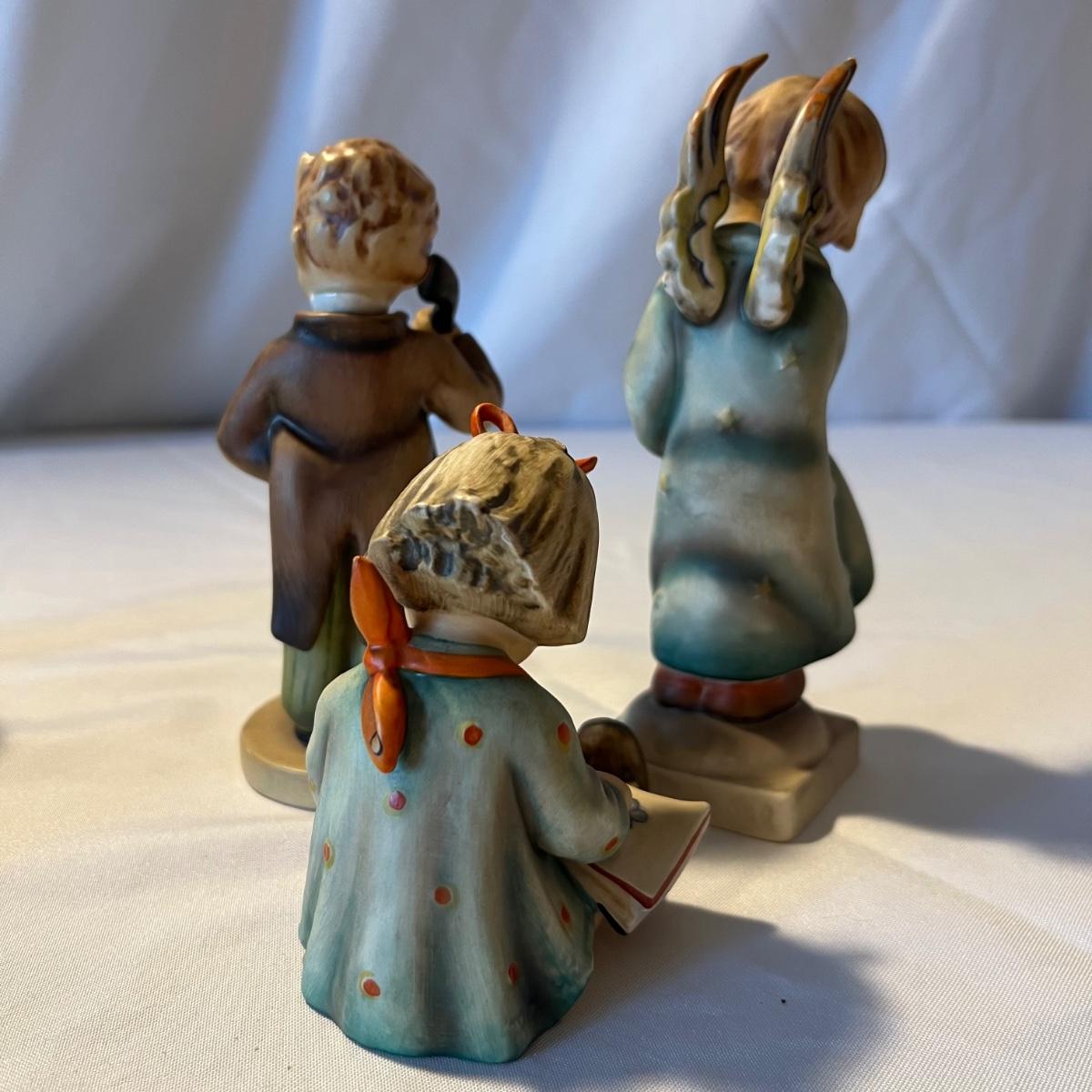 Ten Hummel ceramic/porcelain figurines. See photos for more information. Tallest one measures 2.5” square (base) x 8”H.