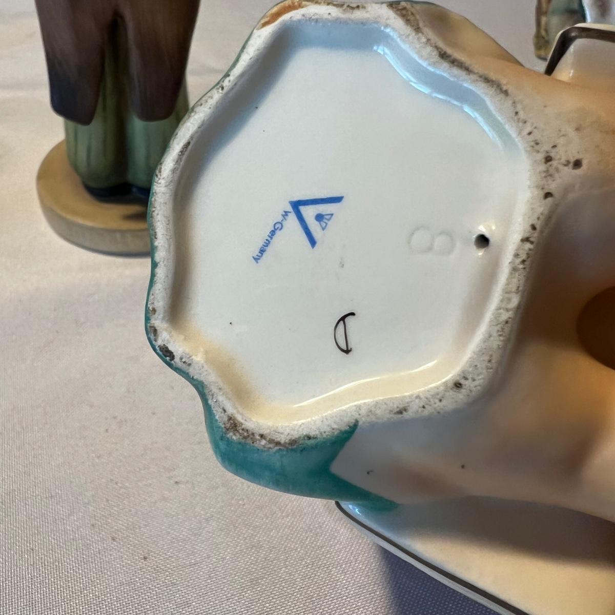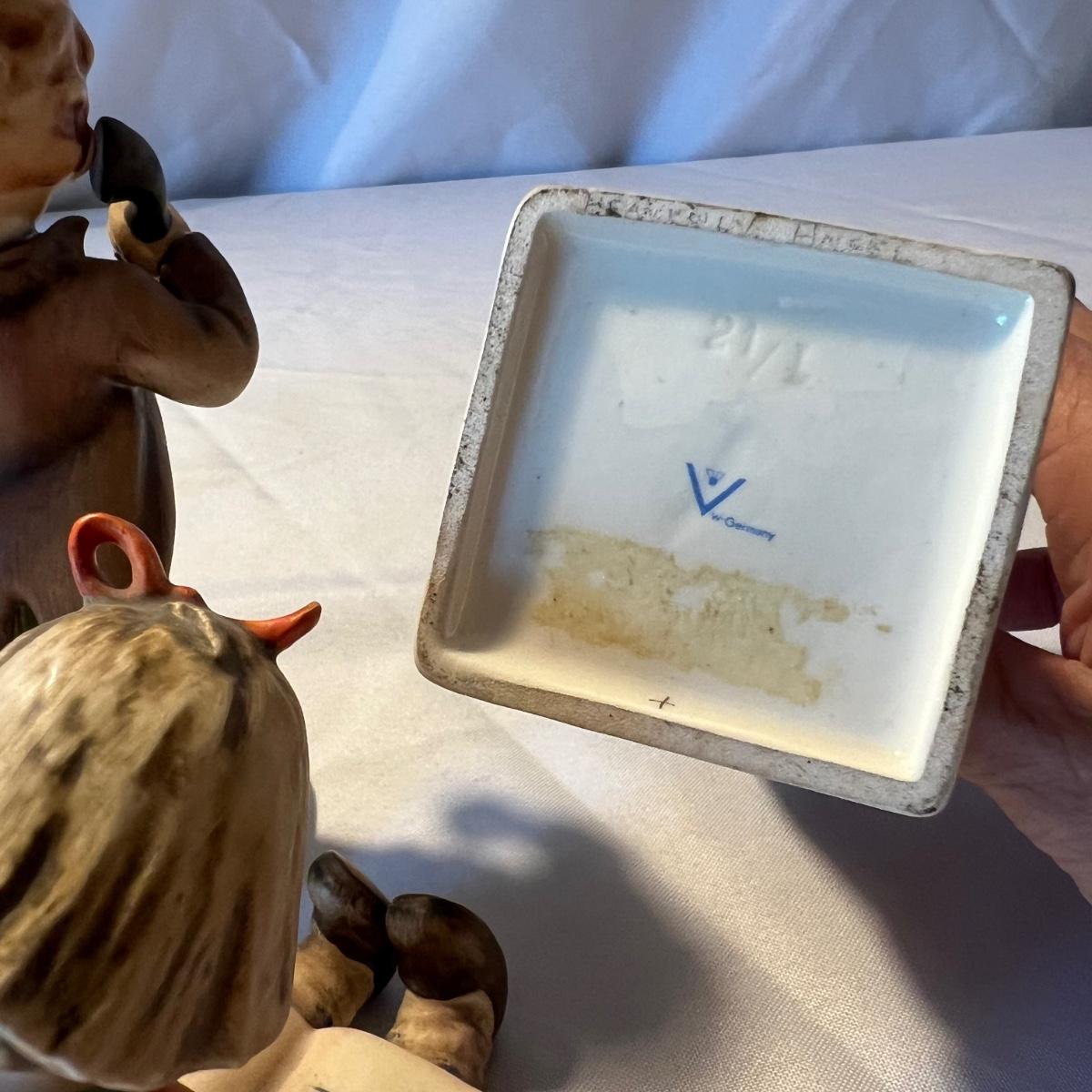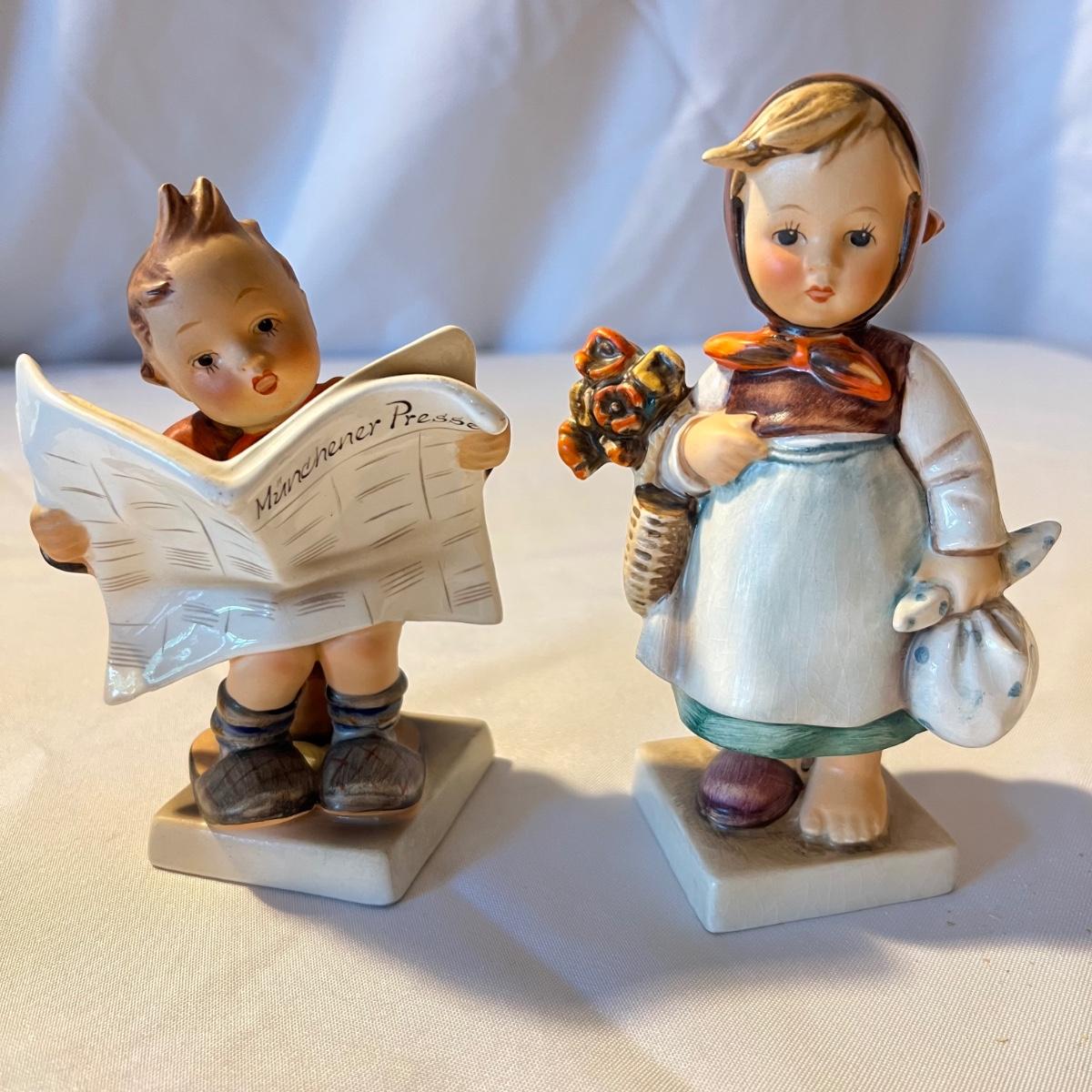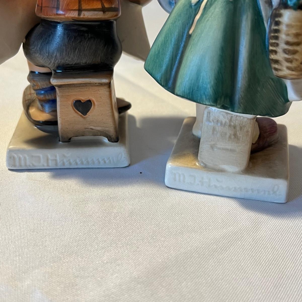 Ten Hummel ceramic/porcelain figurines. See photos for more information. Tallest one measures 2.5” square (base) x 8”H.