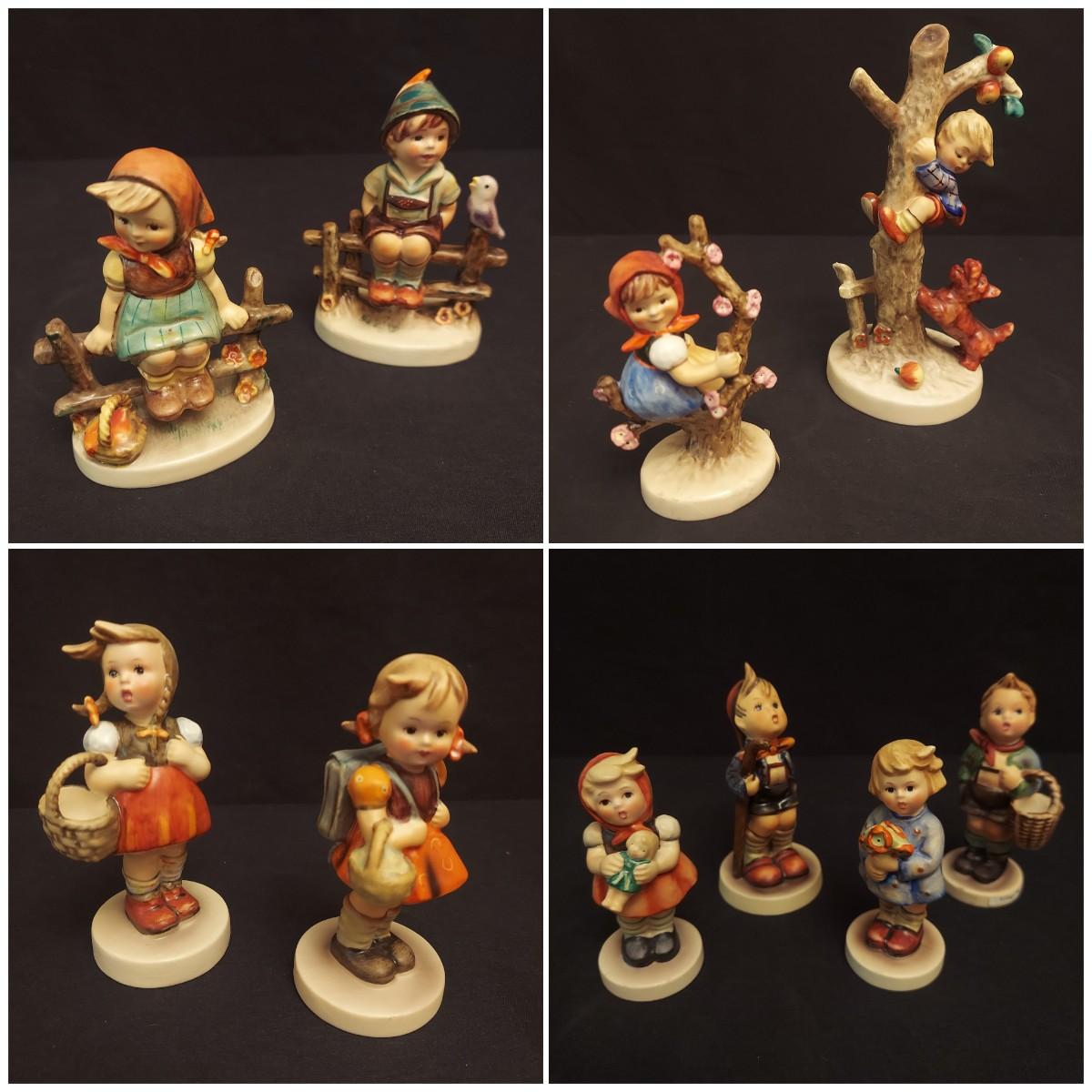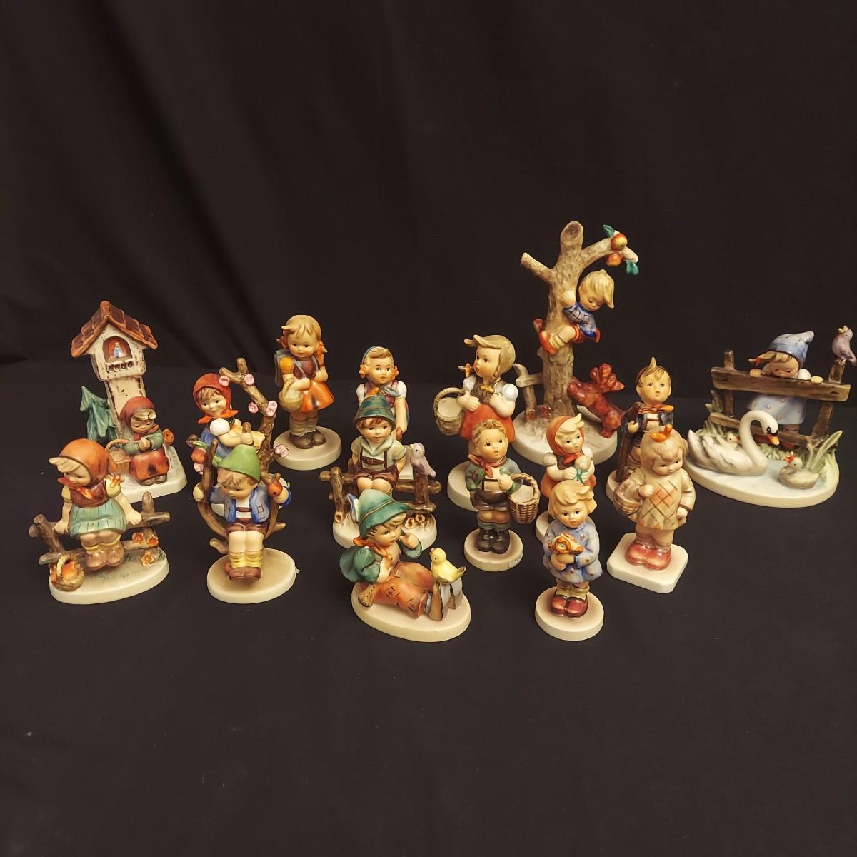 Lot includes 16 Hummel by Goebel figurines including Just Resting Boy and Girls figures. These measure approximately 4"H. The largest is Culprits which measures 3"D x 6.5"H. Some pieces are stamped with the date the form was originally released. See trademark image for a more accurate approximation of age. Please see photos for details. Shipping available.