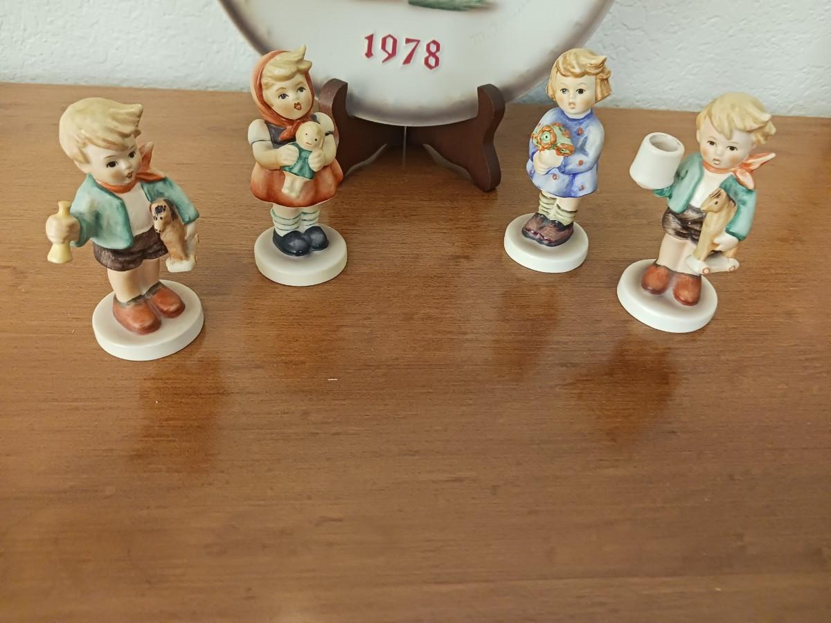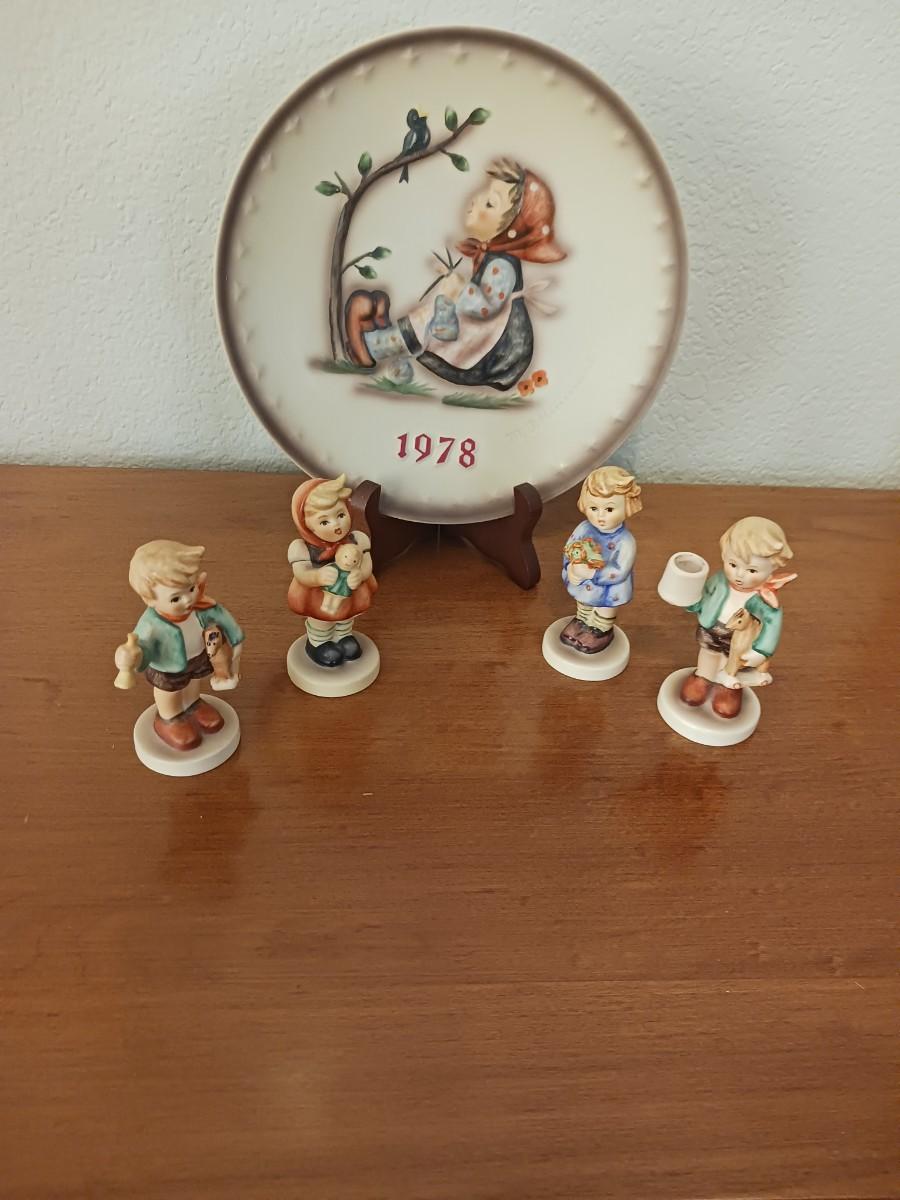 HUMMEL PLATE AND 4 HUMMEL FIGURINES