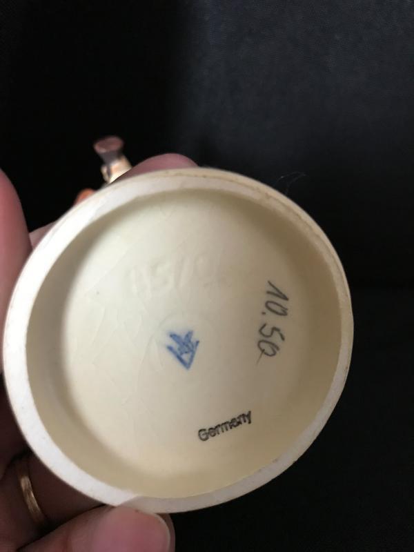 It stands 5" tall and on the bottom it is incised with a number and stamped in blue with a V and bumblebee. Marking identifies this piece as produced between 1940-1959.