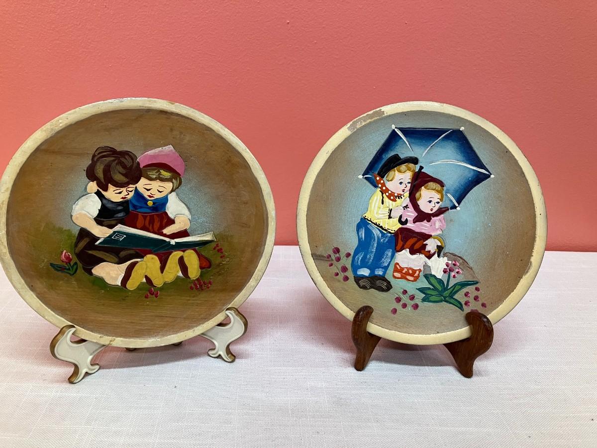 Set of 2 - 7" wooden Vintage Hummel-style plates made in Japan