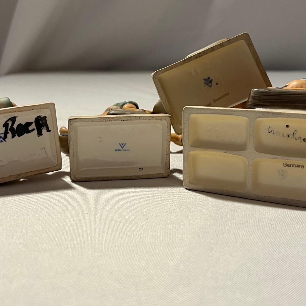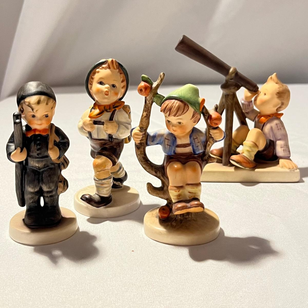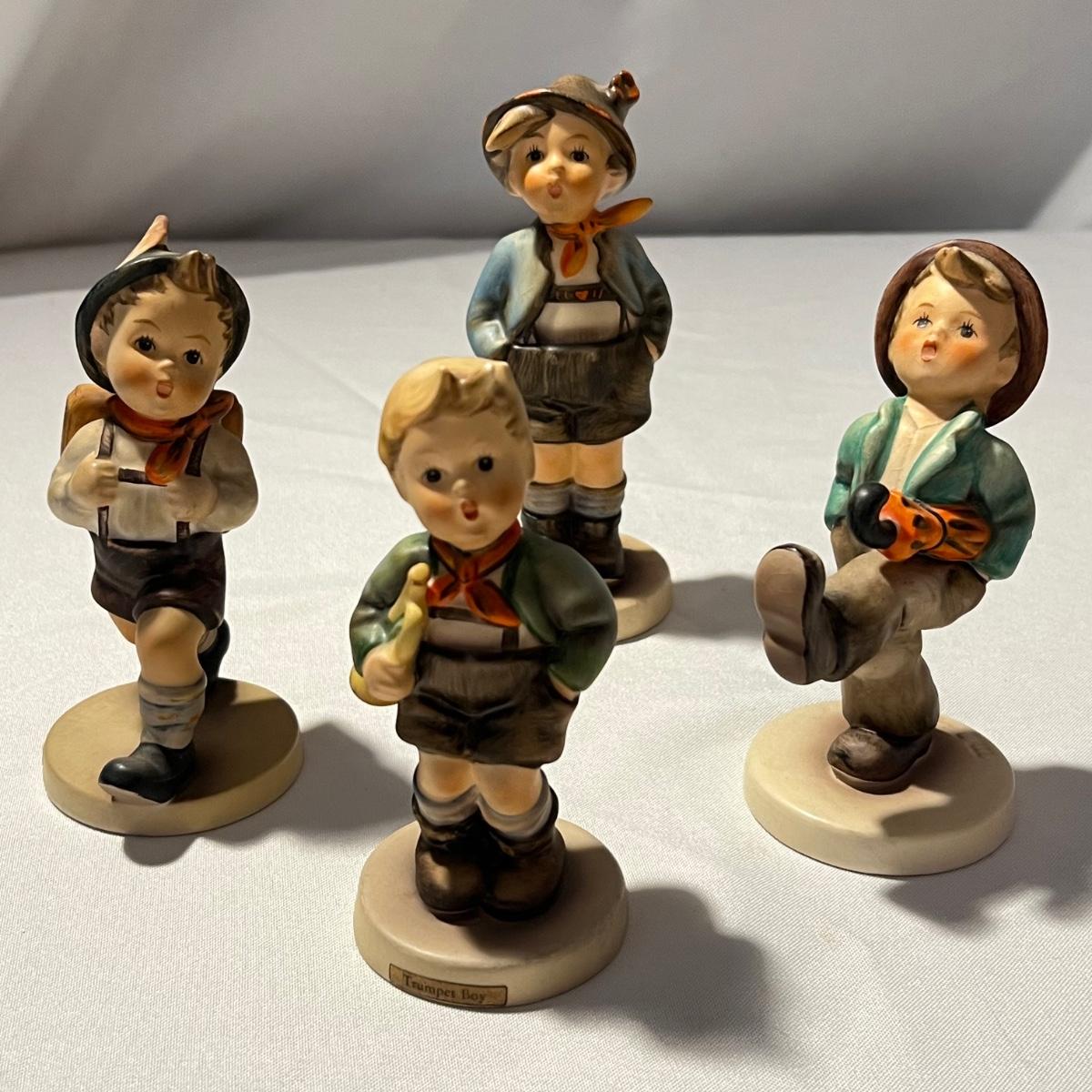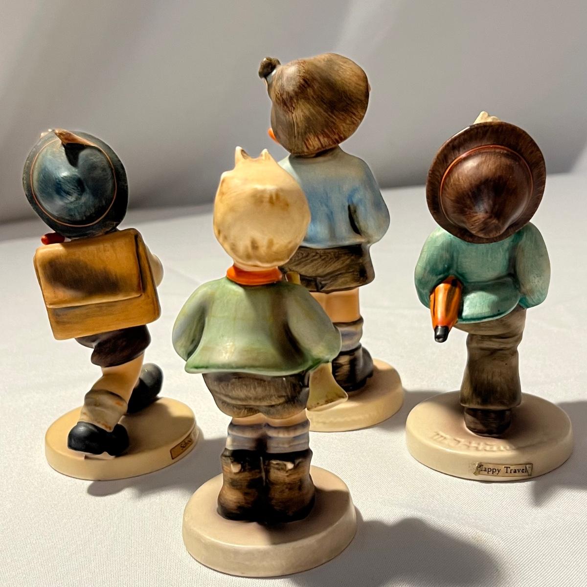 A collection of 19 Hummel figurines includes four Merry Wanderers, but in different sizes with the largest measuring 2” x 3” x 6”H. See photos for hallmarks and other information on all figurines.