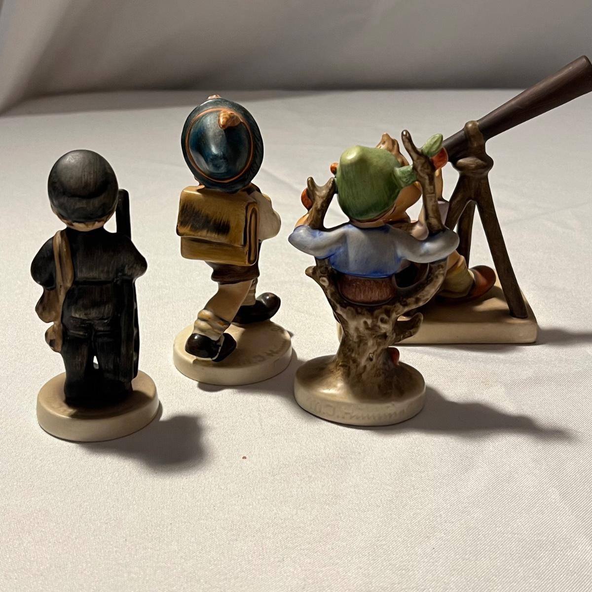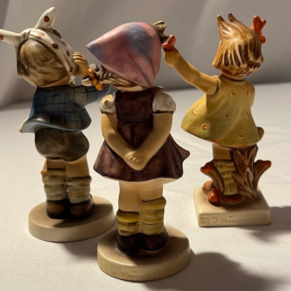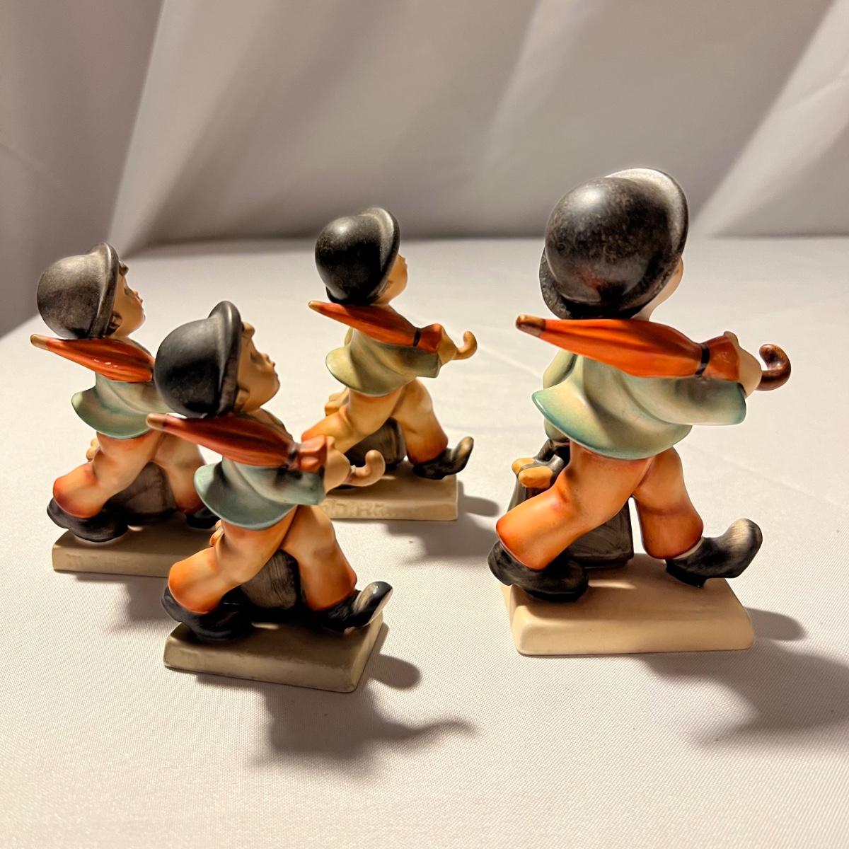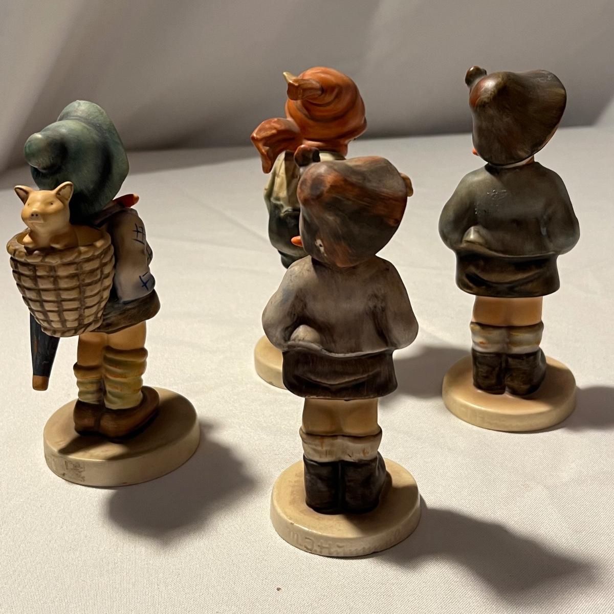 A collection of 19 Hummel figurines includes four Merry Wanderers, but in different sizes with the largest measuring 2” x 3” x 6”H. See photos for hallmarks and other information on all figurines.