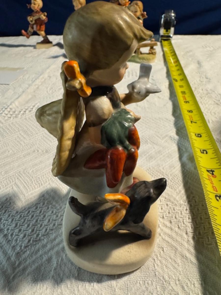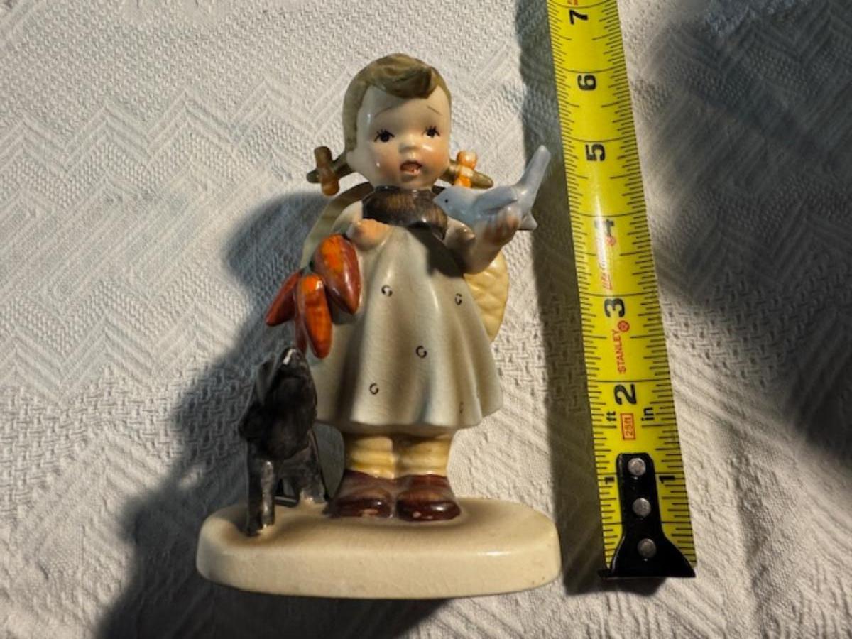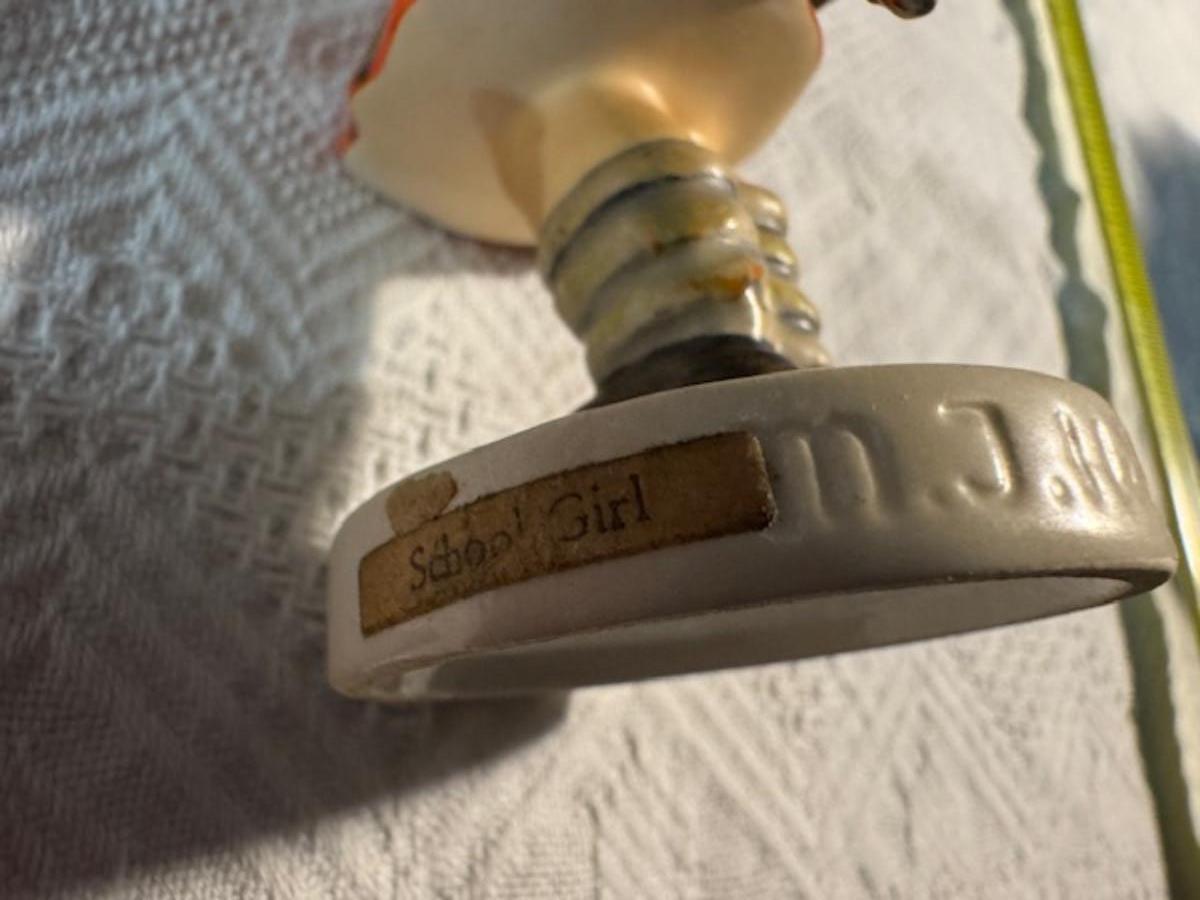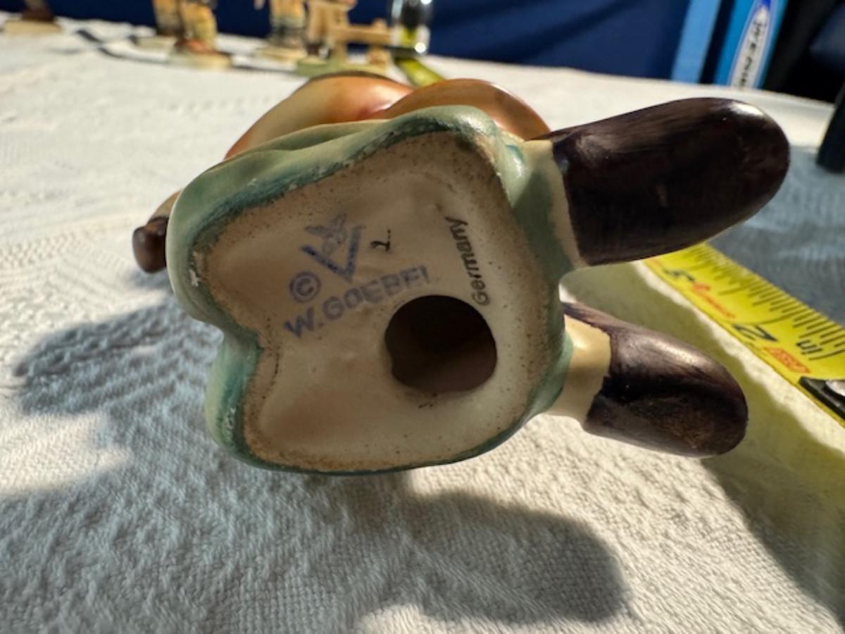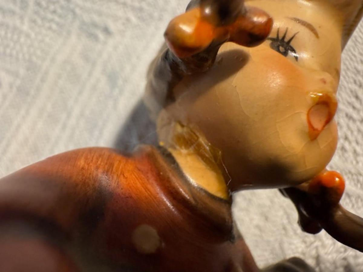 Little hiker 16 2/0 mark 3, School Girl 81 2/0 mark 3, Little Scholar 80 mark 3, Home From the Market 198 mark 4, Boy Playing Accordion Goebel, Little Tooter, Happiness 86 - as is, neck has been glued back on.