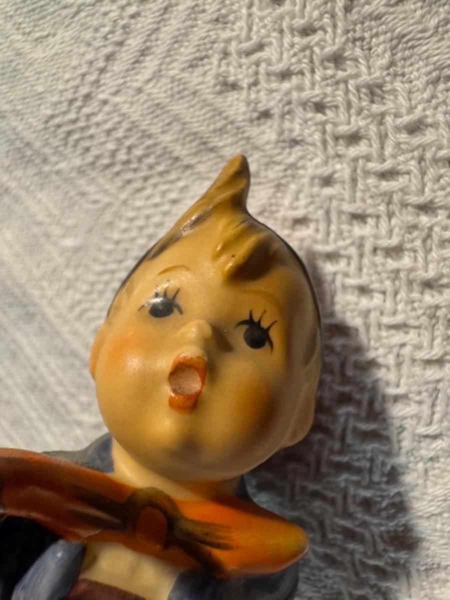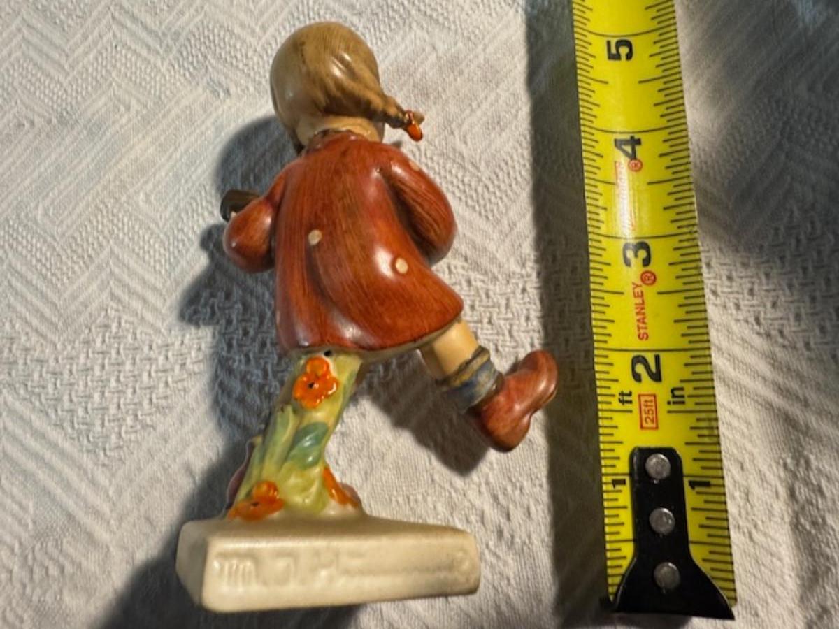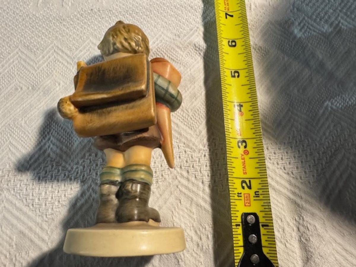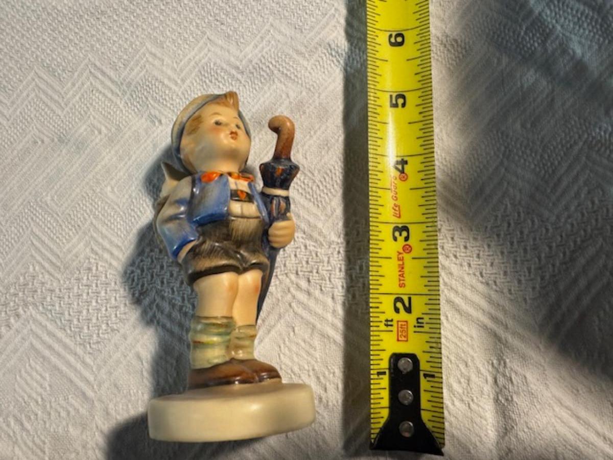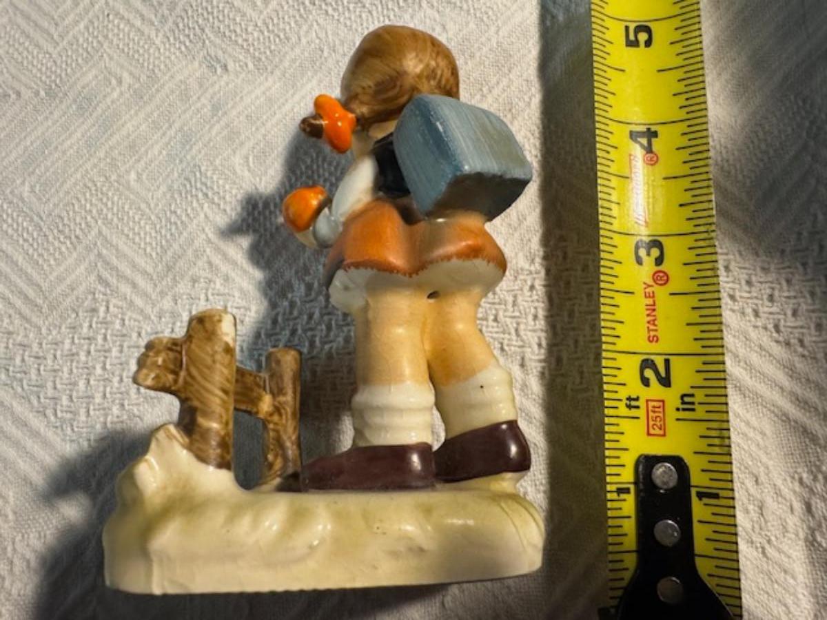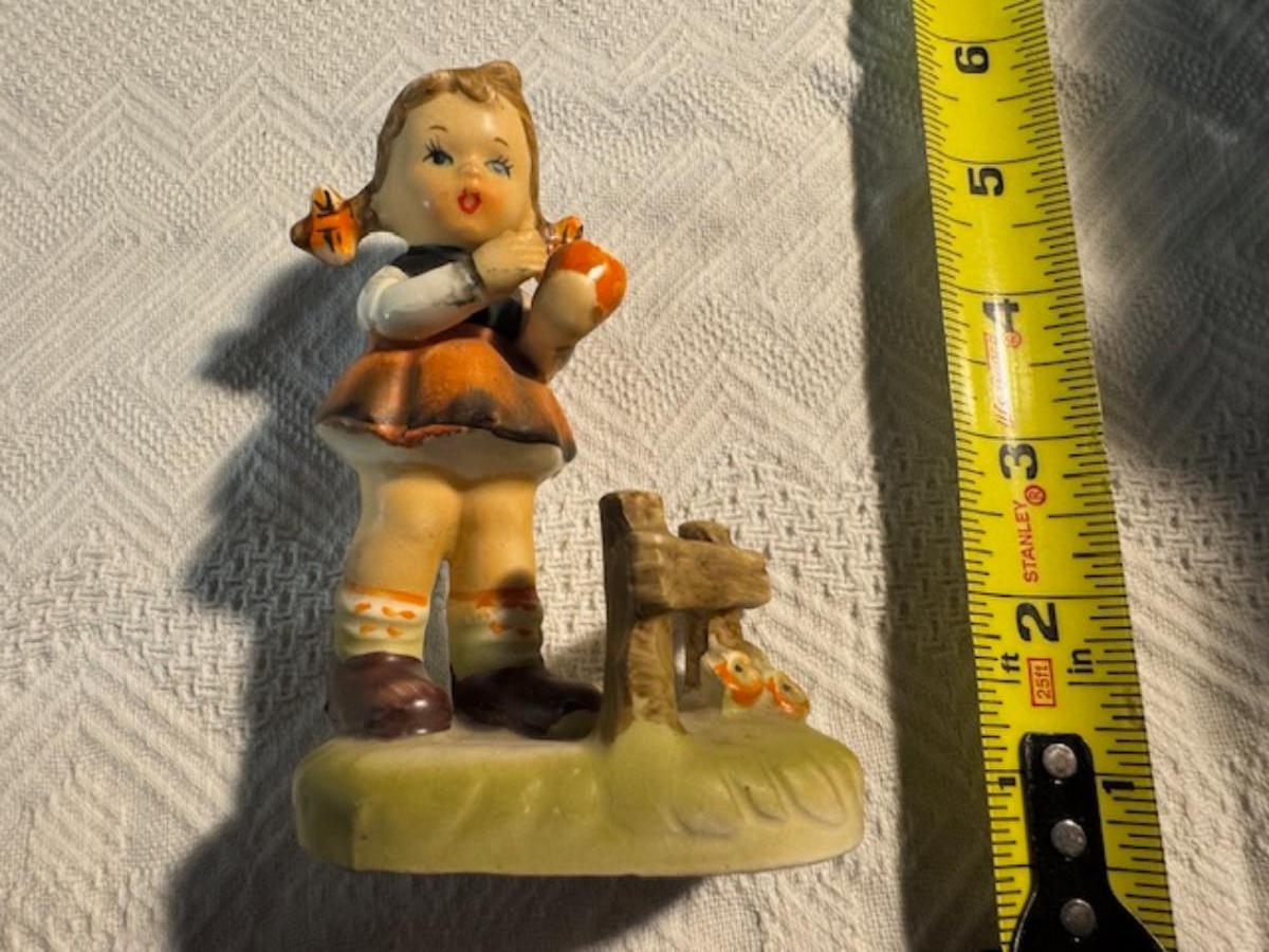 Little hiker 16 2/0 mark 3, School Girl 81 2/0 mark 3, Little Scholar 80 mark 3, Home From the Market 198 mark 4, Boy Playing Accordion Goebel, Little Tooter, Happiness 86 - as is, neck has been glued back on.