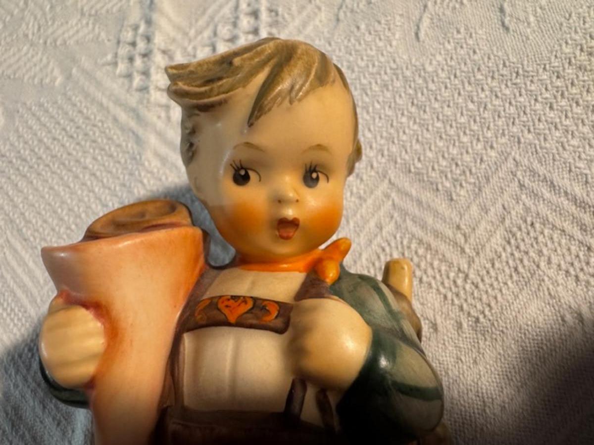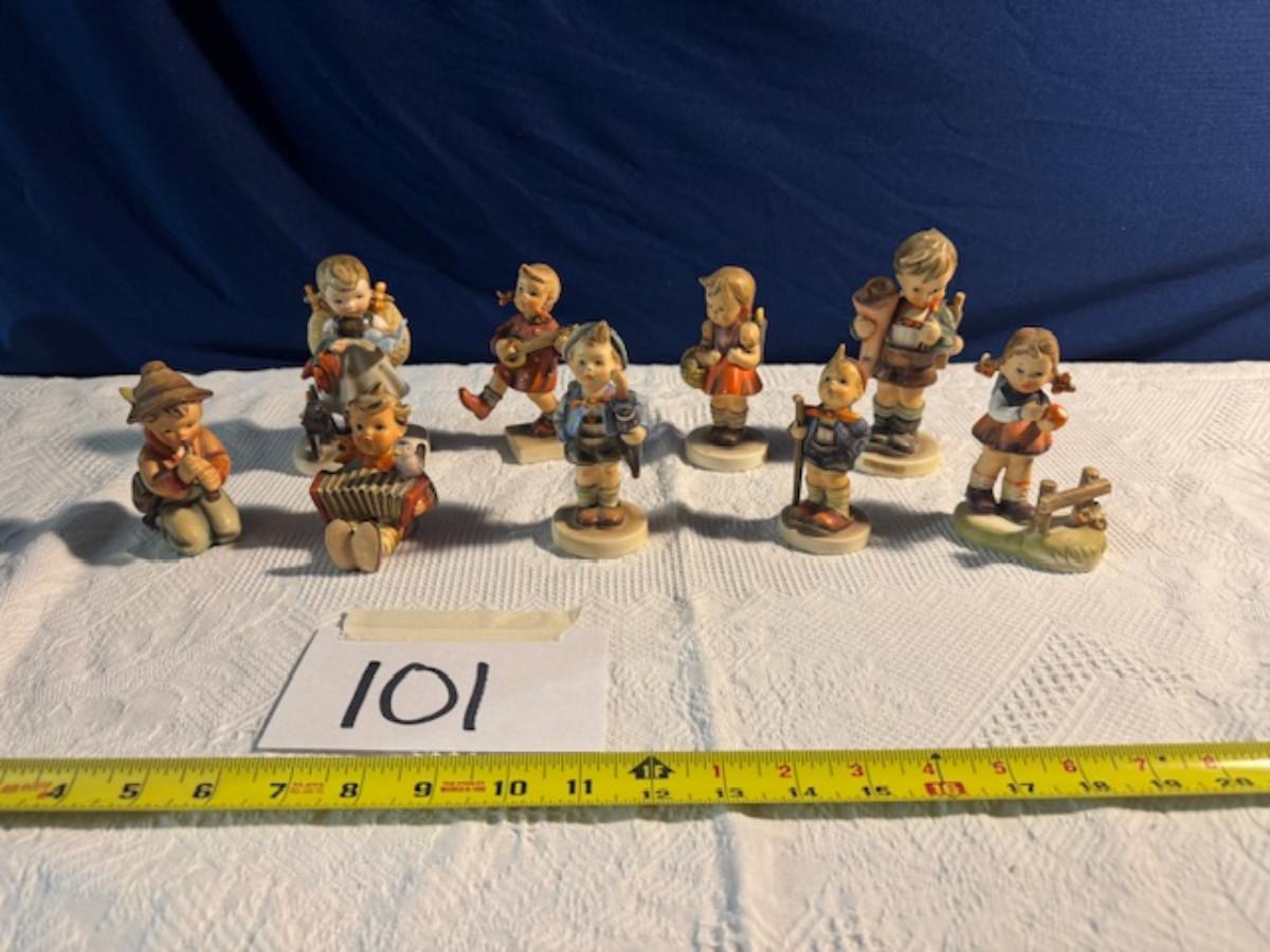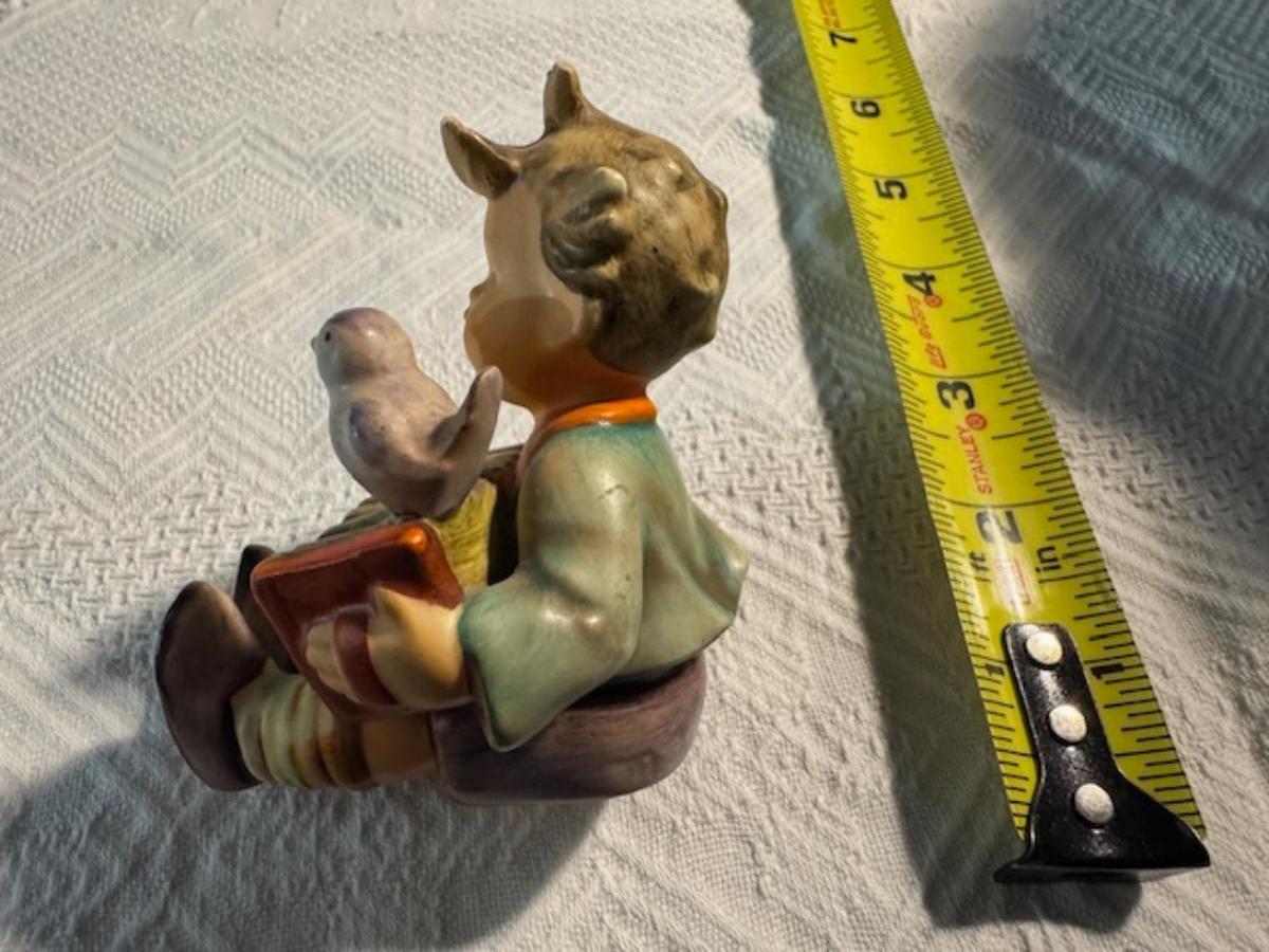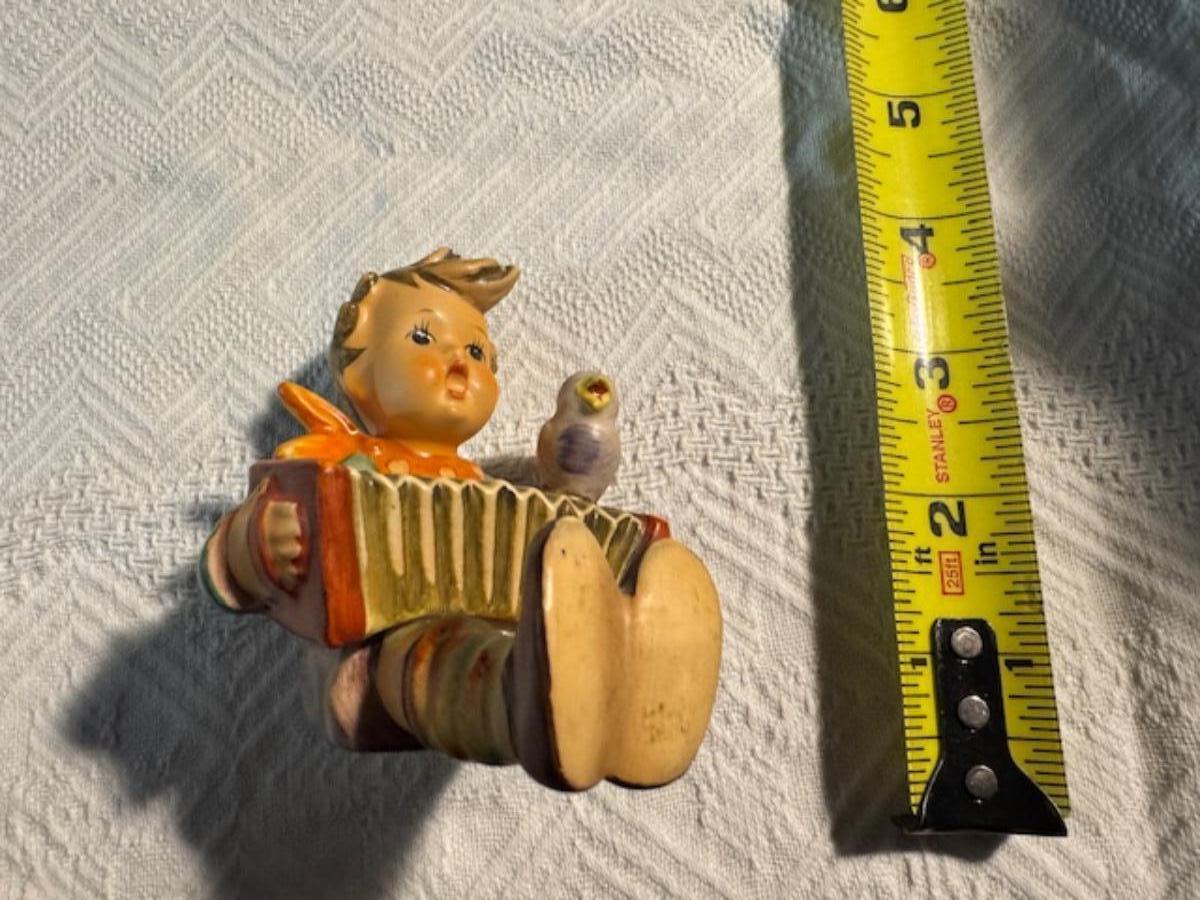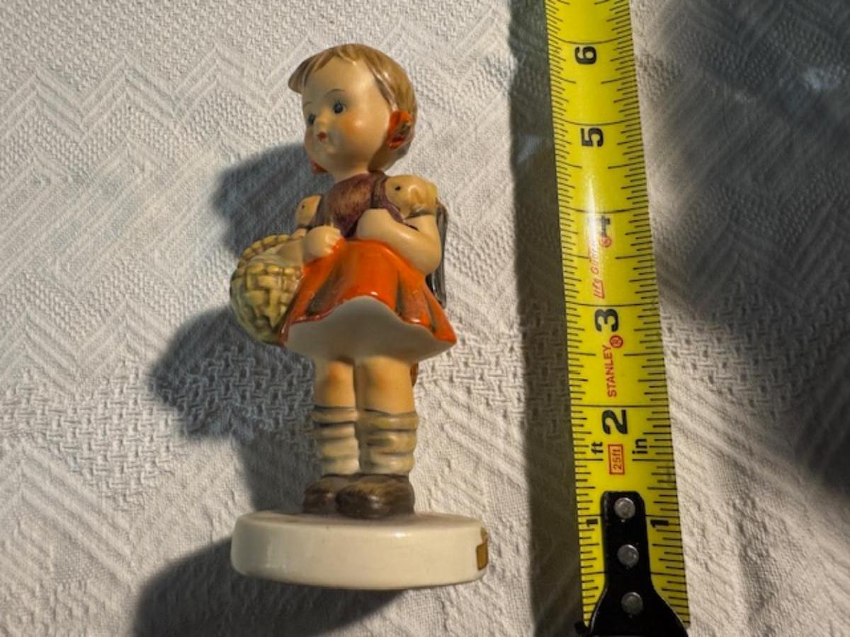 Little hiker 16 2/0 mark 3, School Girl 81 2/0 mark 3, Little Scholar 80 mark 3, Home From the Market 198 mark 4, Boy Playing Accordion Goebel, Little Tooter, Happiness 86 - as is, neck has been glued back on.