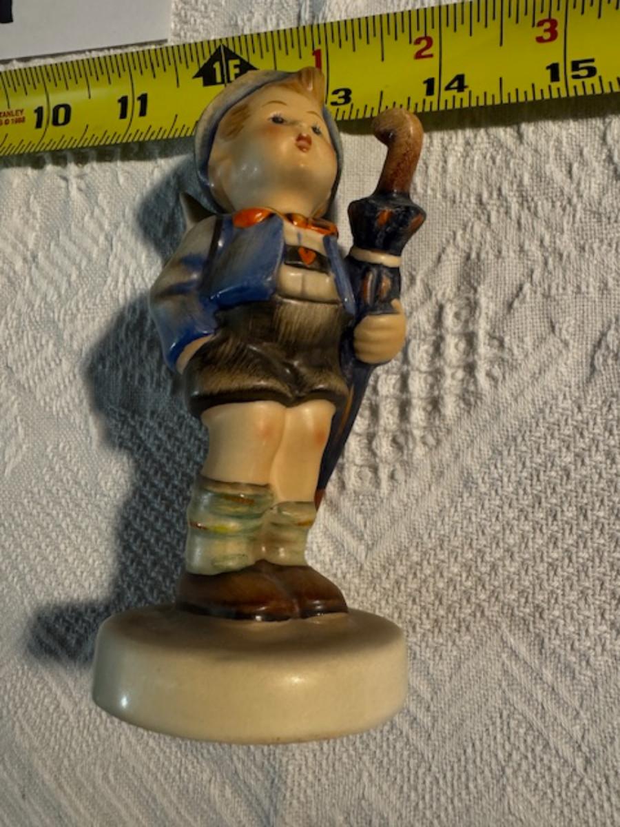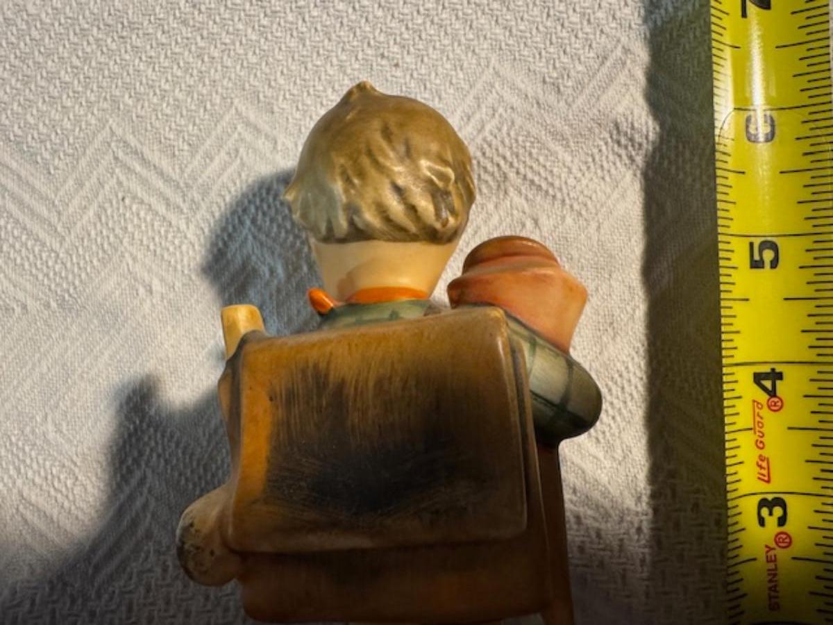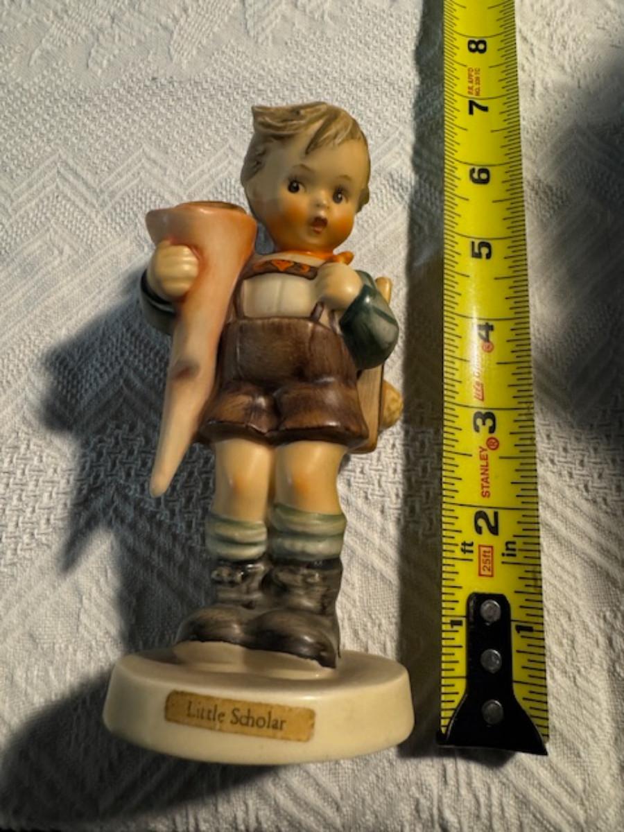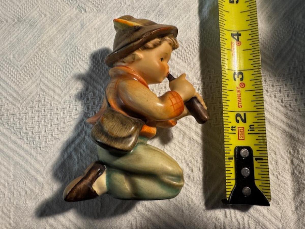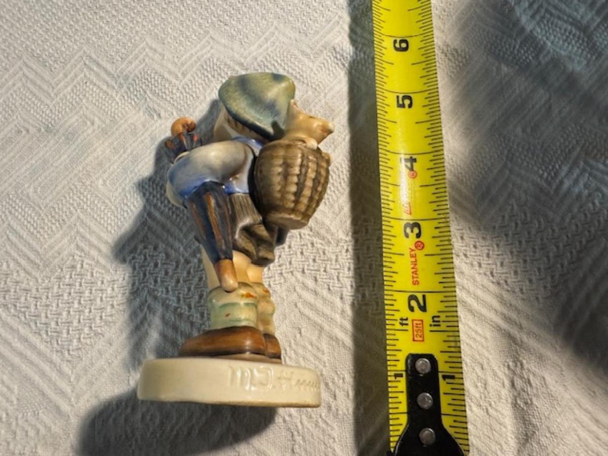 Little hiker 16 2/0 mark 3, School Girl 81 2/0 mark 3, Little Scholar 80 mark 3, Home From the Market 198 mark 4, Boy Playing Accordion Goebel, Little Tooter, Happiness 86 - as is, neck has been glued back on.
