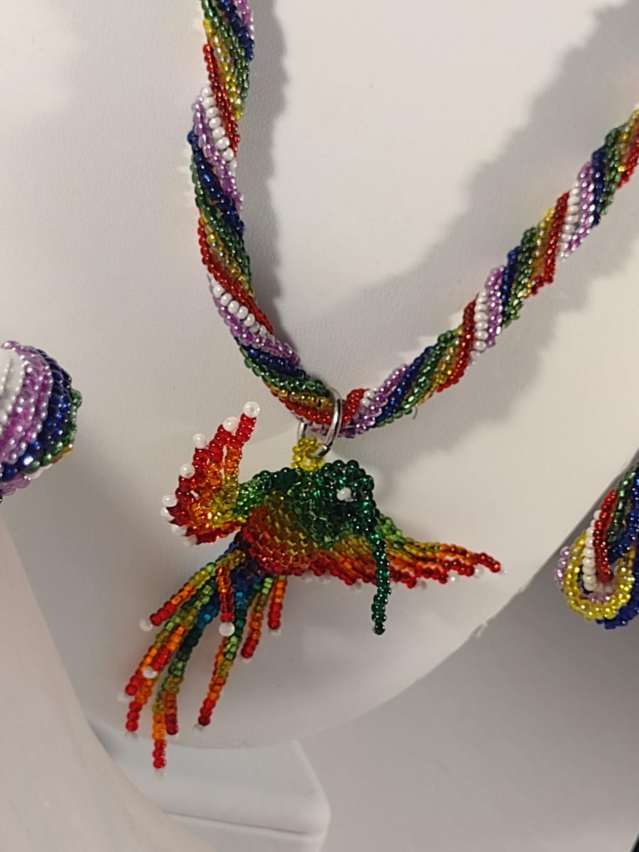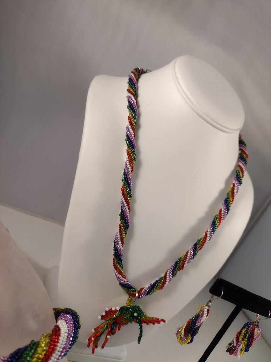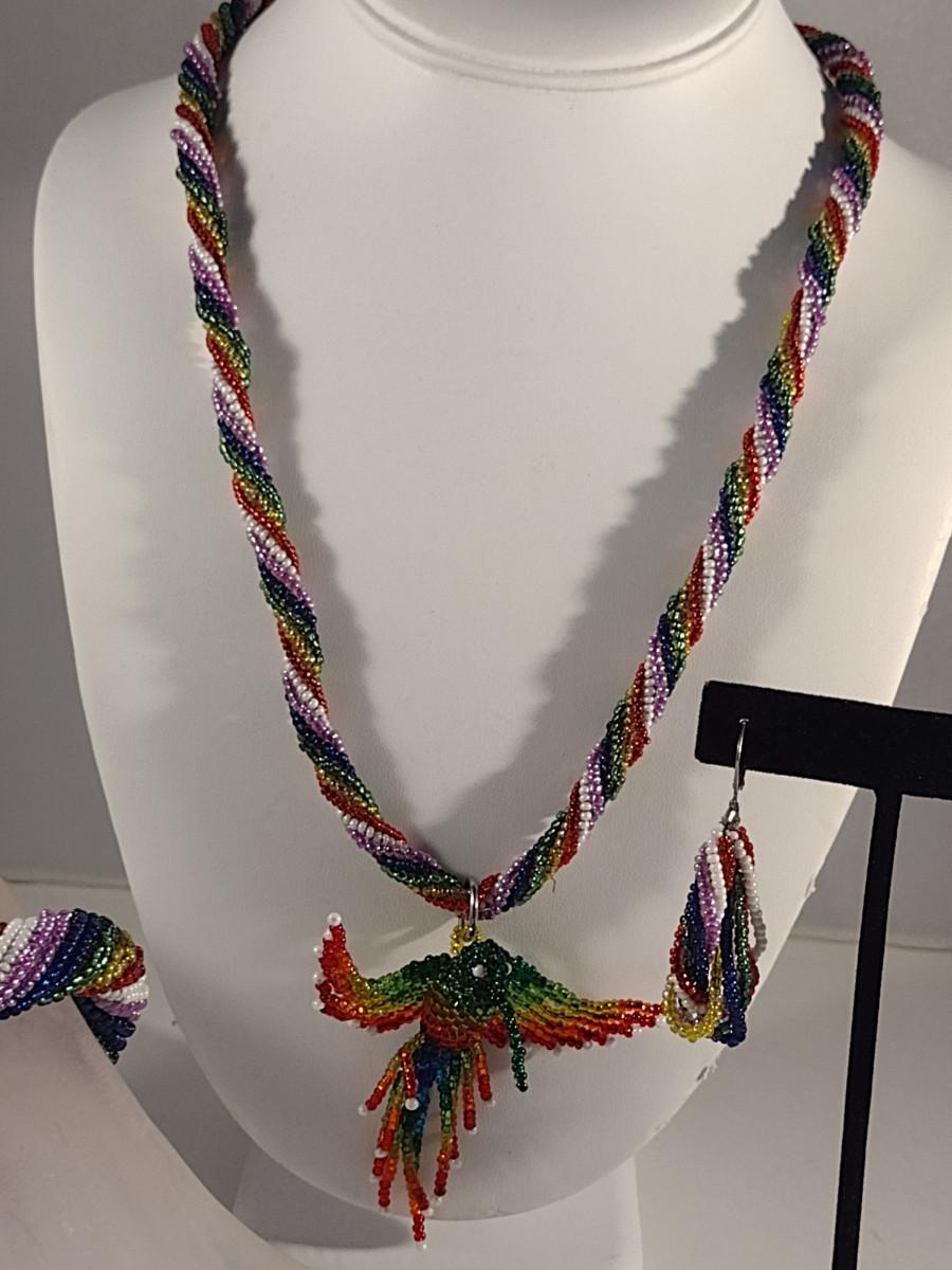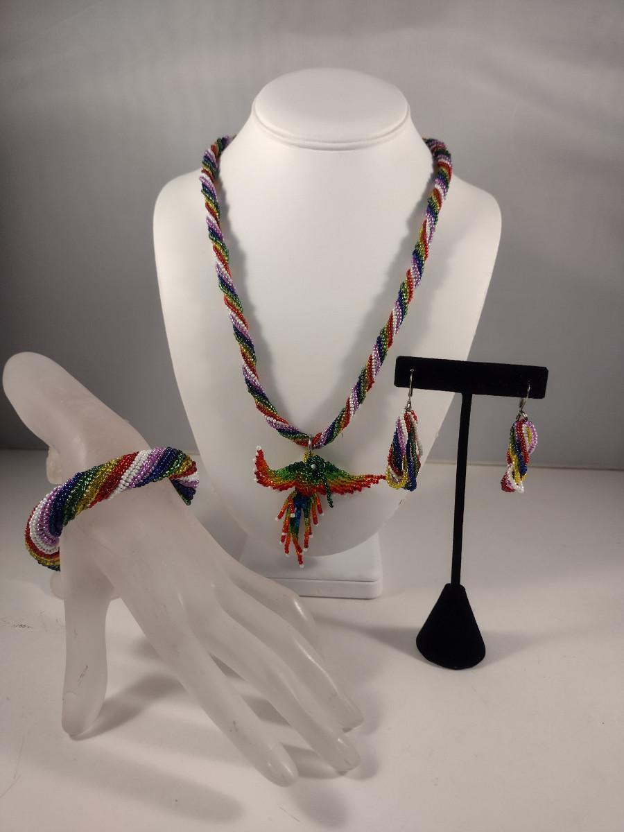 Hummingbird Design Hand Made Multi-Color Seed Bead Jewelry Set (#19)