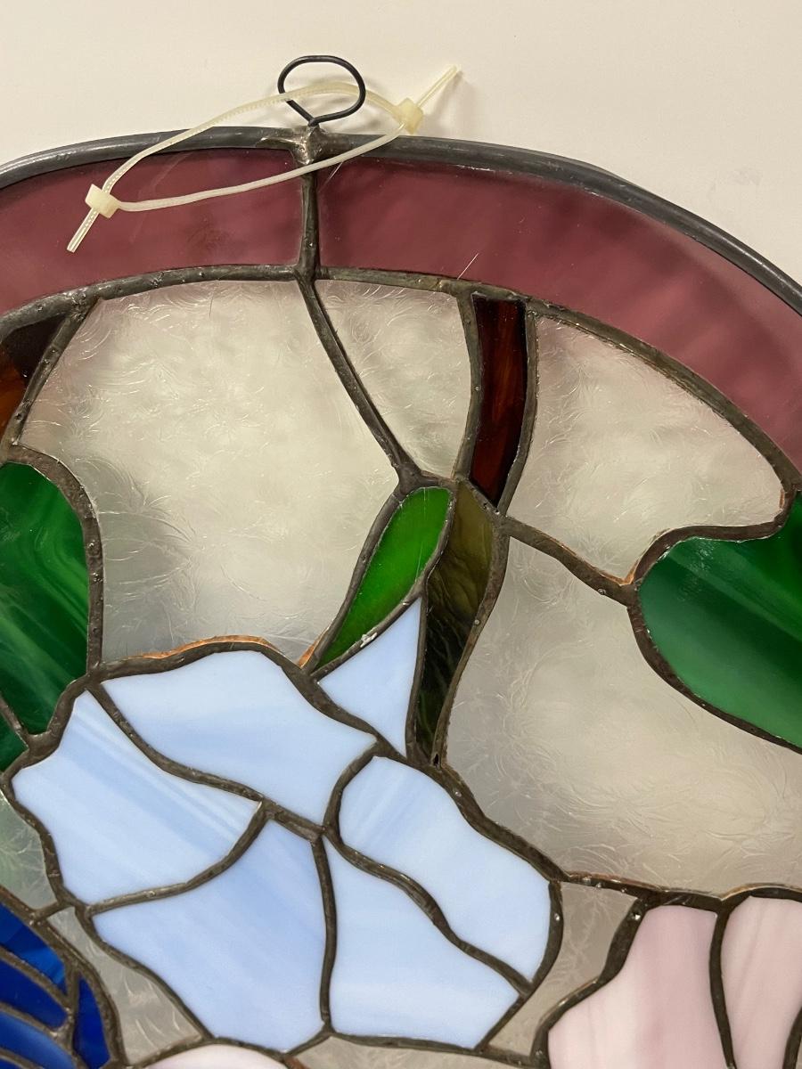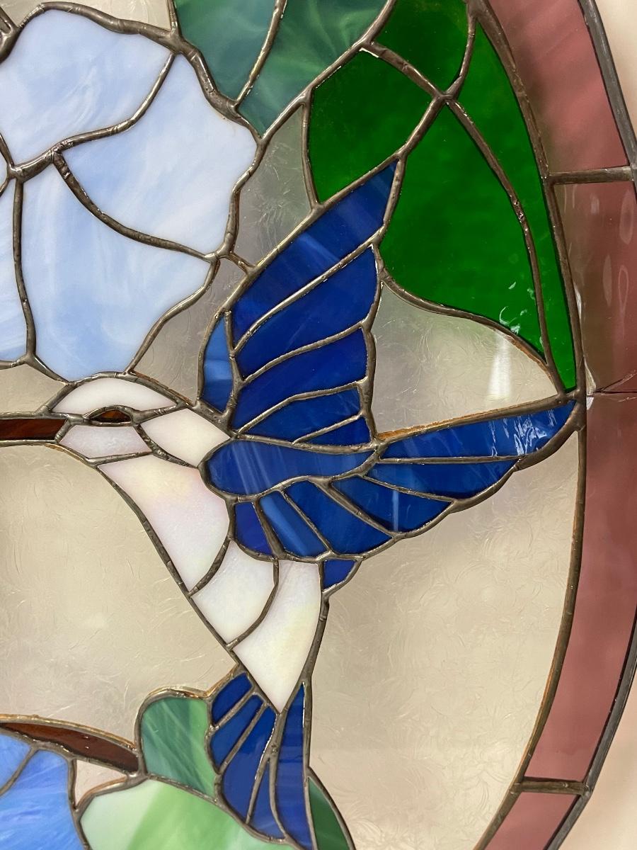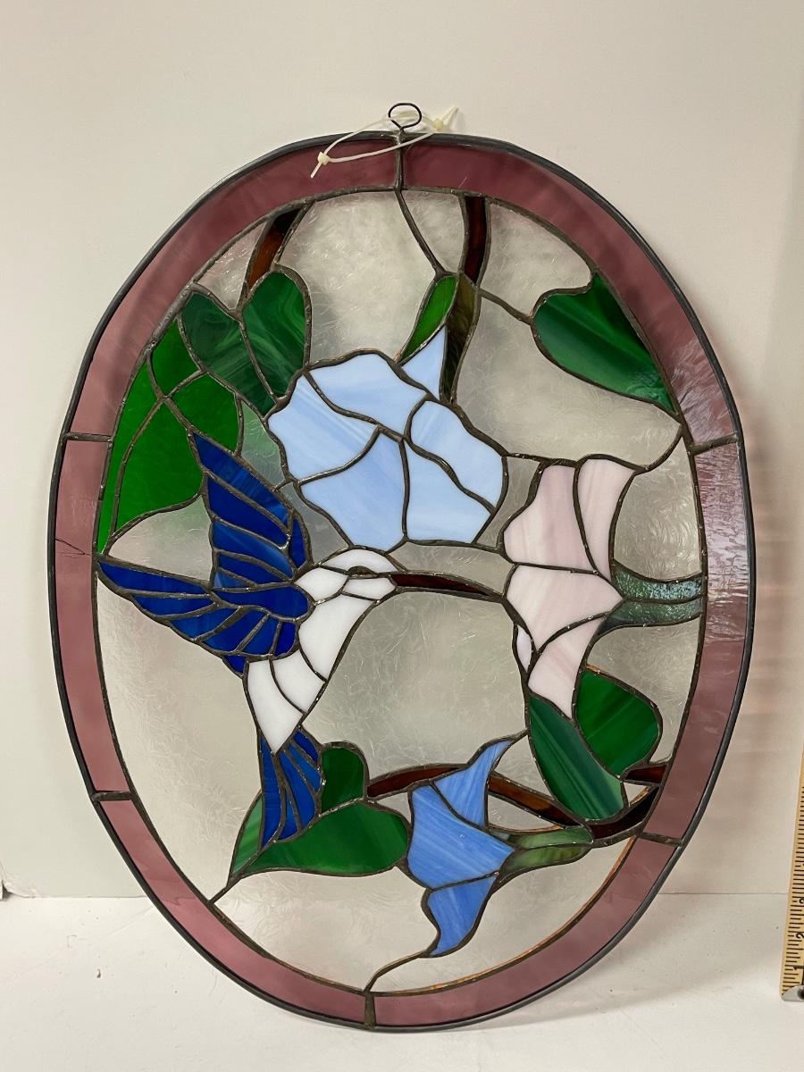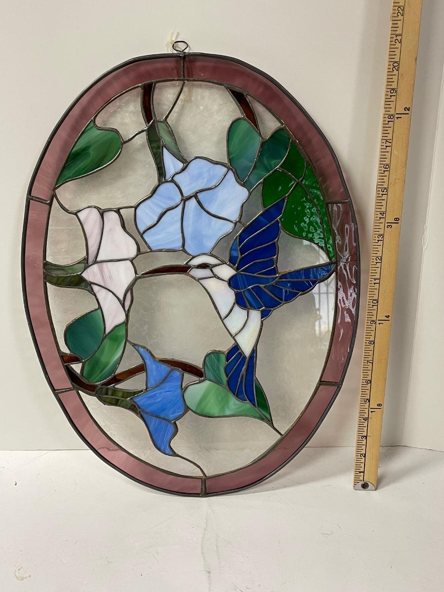Hummingbird Stained Glass Oval panel wall /window hanging