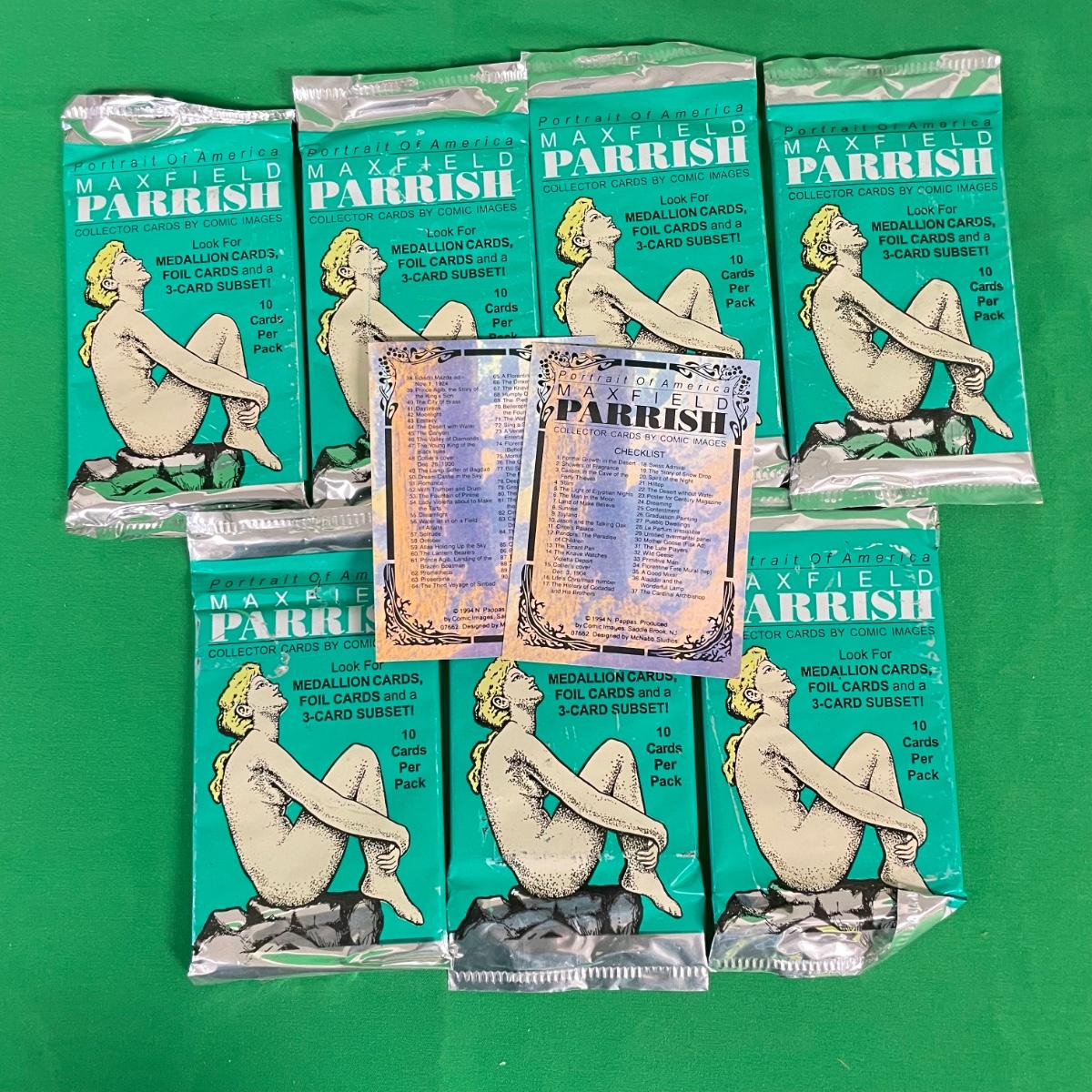 Seven sealed Portrait of America by Maxfield Parrish 10 card packs plus over 200 cards which appear to be from 1994. See images. Items are sold as-is. No returns or refunds. Please bid accordingly.