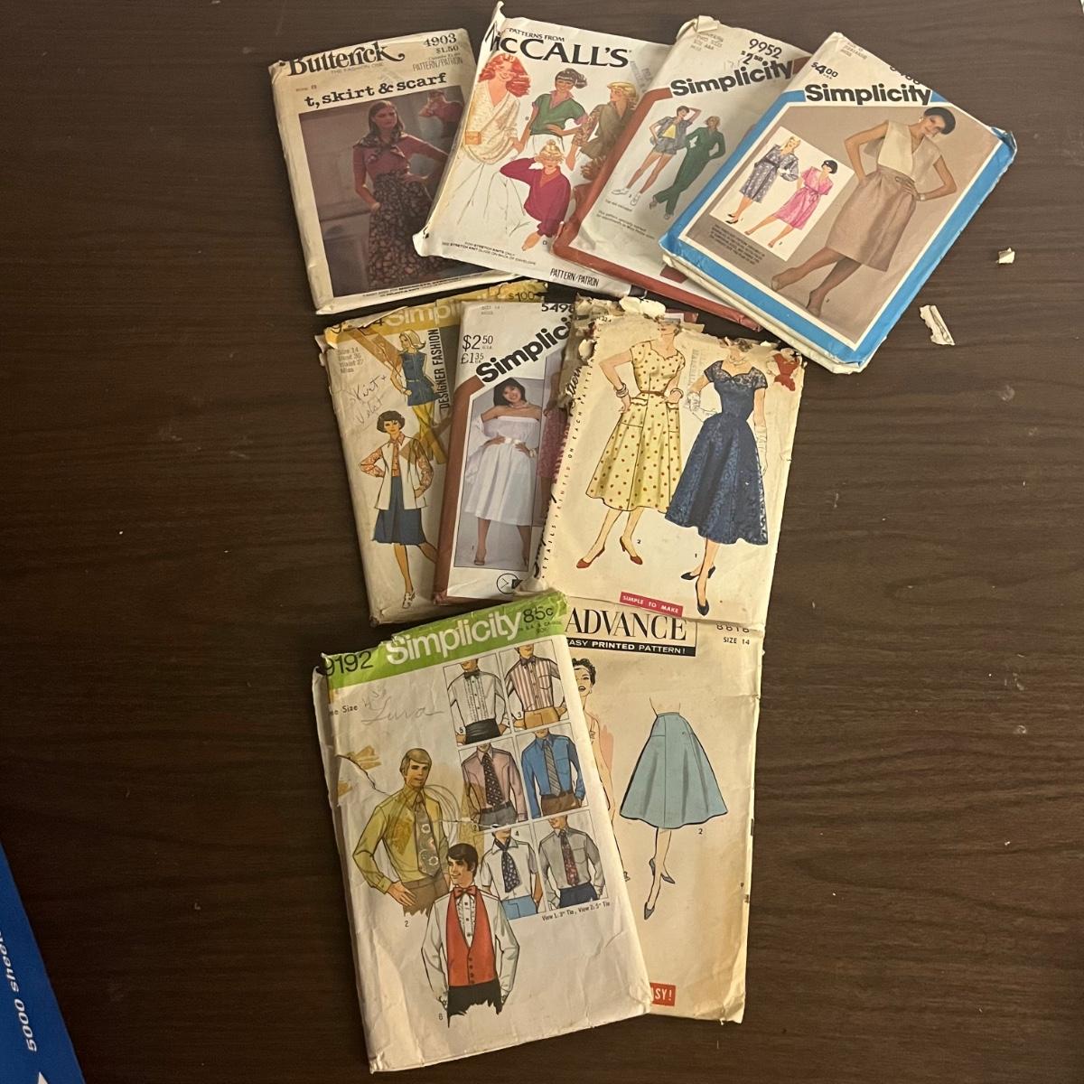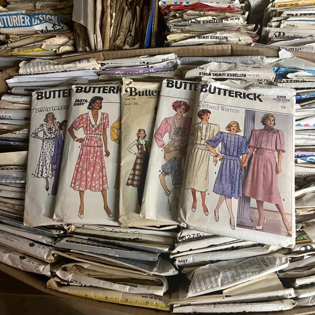 Lot includes hundreds of vintage sewing patterns by Butterick, McCalls, Vogue and more. Shipping Available