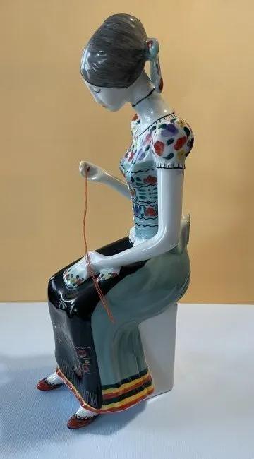 Hungarian Hollohaza Girl Sewing Figurine 9.25" Tall in VG Preowned Condition Preowned from an Estate. Very Nicely Done. $15 DOMESTIC INHOUSE SHIPPING.