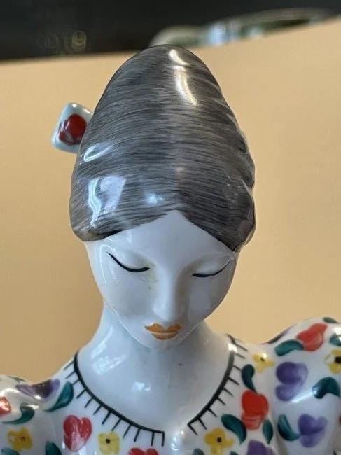 Hungarian Hollohaza Girl Sewing Figurine 9.25" Tall in VG Preowned Condition Preowned from an Estate. Very Nicely Done. $15 Domestic Shipping.