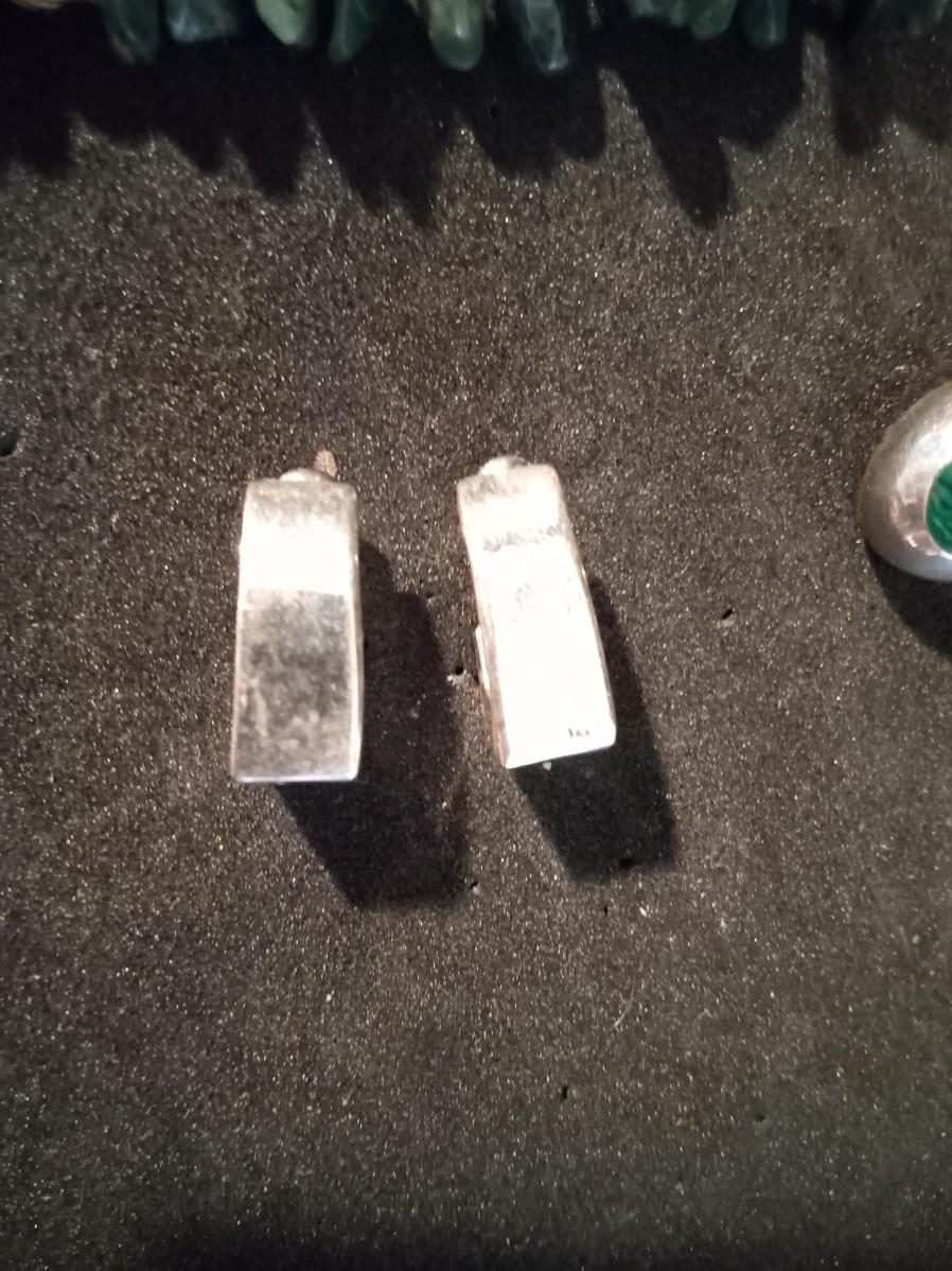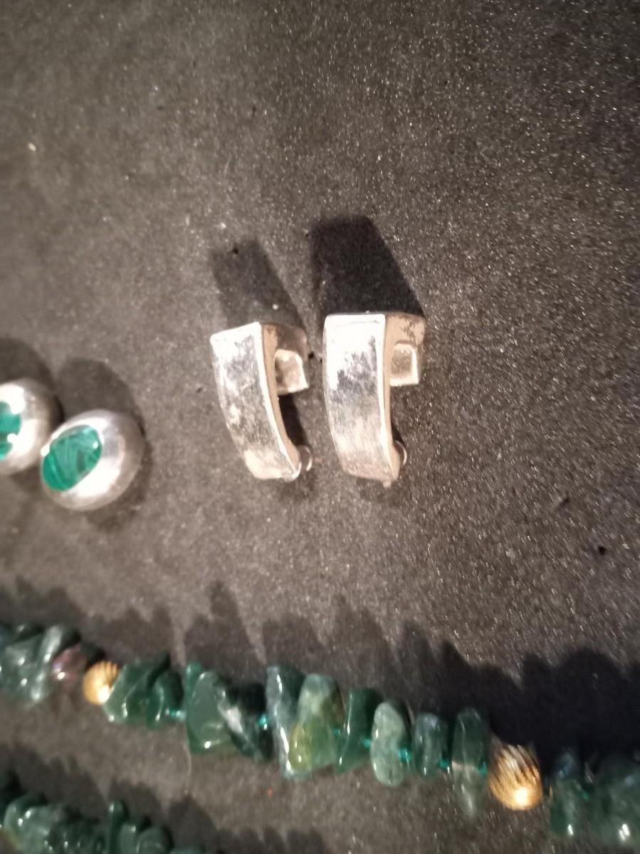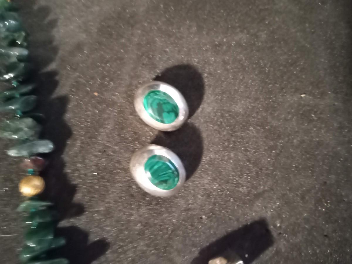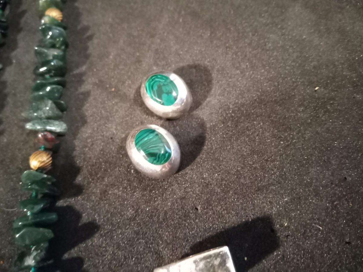 THIS LOT ALSO INCLUDES A PAIR OF STERLING PIERCED EARRINGS WITH A DARK GREEN STONE AND A PAIR OF SILVER TONE EARRINGS
