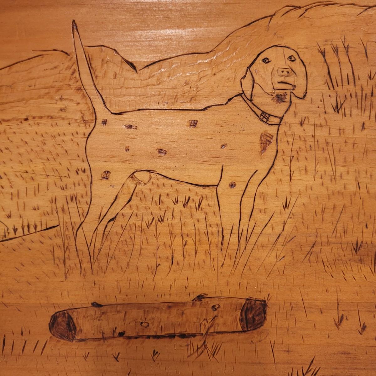 "Hunting Dog" Pyrograph Folk Art (FE-EL)