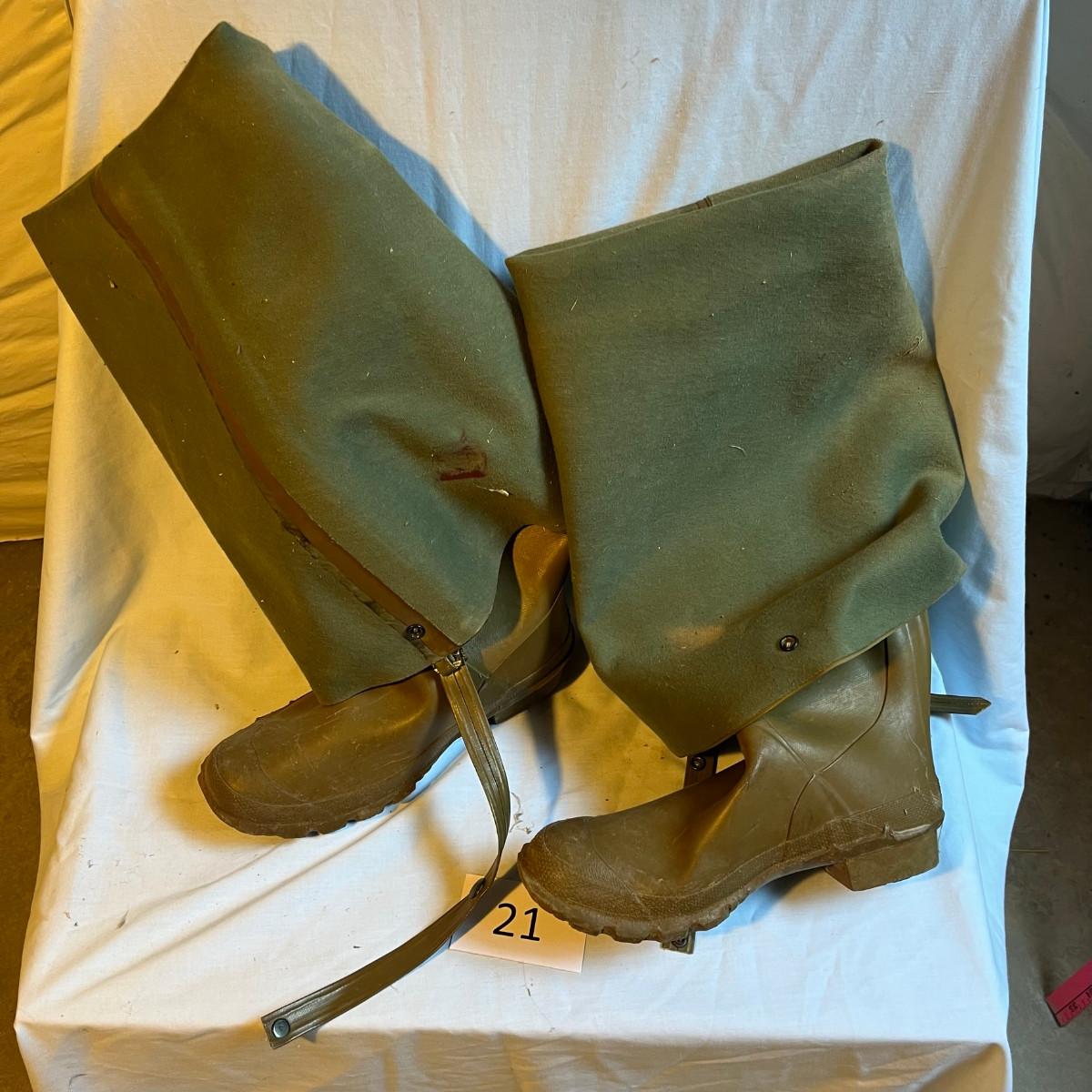 Waders, and boots. Take a look at pictures for sizes and condition.