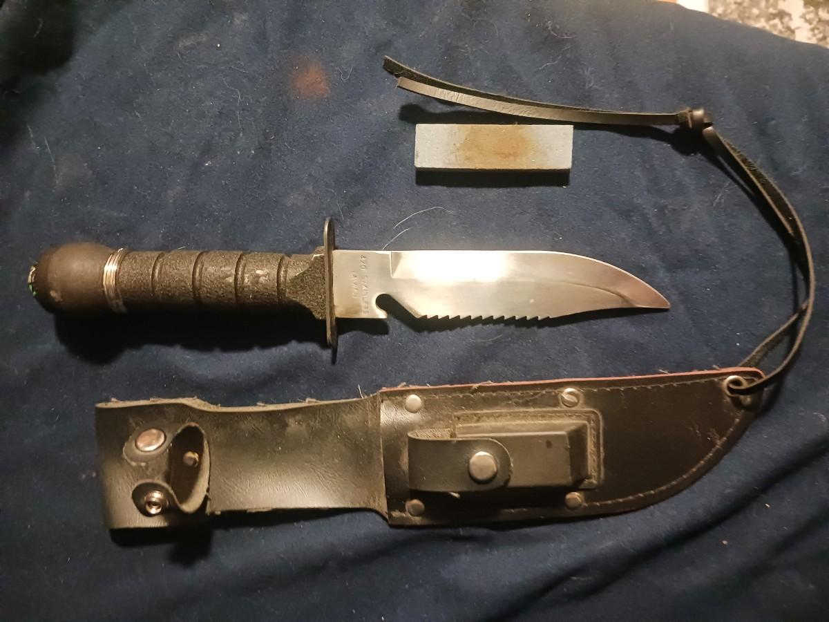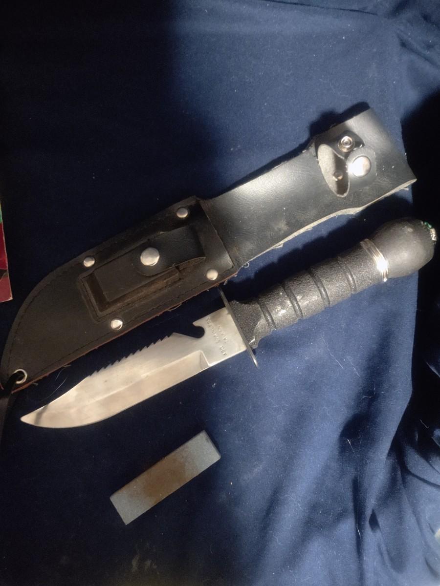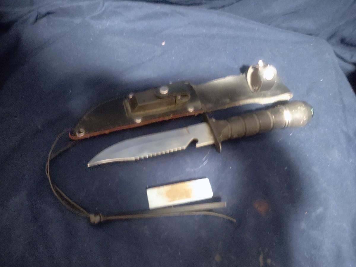 HUNTING KNIFE W/SHEATH AND SHARPENING STONE COMPASS ON TOP