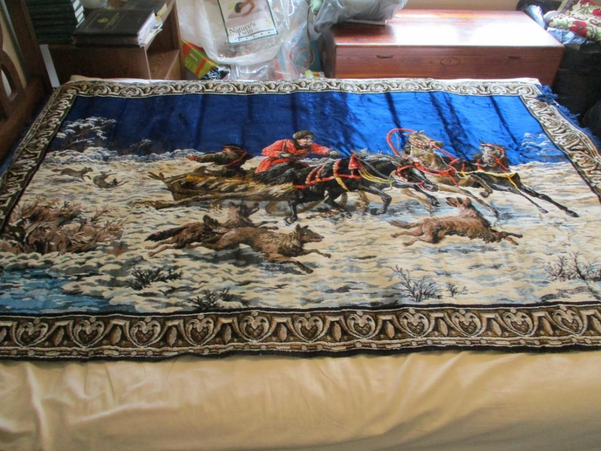 Hunting Scene Tapestry Approx 75 1/2" x 48"