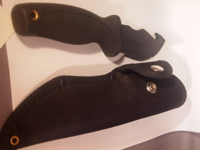 Schrade Sheath Knife with Gut Hook Made in The USA Blacked out 440 Stainless Steel