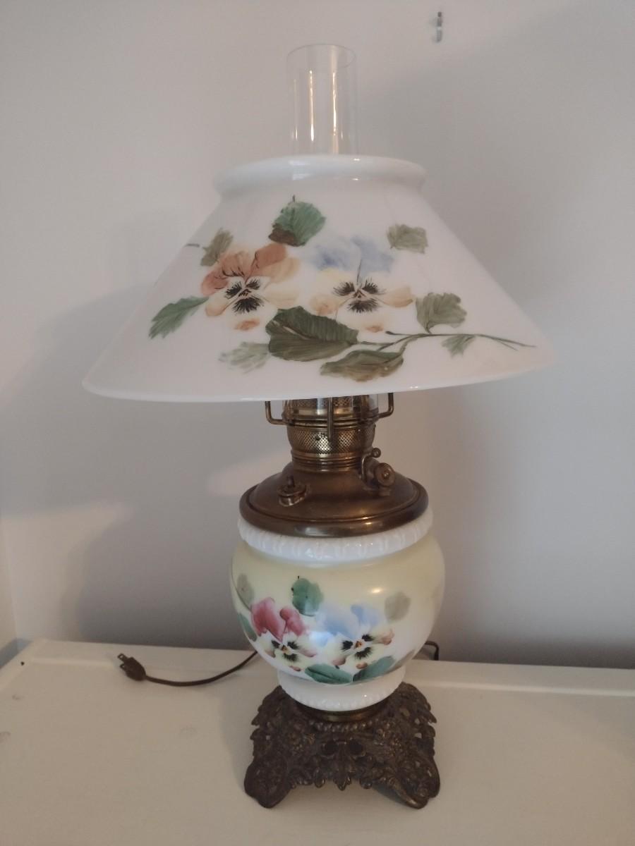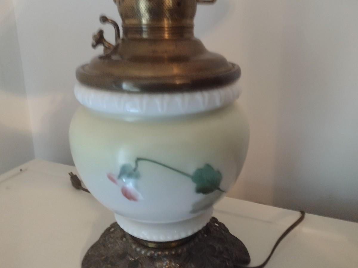 Vintage Hand Painted Shade Juno USA Hurricane Lamp