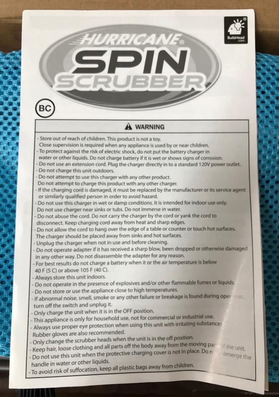 New in the box here is a Hurricane brand bubble head spin scrubber-cleaner...
