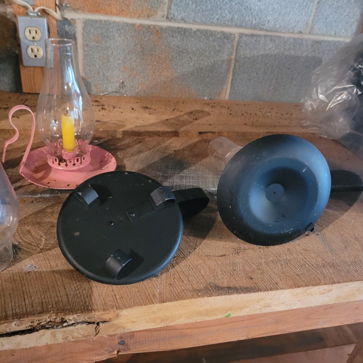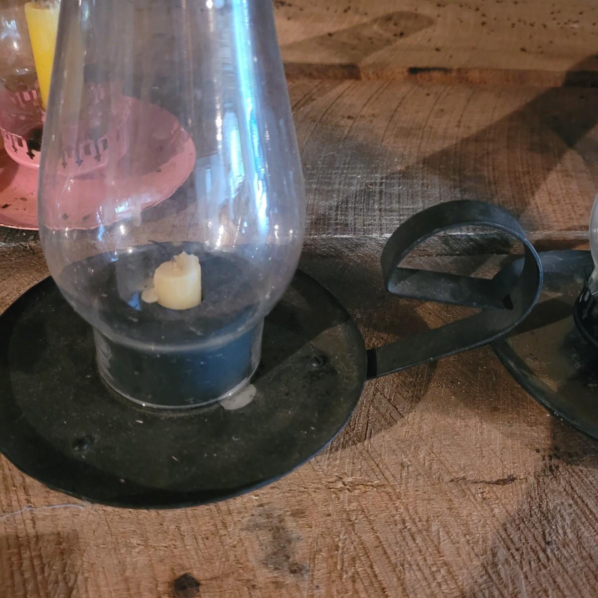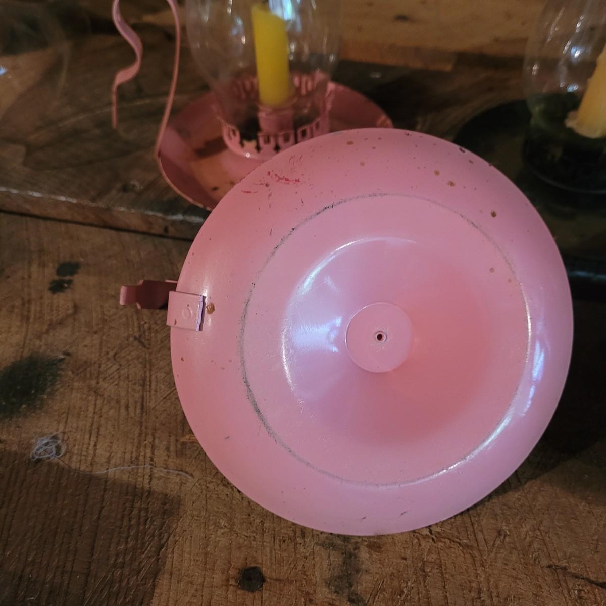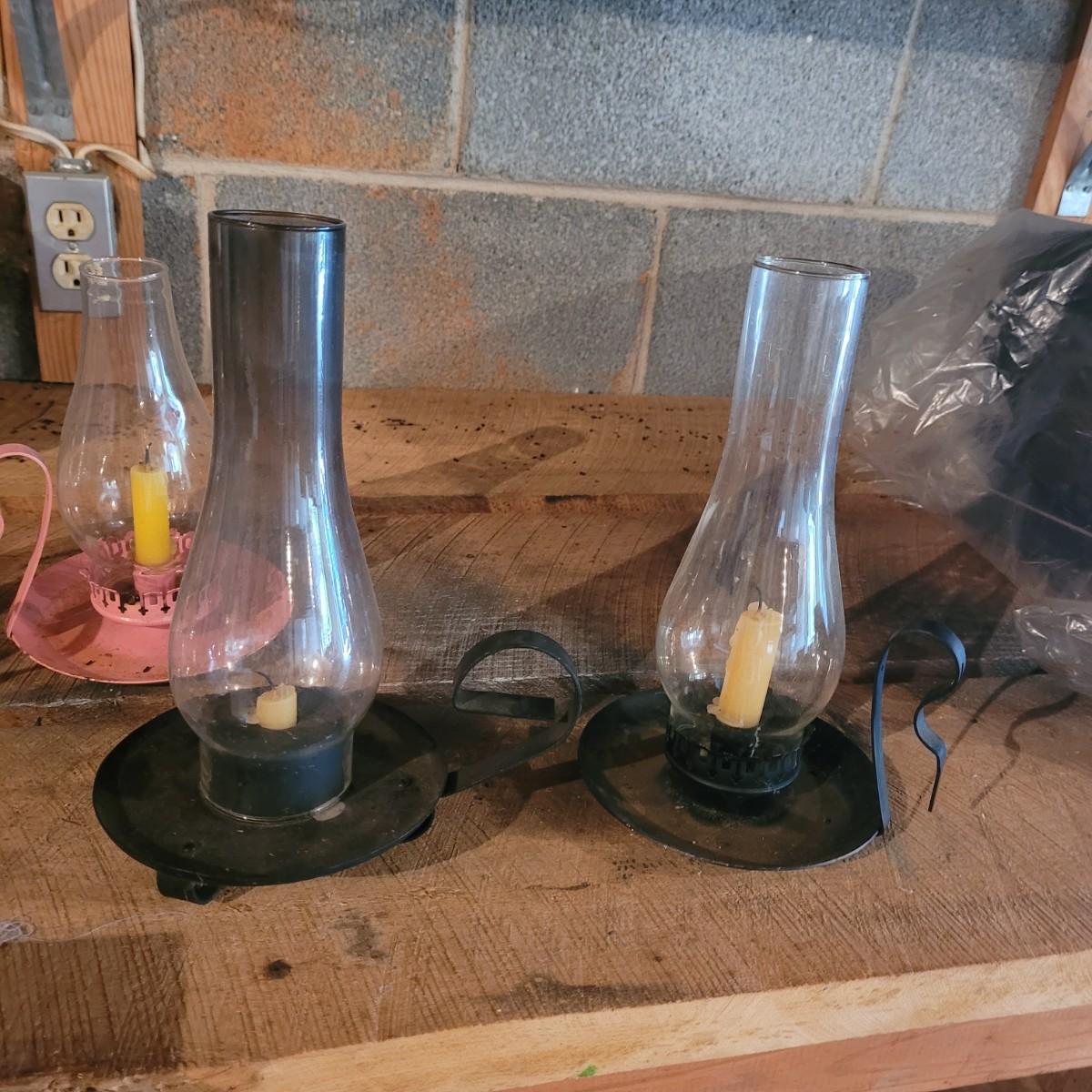 Four small handheld hurricane lamps make a useful addition to the home. Smaller pink lamps measure approximately 6.5"D x 8.5"H. Shipping available.