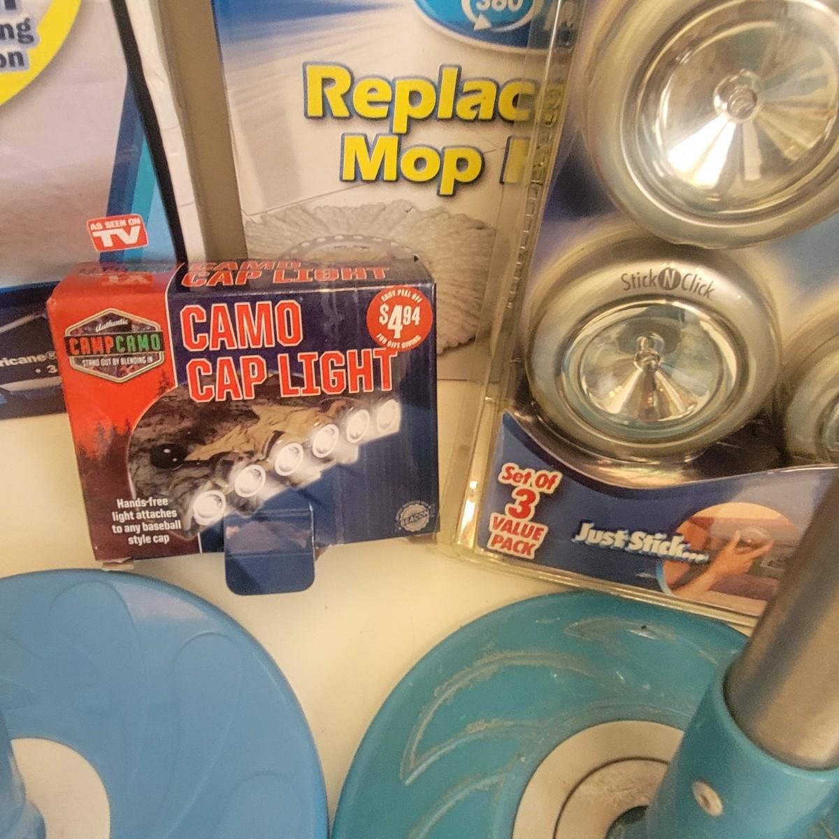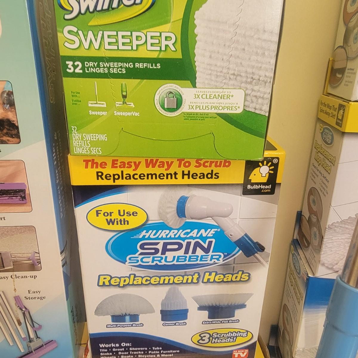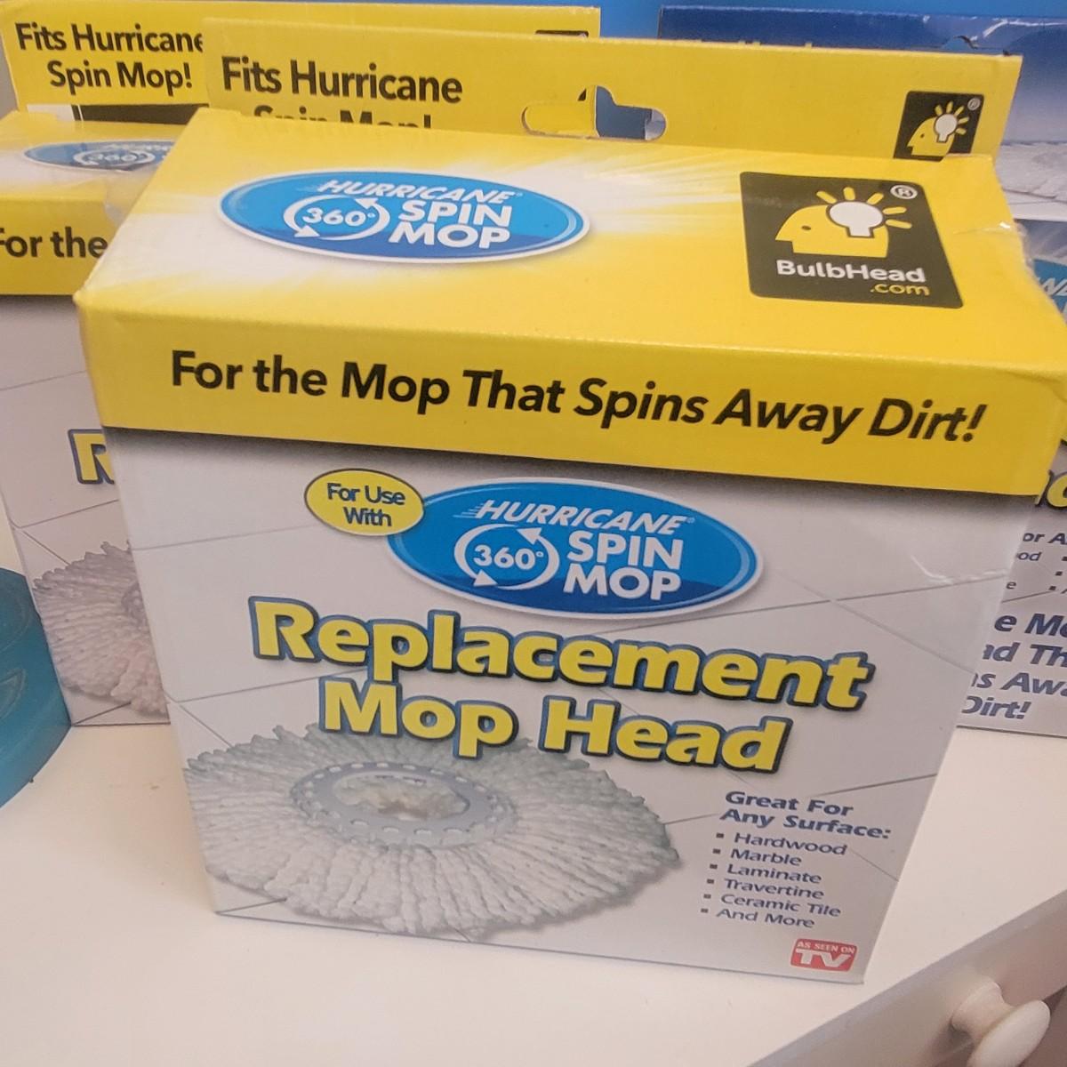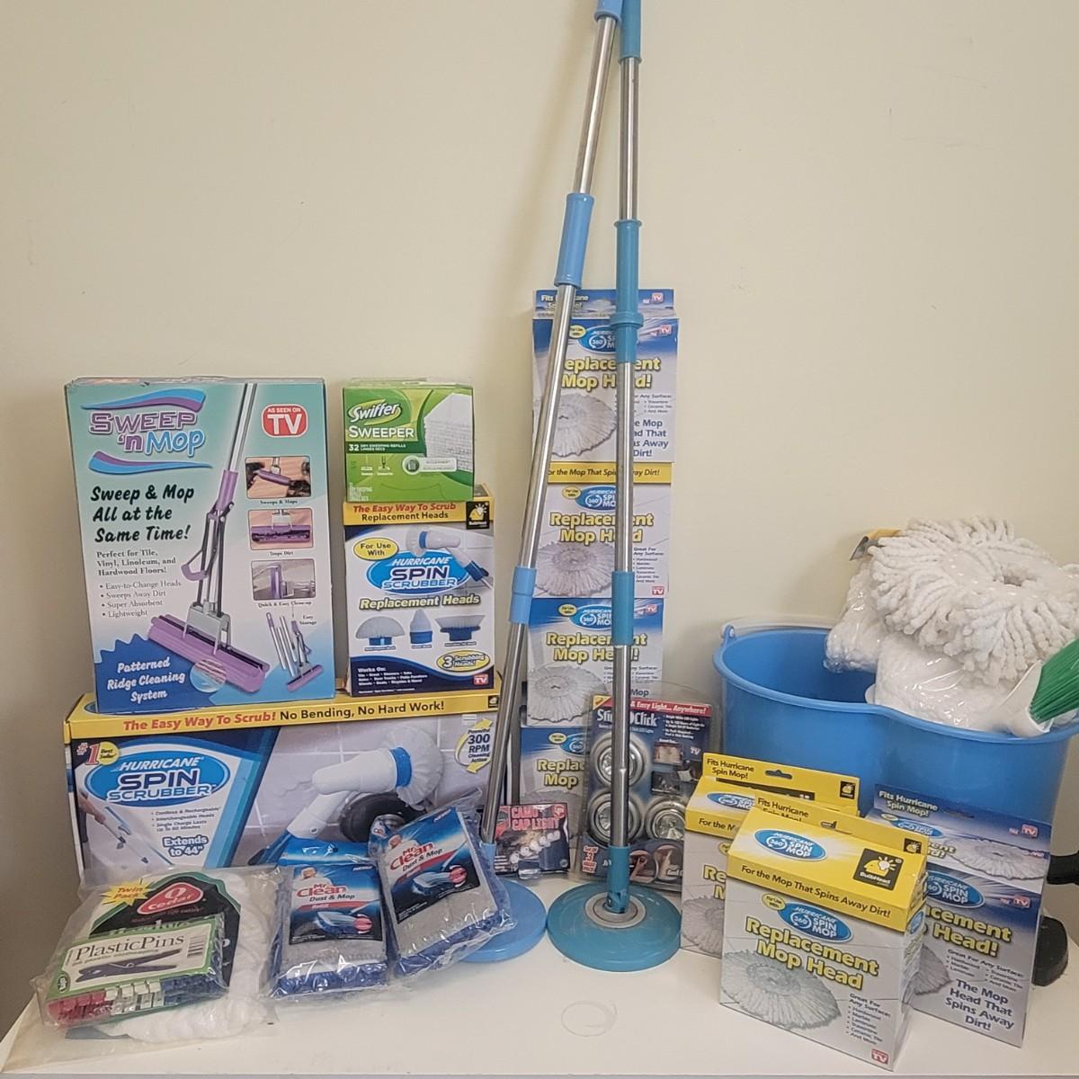 Hurricane spin mop handles, bucket and replacement mop heads. Also includes Hurricane spin scrubbers, Mr Clean dust and mop refills, stick on lights and more. Local pickup only