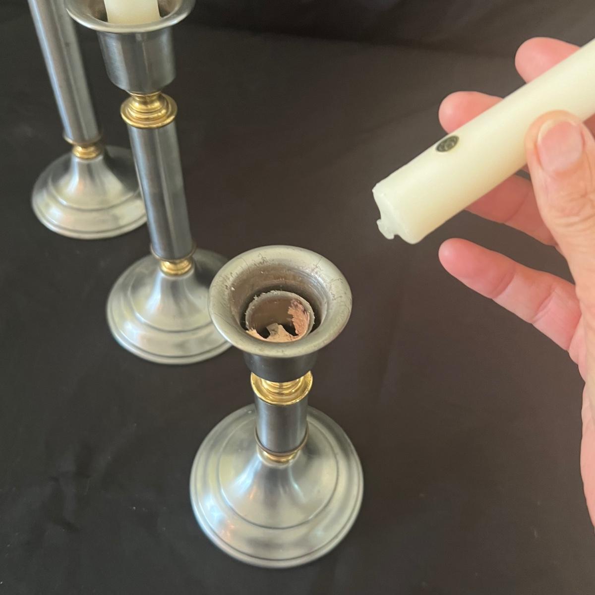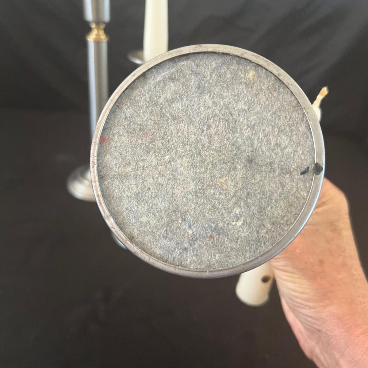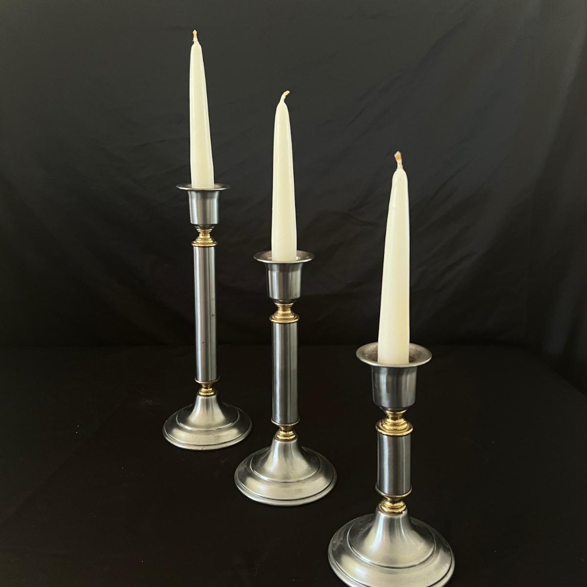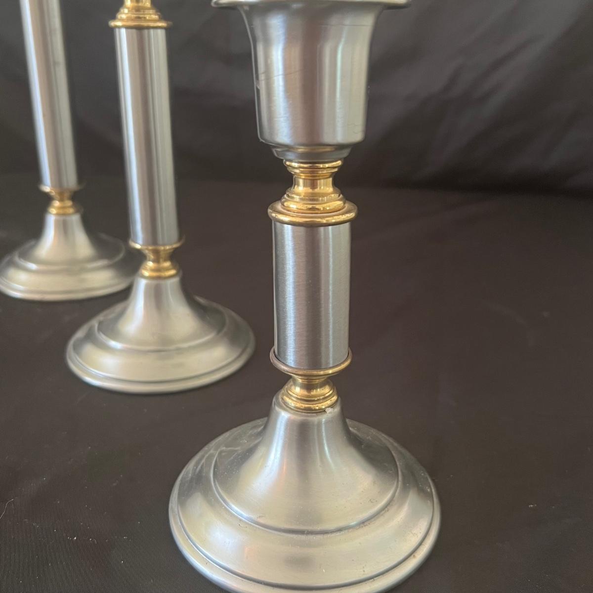 All are made of a brushed metal with brass like accents and felt on bases to protect furniture.