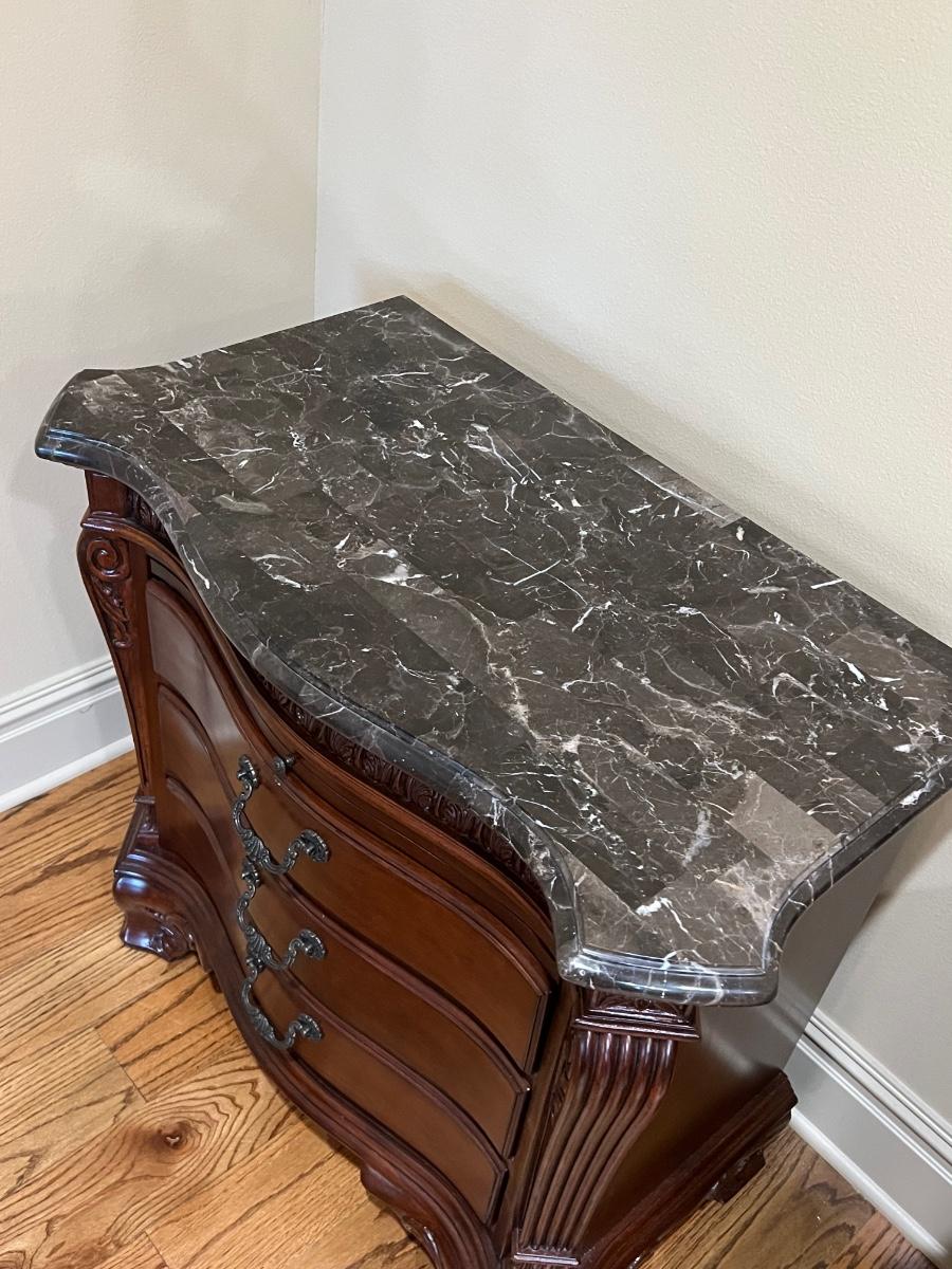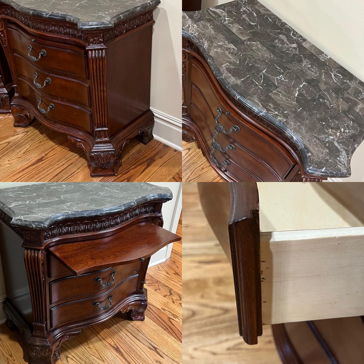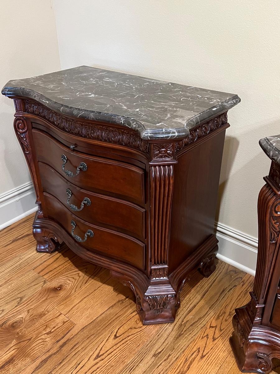HURWITZ-MINTZ ~ Pair (2) ~ Mahogany Marble Top Nightstands