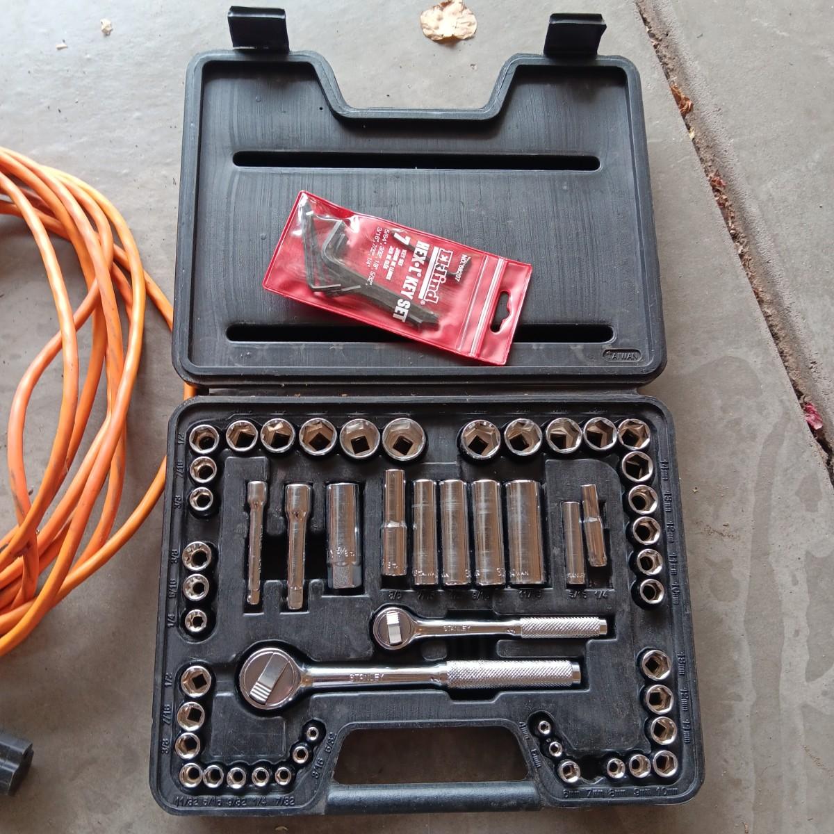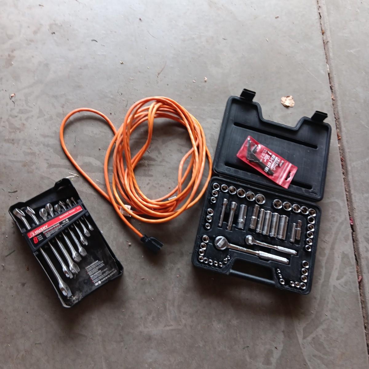 HUSKY COMBINATION WRENCHES, EXTENSION CORD AND A STANLEY SOCKET SET