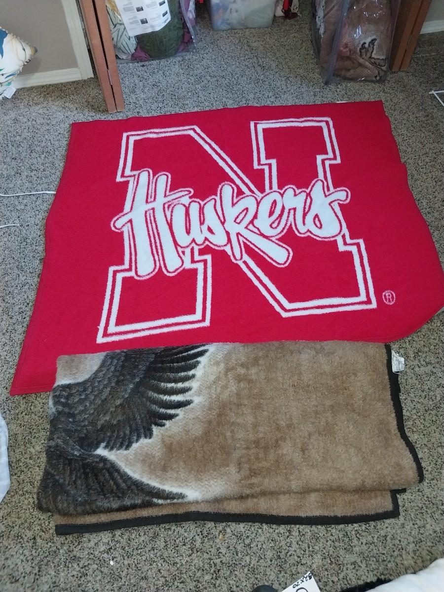 HUSKERS AND AN EAGLE THROW BLANKETS