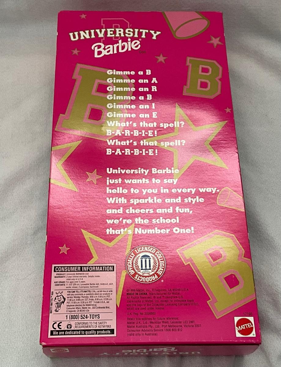 1996 Barbie Nebraska Huskers Official Licensed Collegiate Product, Mint/Excellent Unopened