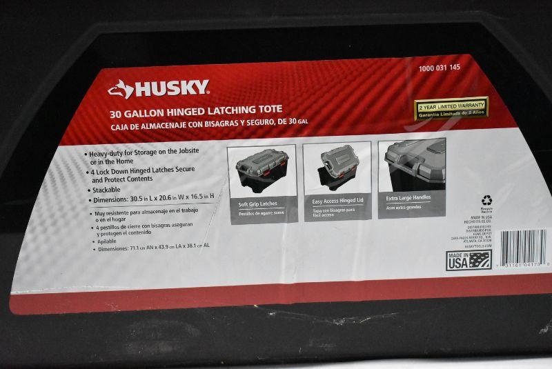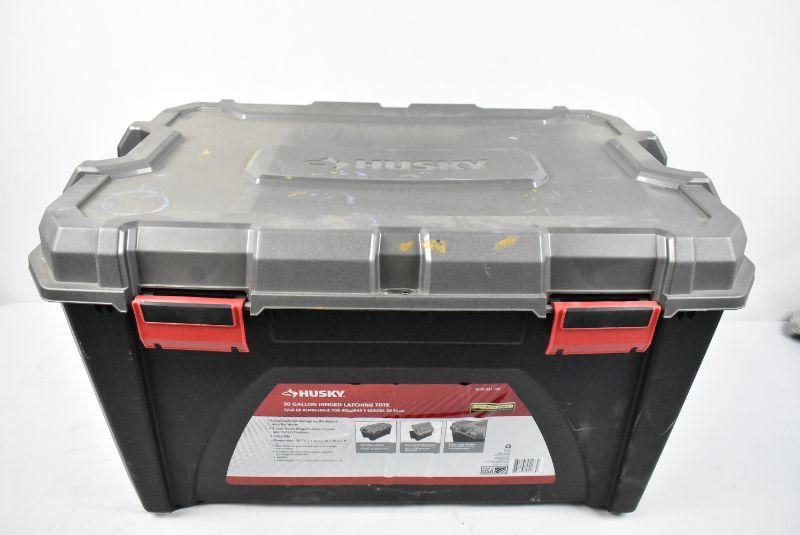 Husky 30 Gallon Hinged Latching Tote Black/Gray/Red