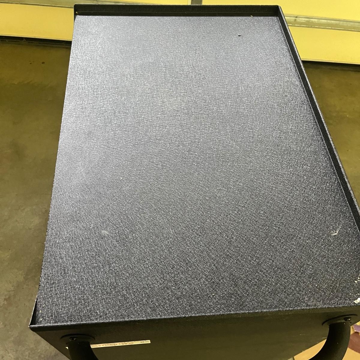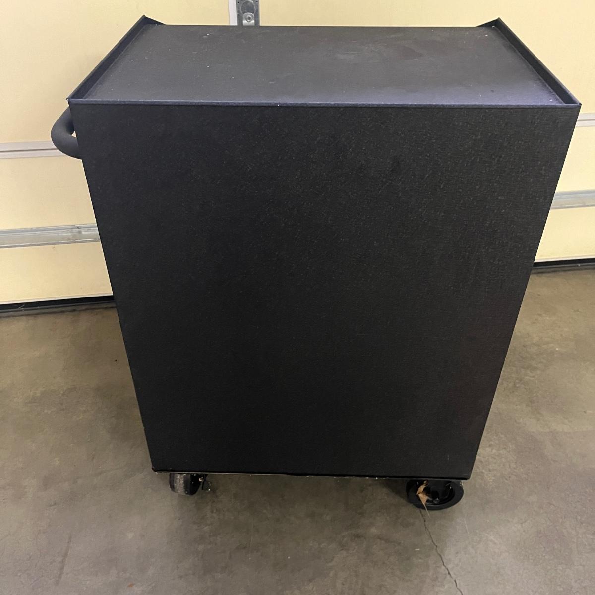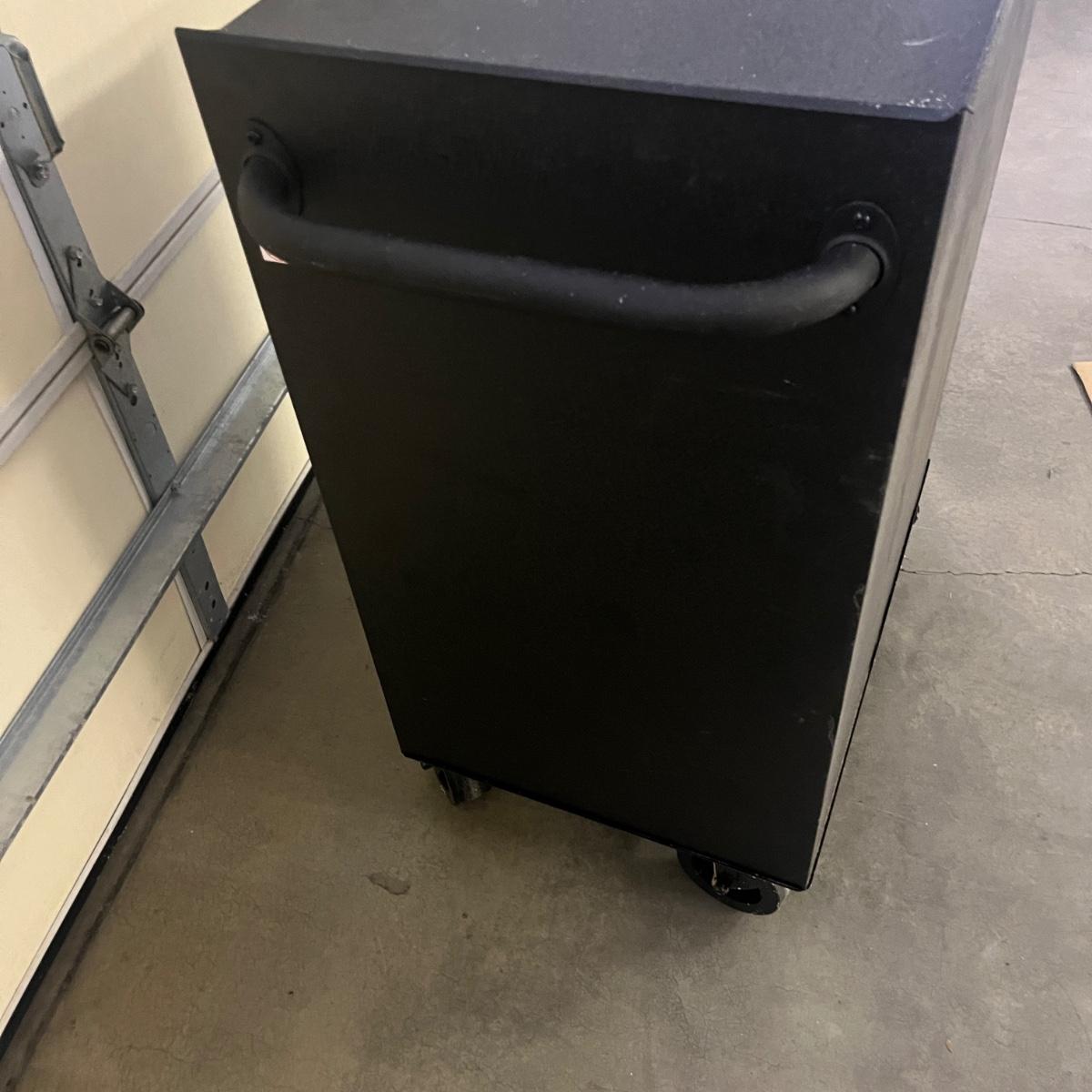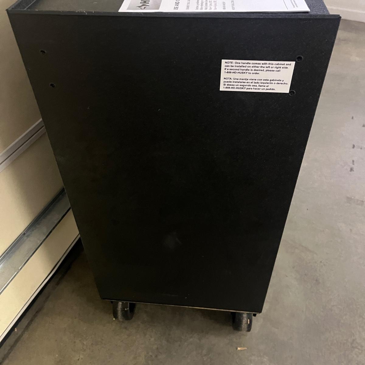 This metal Husky rolling toolbox has five locking drawers and includes two keys. Box measures 18” x 30” x 37”H.