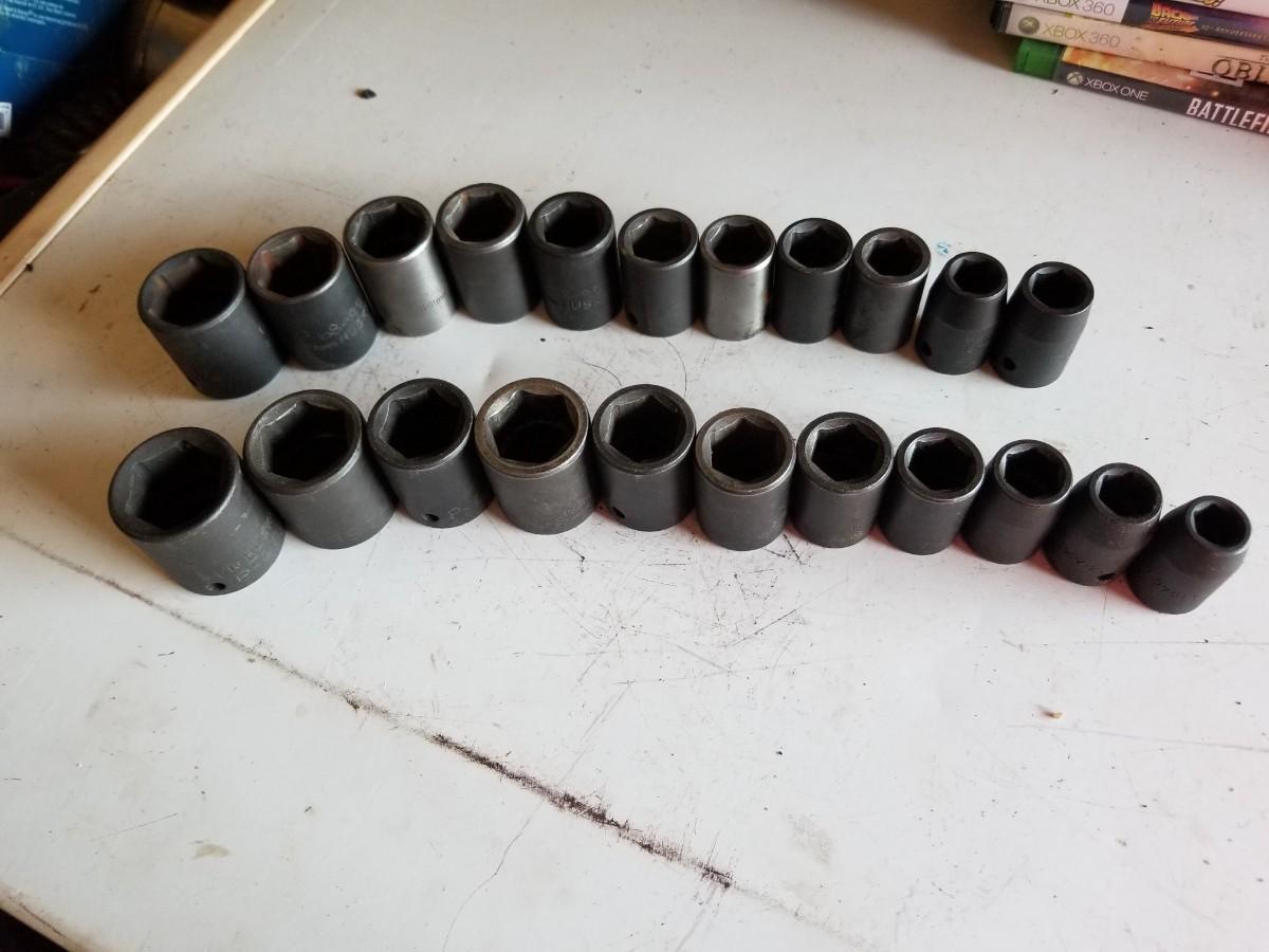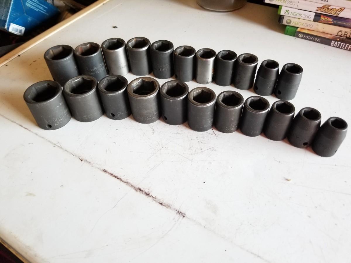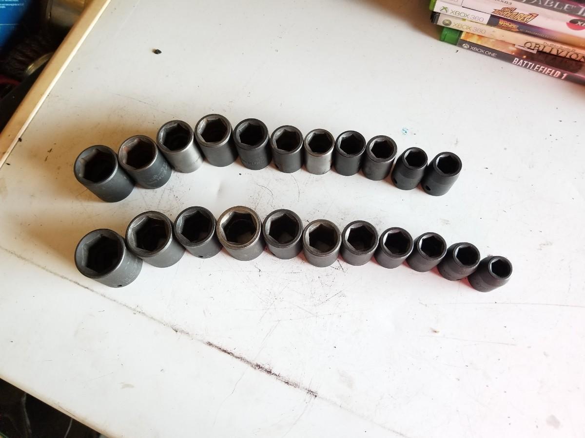 Husky metric sockets 13,14,15,16,17,18,19,21,22,24,27 standard 7/16,1/2,9/16,5/8,11/16,3/4,7/8,13/16,11/16,15/16,1
