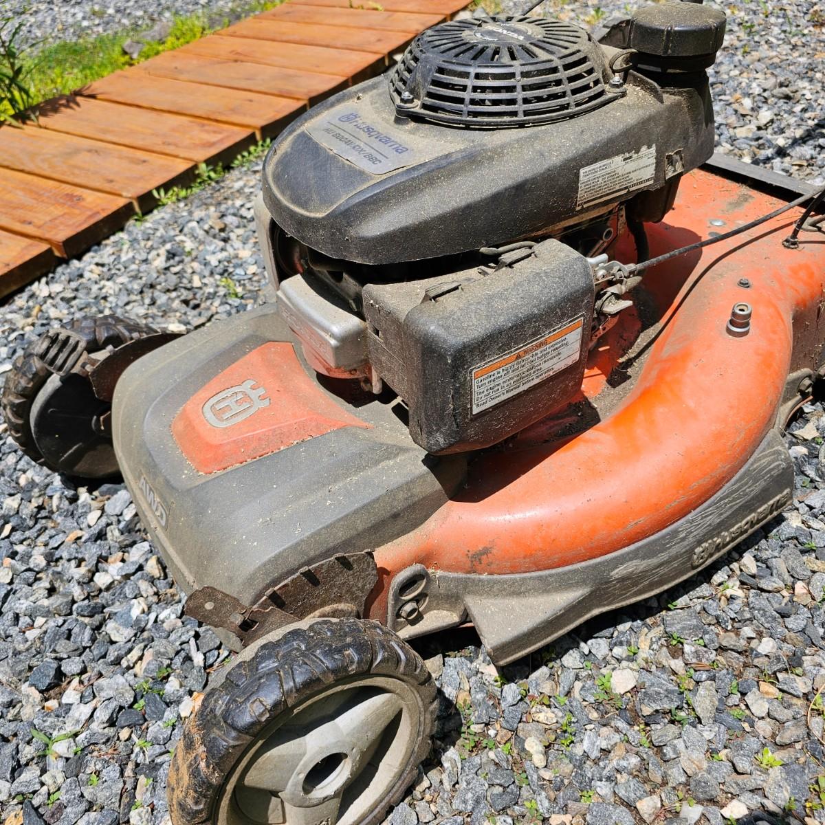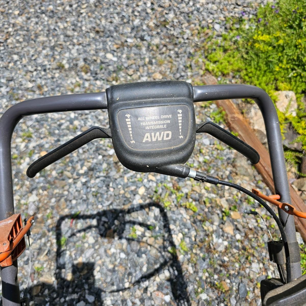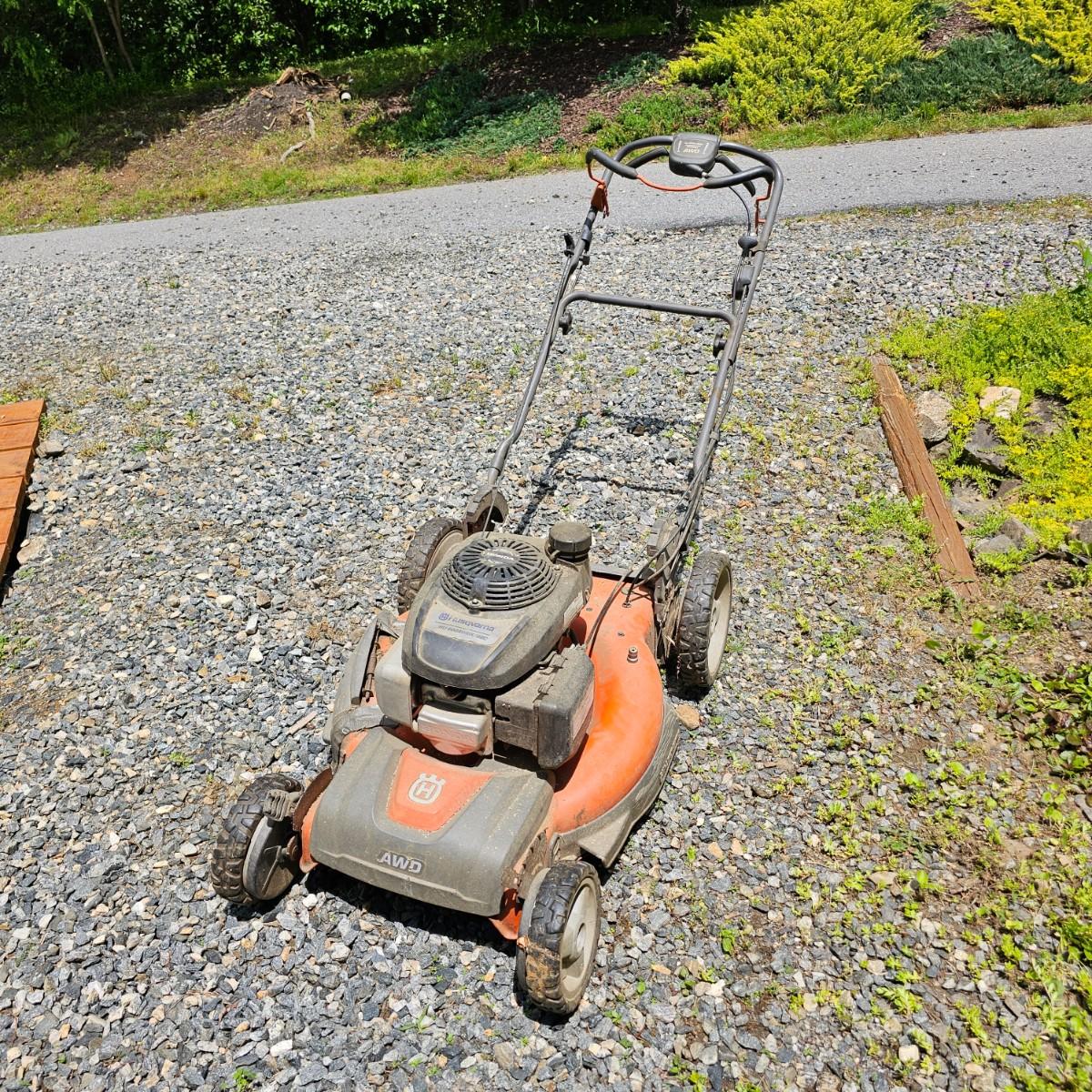 All wheel drive on this Husqvarna mower. 22" cut, 190cc Honda engine, hose clean out port on deck. Mower pulls smoothly, but unable to test fully. 25" x 70" x 33"H, all controls on rear handles. See photos for details. Local pickup only.