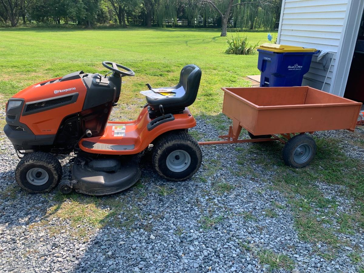 Husqvarna YTH 1846 Lawn Tractor & Dumping Utility Cart 18.5 HP 46" Deck Intek 540cc RUNS GREAT!