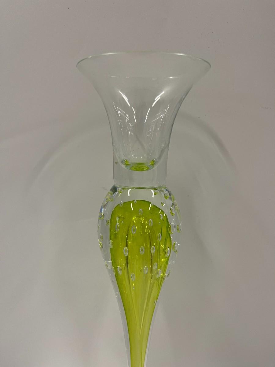 Hut Charlotta Czech art glass candlestick, handmade. Excellent condition. Approximately 11" high. # 1306