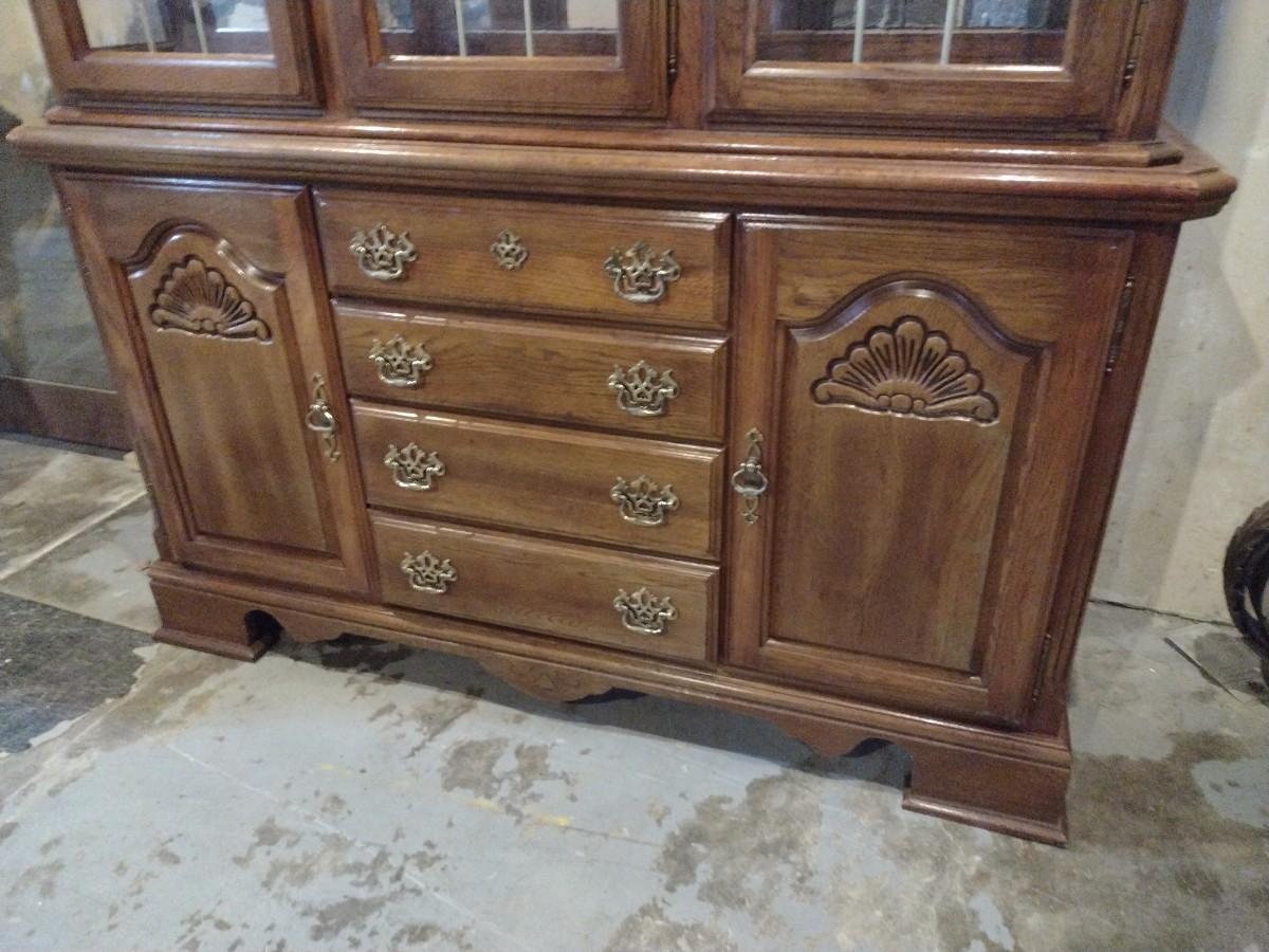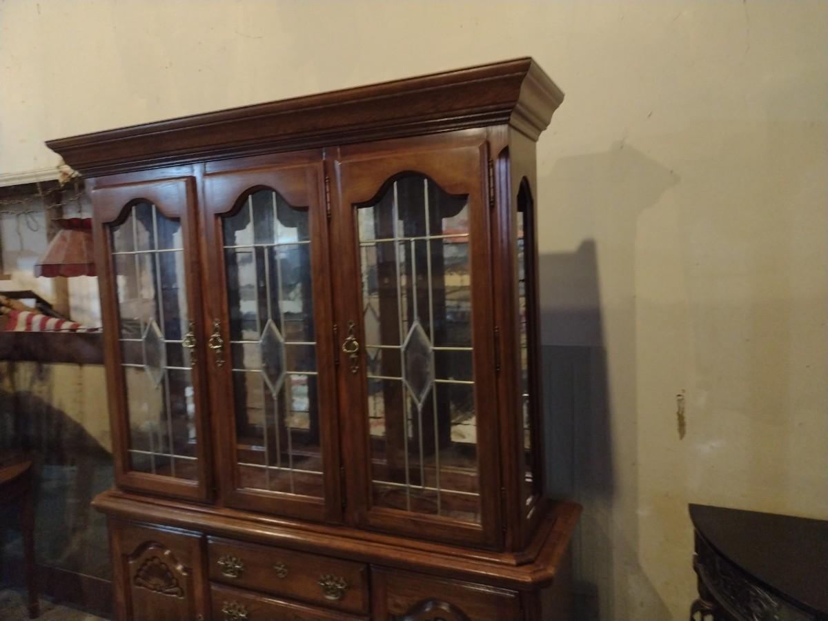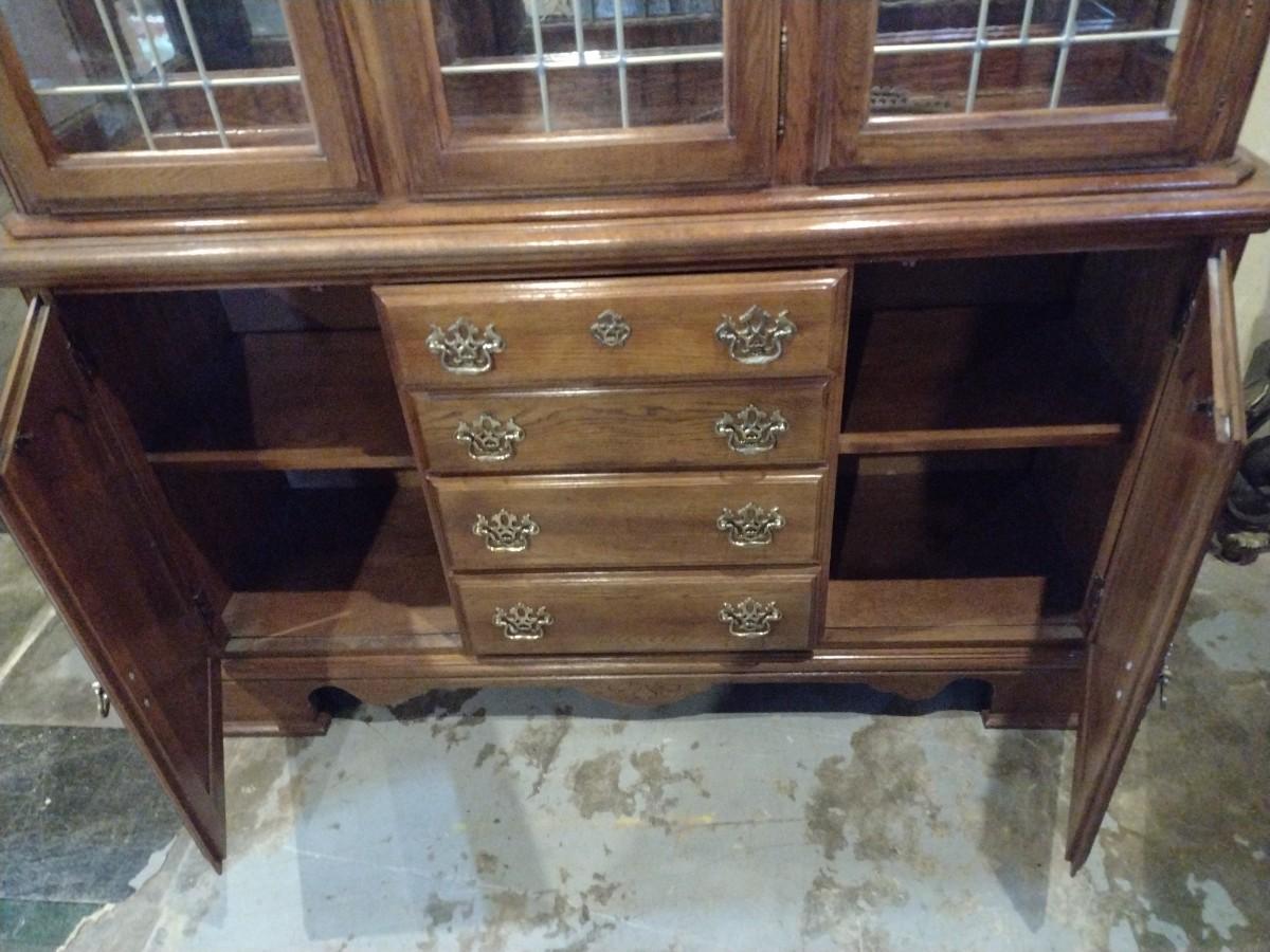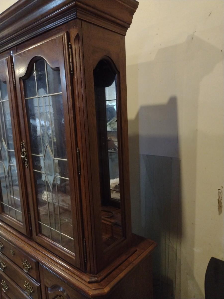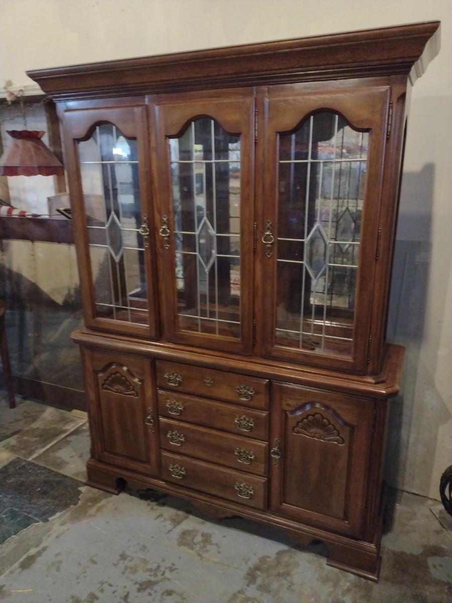 Vintage Two Piece China Hutch with Fretted Glass Doors