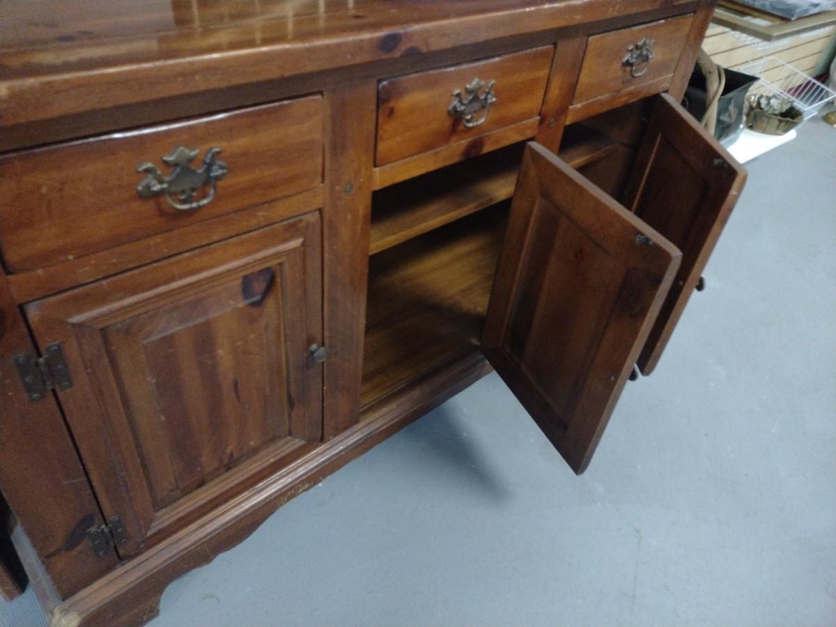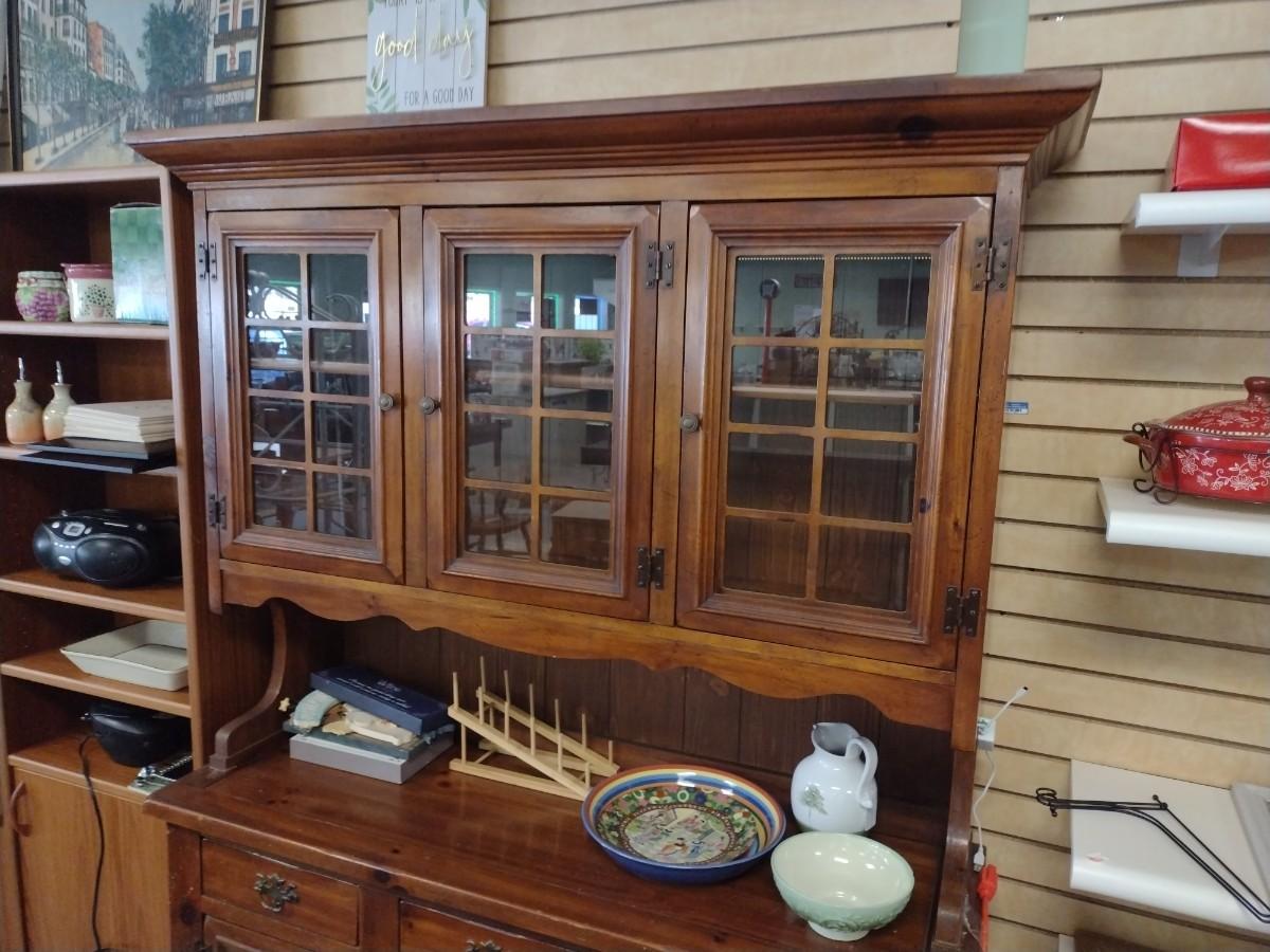 Walnut Finish Two-Piece Buffer with China Top Hutch